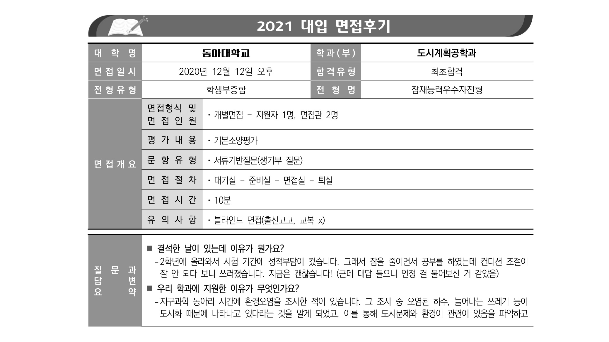 2021학년도 동아대학교 면접 후기20 - 도시계획공학과