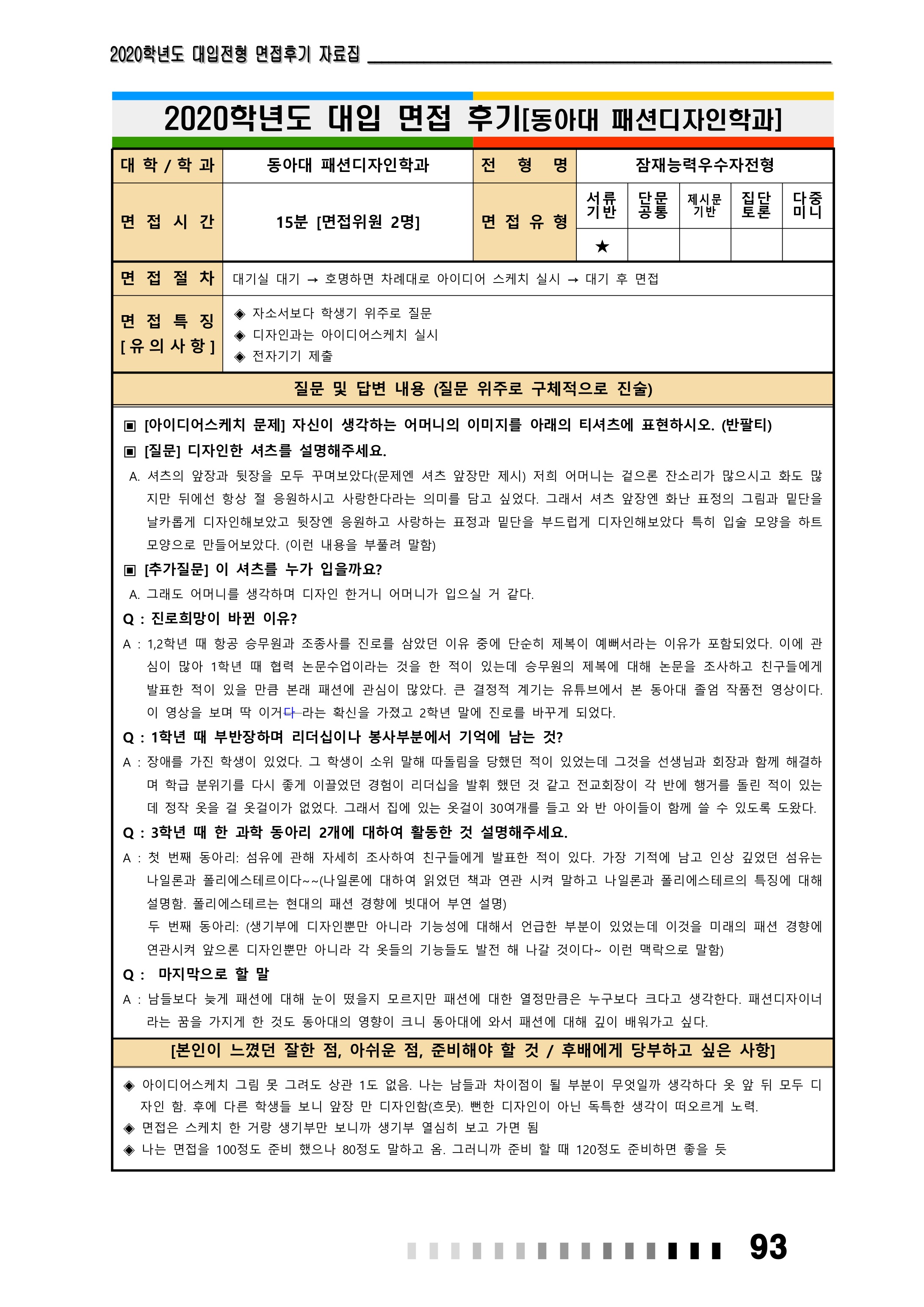 2021학년도 동아대학교 면접 후기55 - 패션디자인학과 2021학년도 동아대학교 면접 후기56 - 한국어문학과
