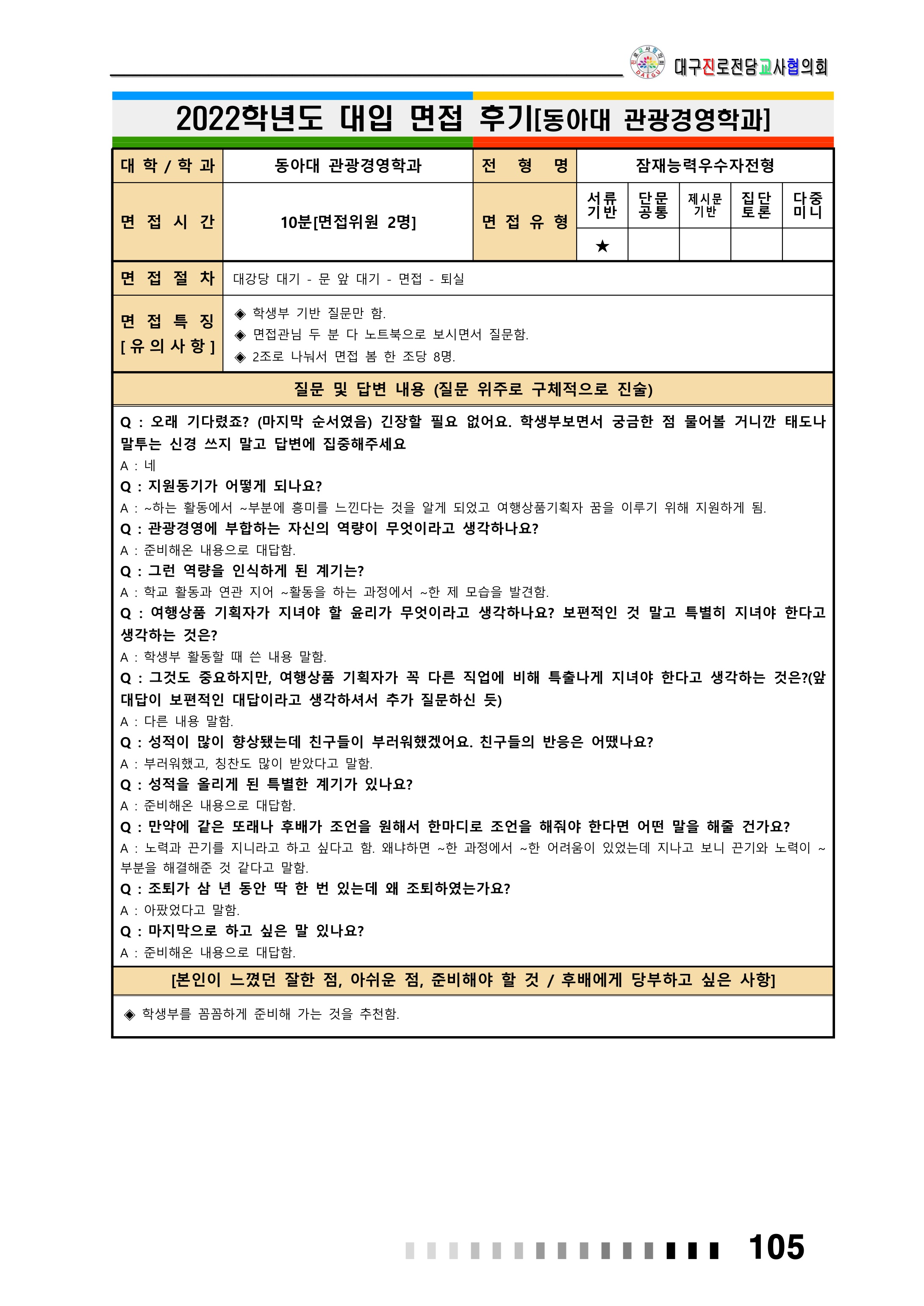 동아대학교 전자공학과2022학년도 동아대학교 면접 후기1 - 관광경영학과