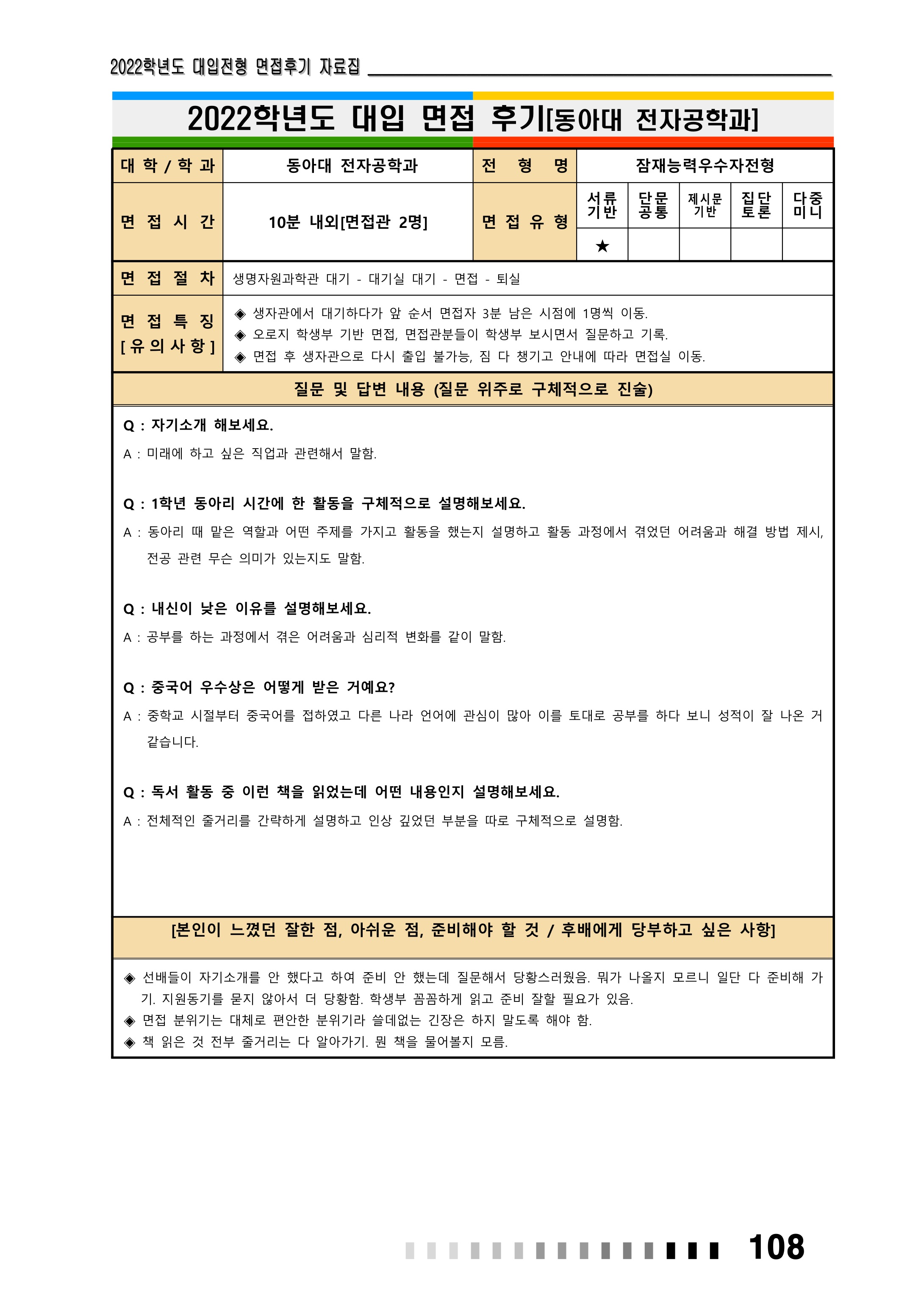 2022학년도 동아대학교 면접 후기4 - 전자공학과 2023학년도와 2021학년도 동아대학교 면접 질문도 참고하세영.😀