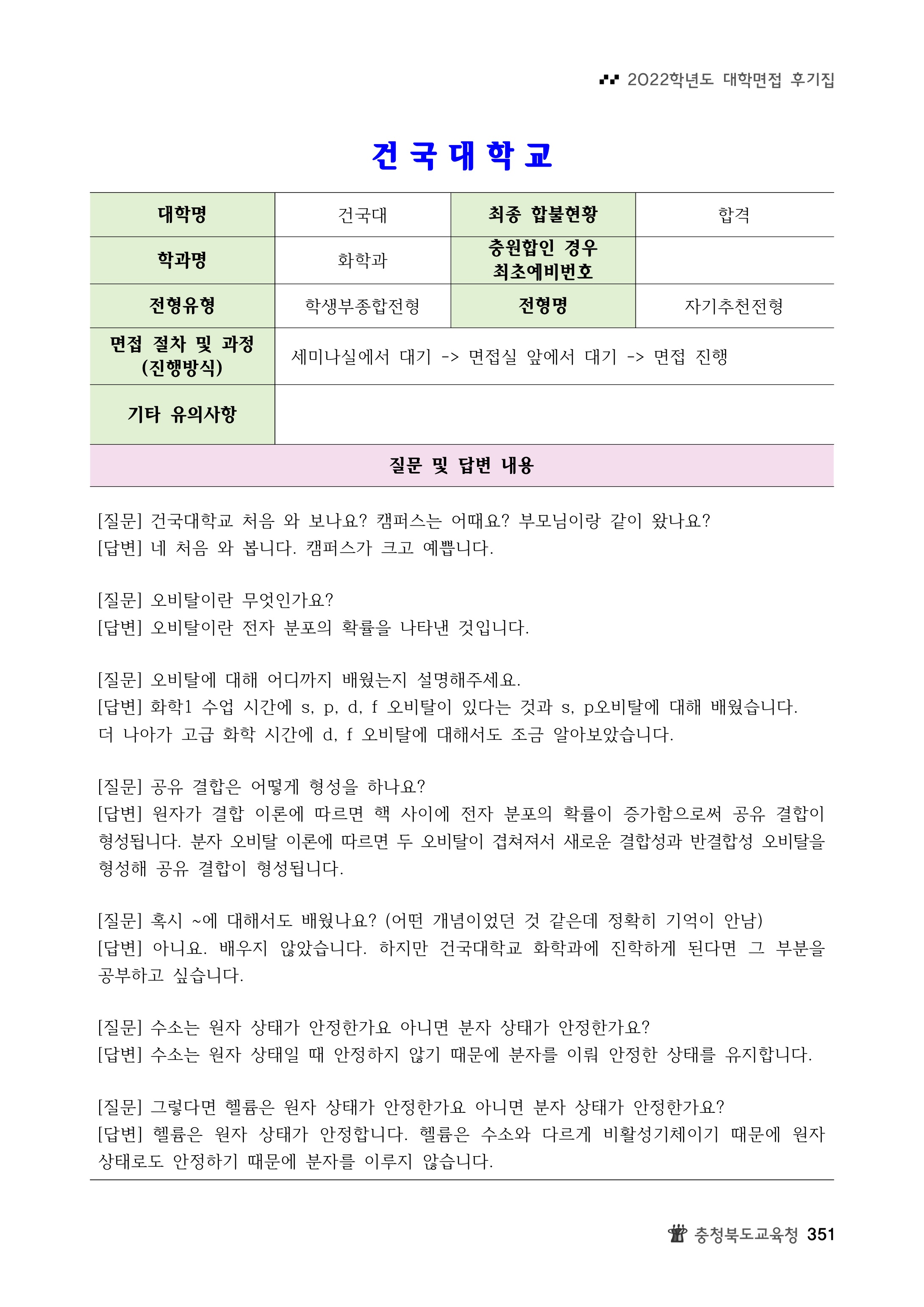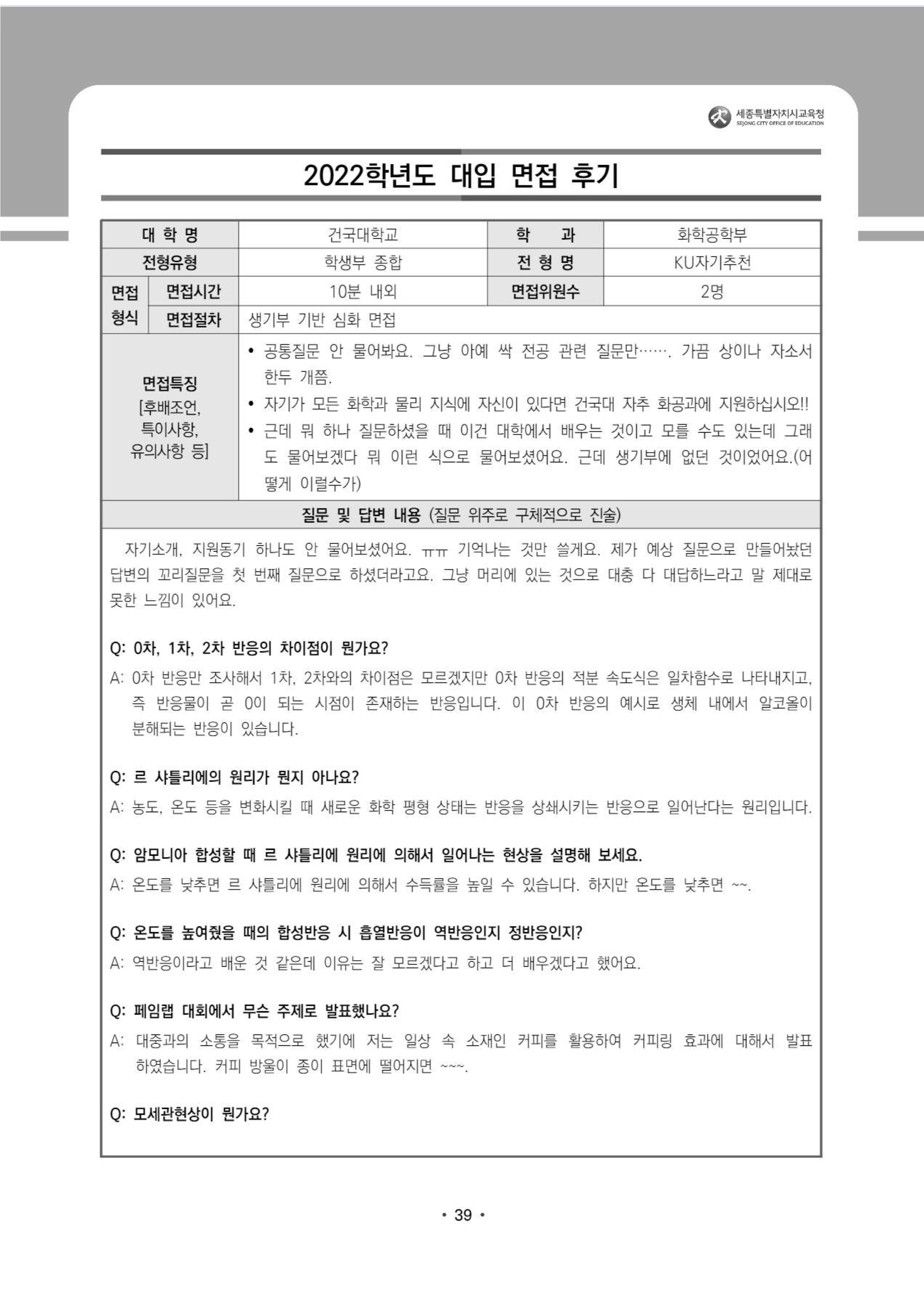 2022학년도 건국대학교 면접 후기59 - 화학과