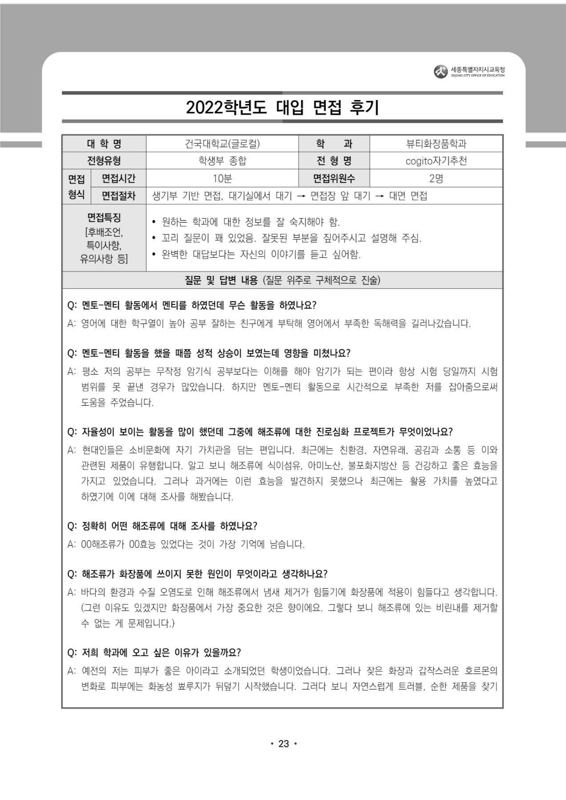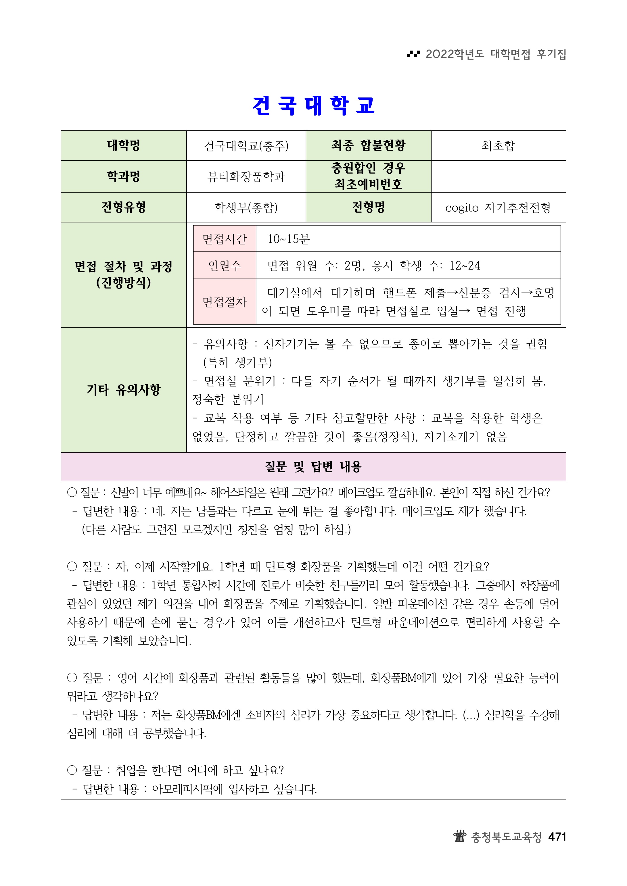 2022학년도 건국대학교 면접 후기19 - 뷰티화장품학과