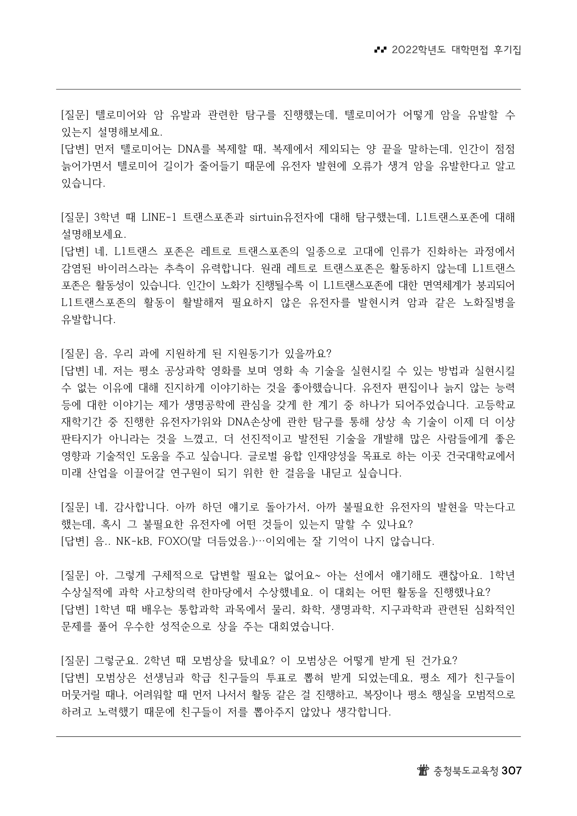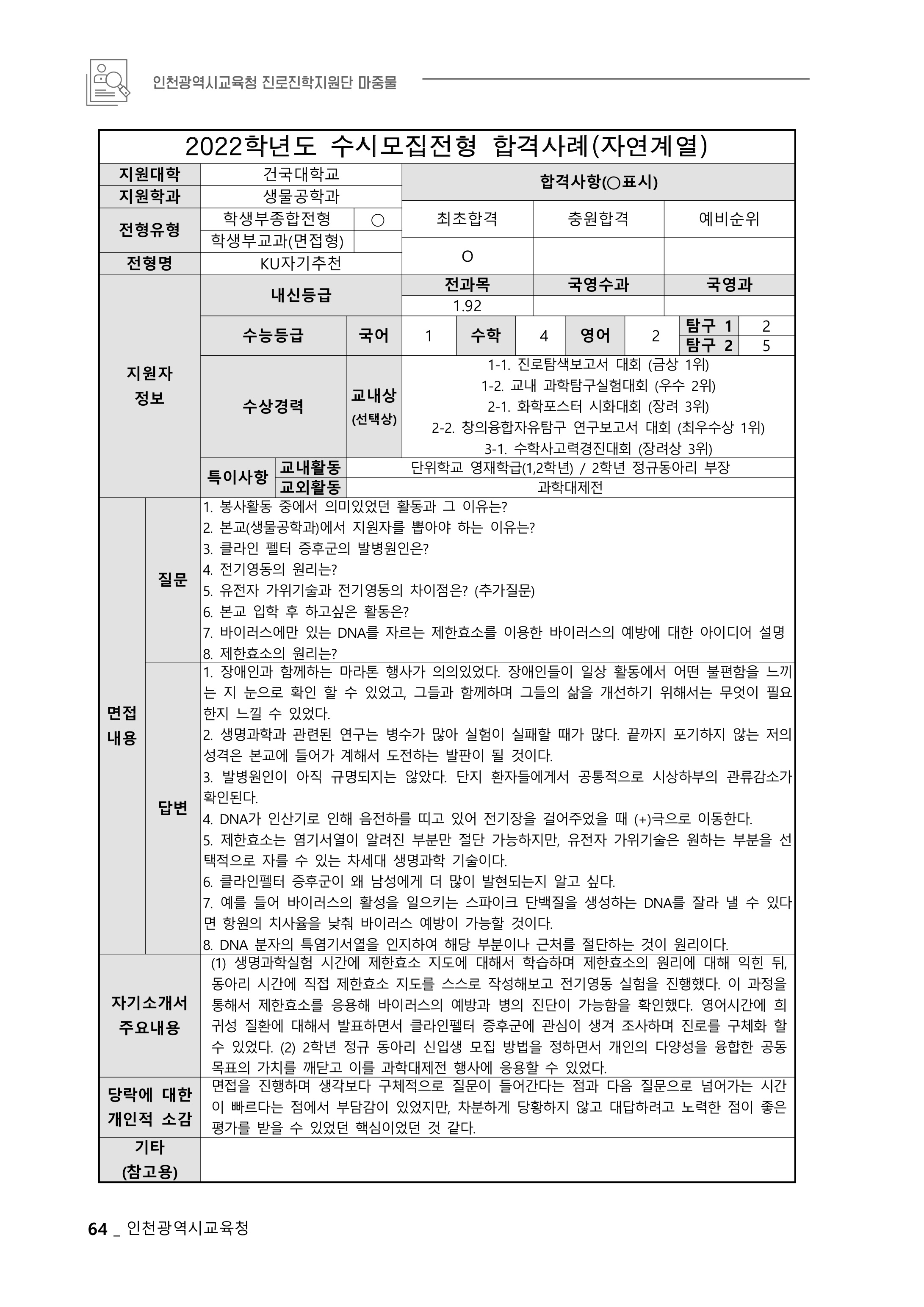 2022학년도 건국대학교 면접 후기34 - 융합생명공학과