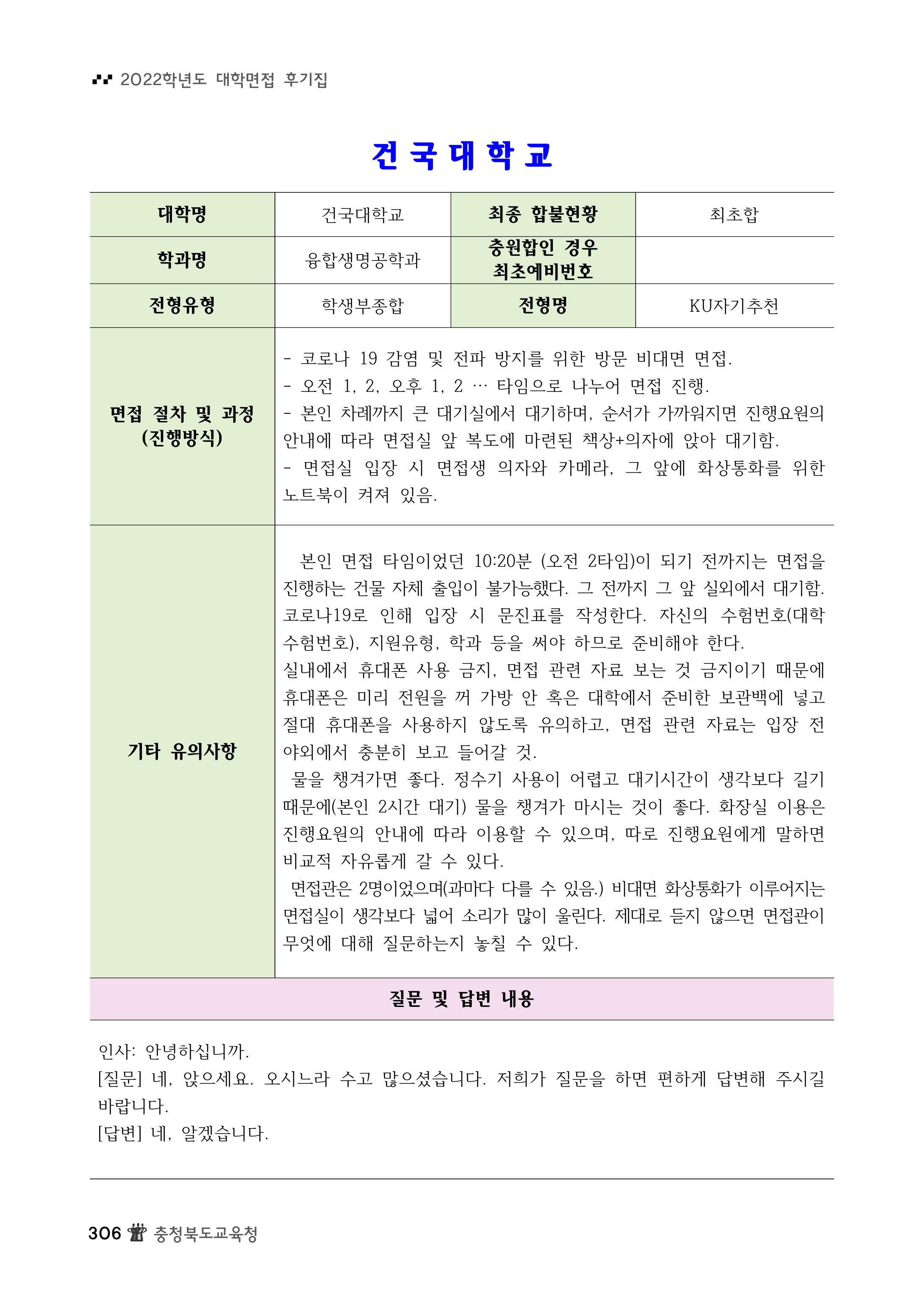 2022학년도 건국대학교 면접 후기33 - 영어교육과 2022학년도 건국대학교 면접 후기34 - 융합생명공학과