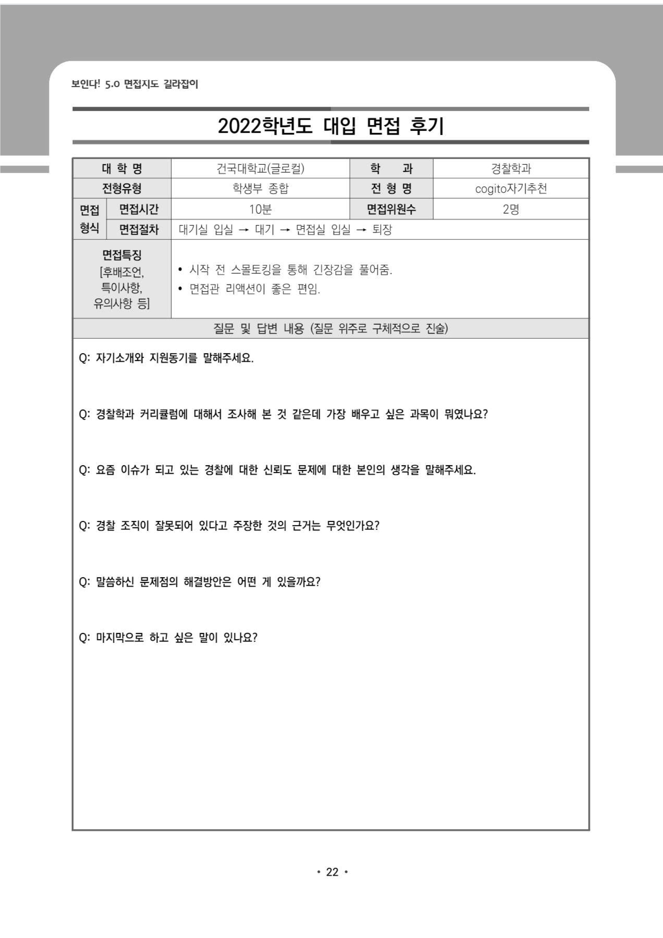 2022학년도 건국대학교 면접 후기12 - 경찰학과 2022학년도 건국대학교 면접 후기13 - 동물자원과학과