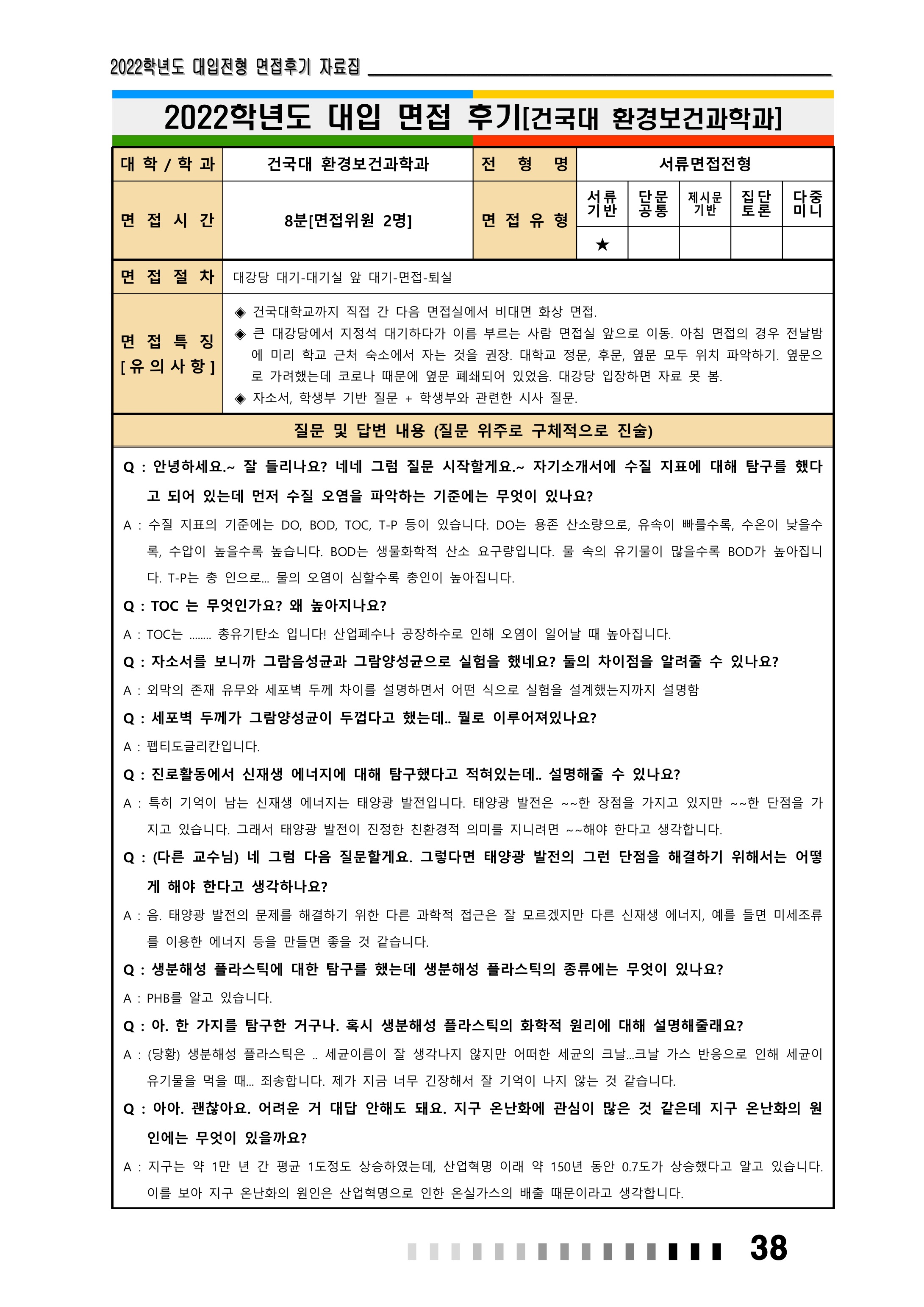 2022학년도 건국대학교 면접 후기60 - 환경보건과학과