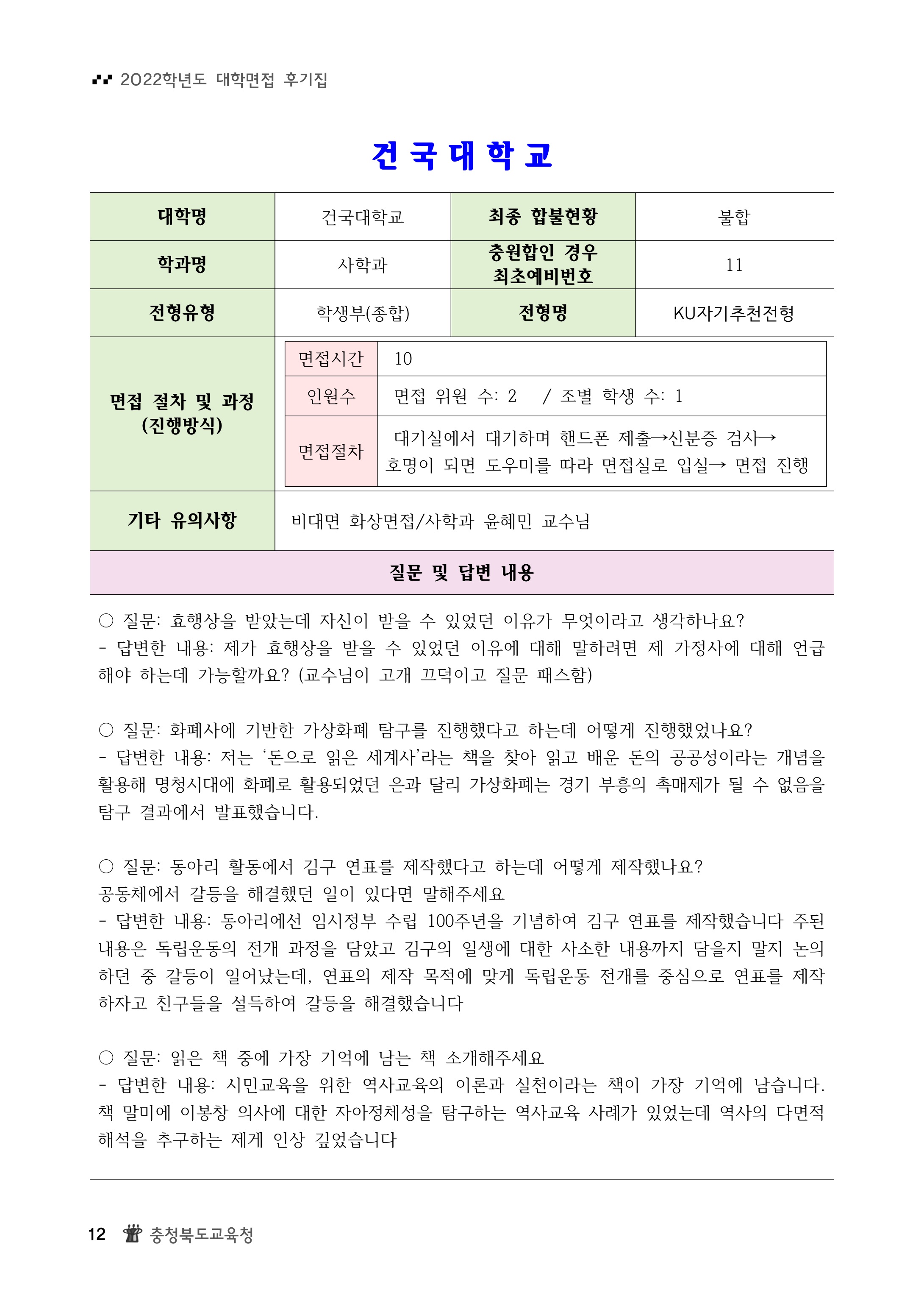 2022학년도 건국대학교 면접 후기22 - 사학과