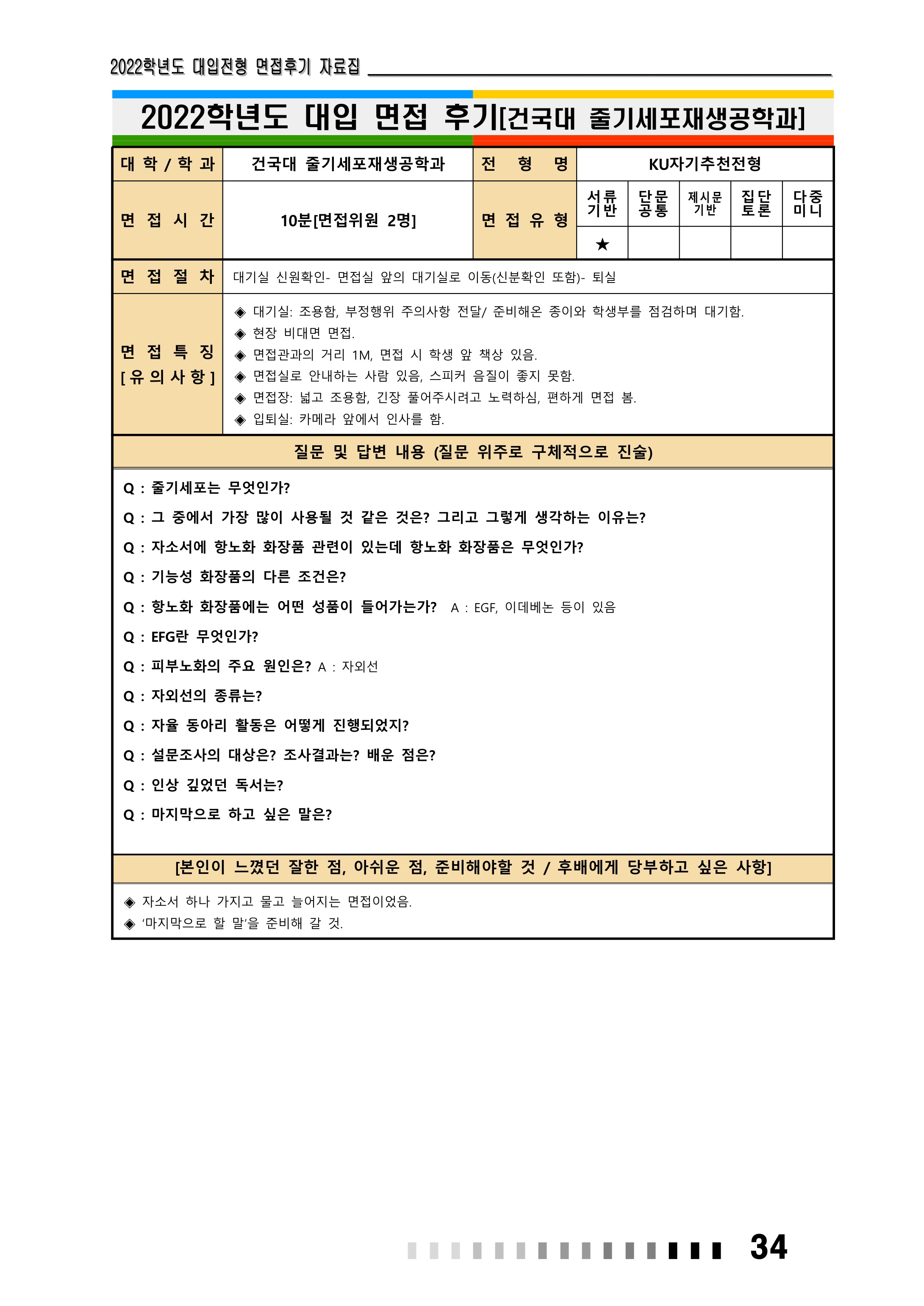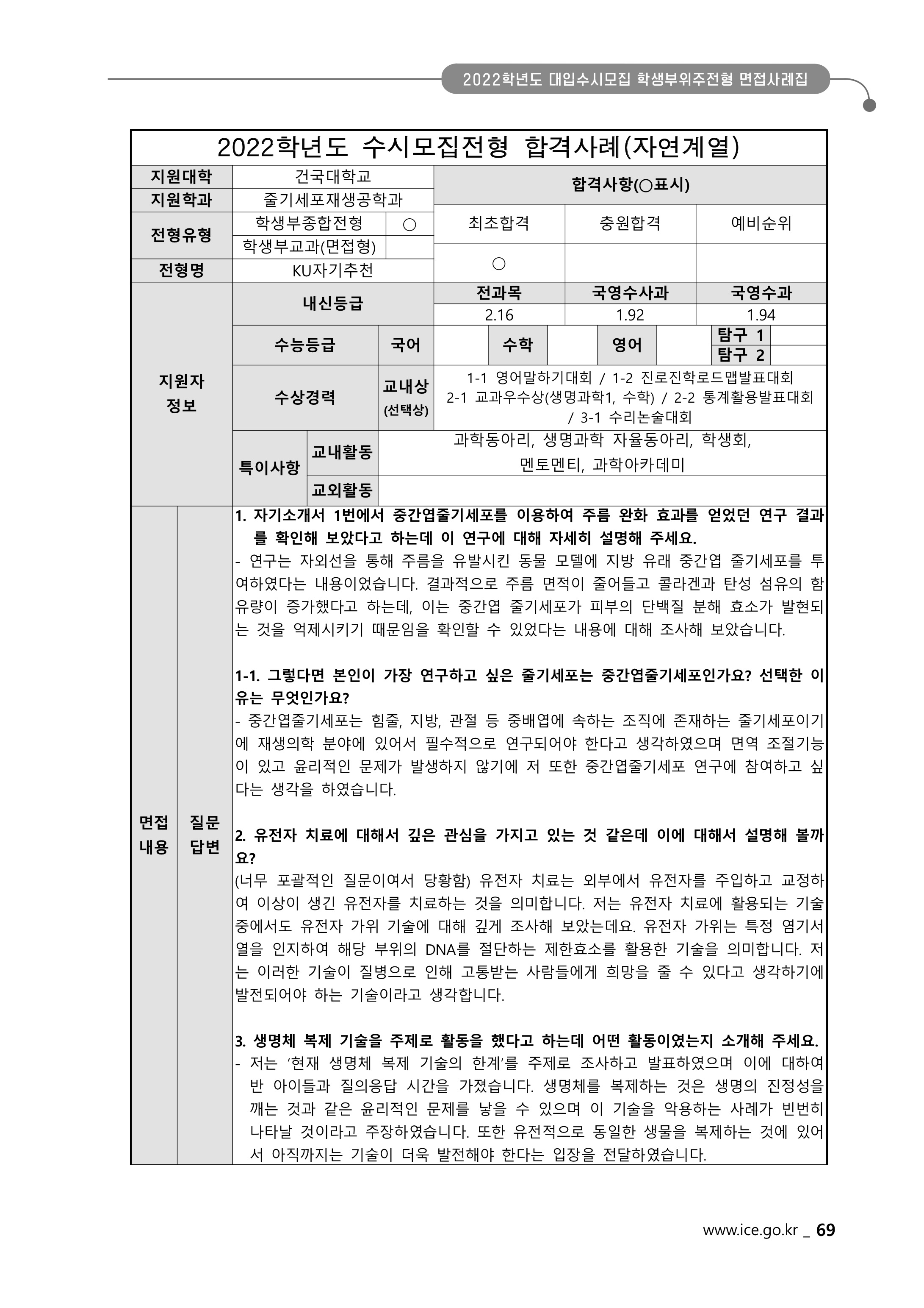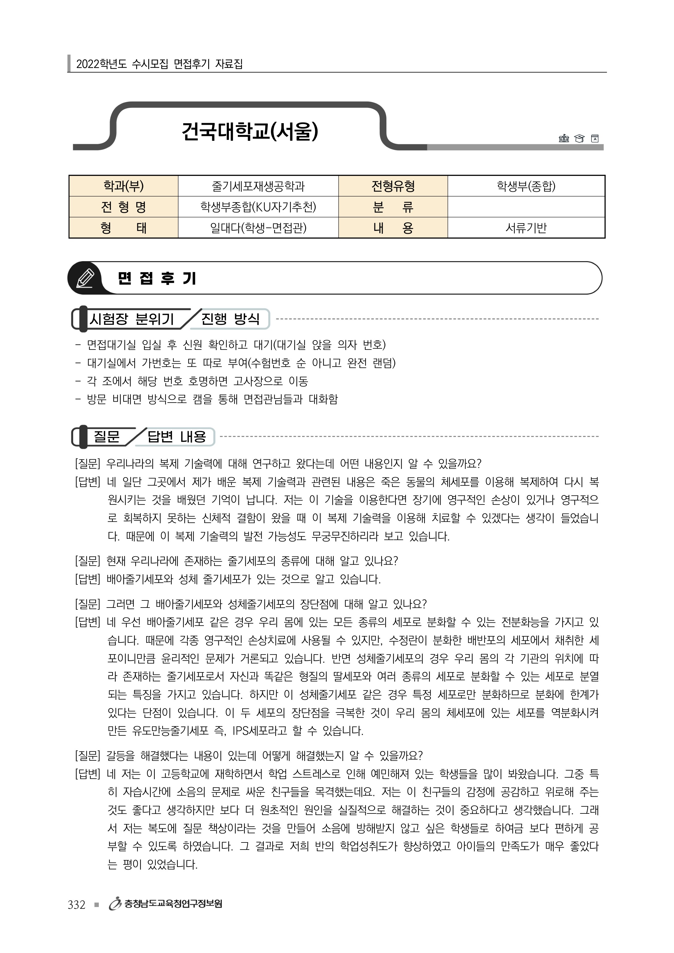 2022학년도 건국대학교 면접 후기43 - 줄기세포재생공학과