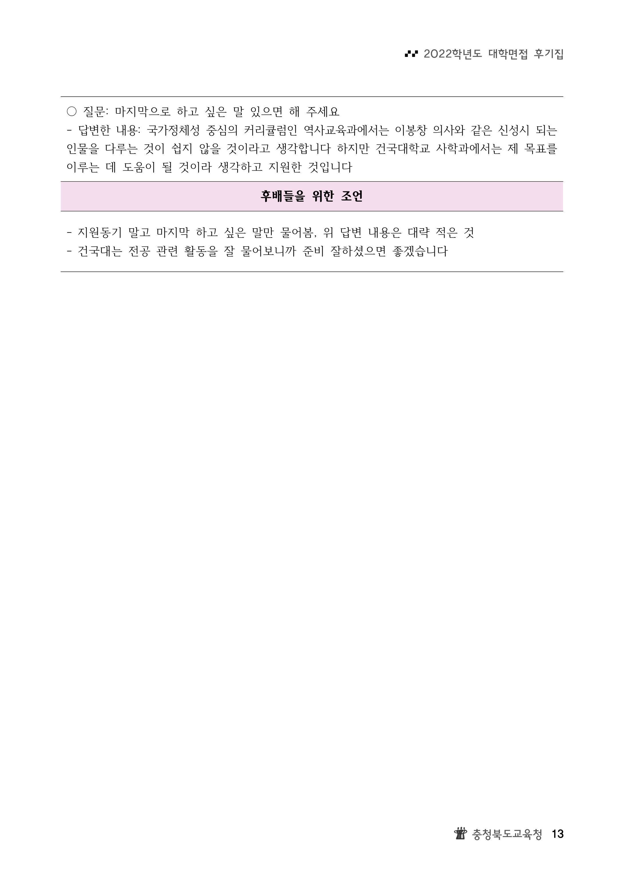 2022학년도 건국대학교 면접 후기21 - 뷰티화장품학과 2022학년도 건국대학교 면접 후기22 - 사학과