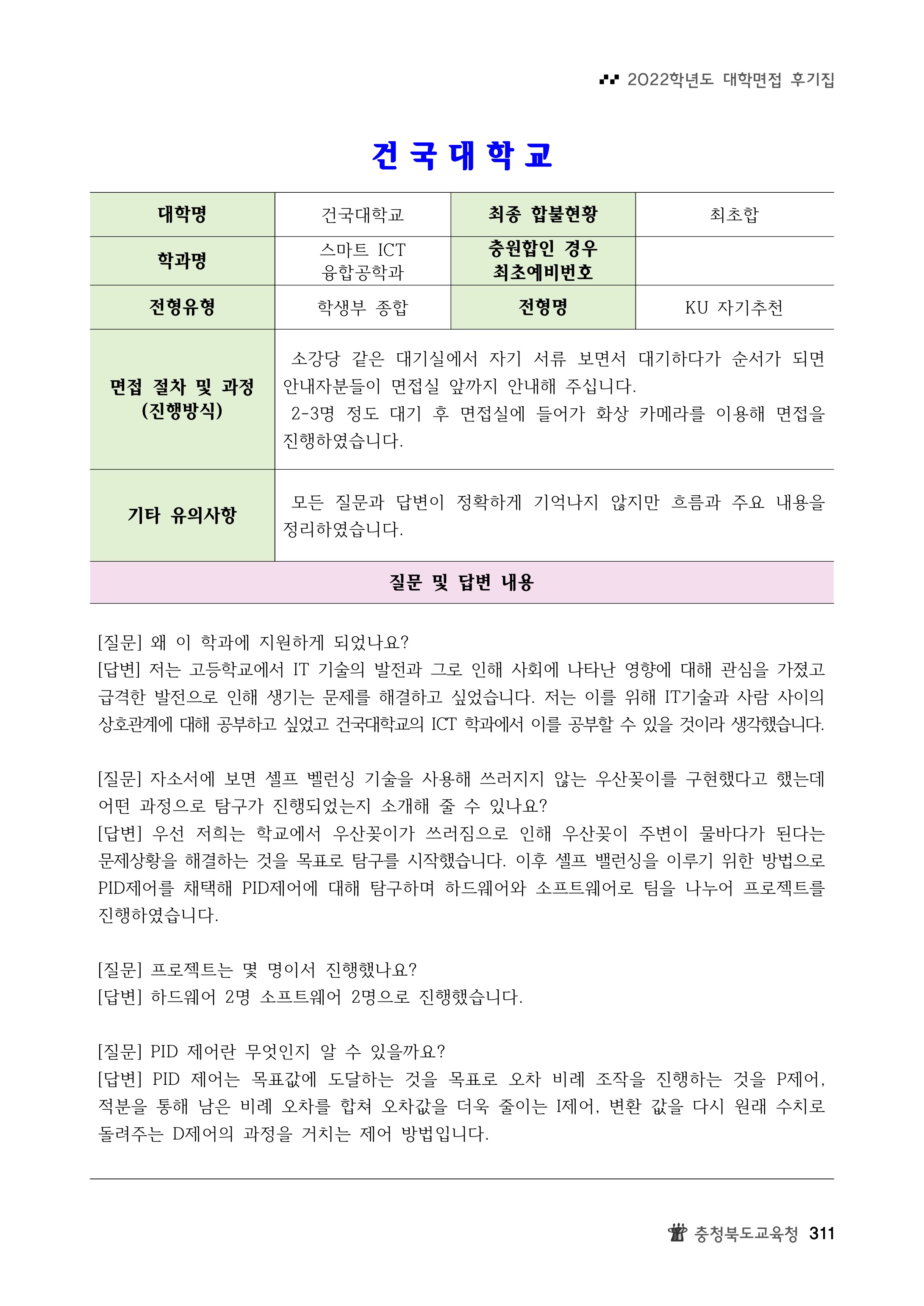 2022학년도 건국대학교 면접 후기29 - 스마트ICT융합공학과