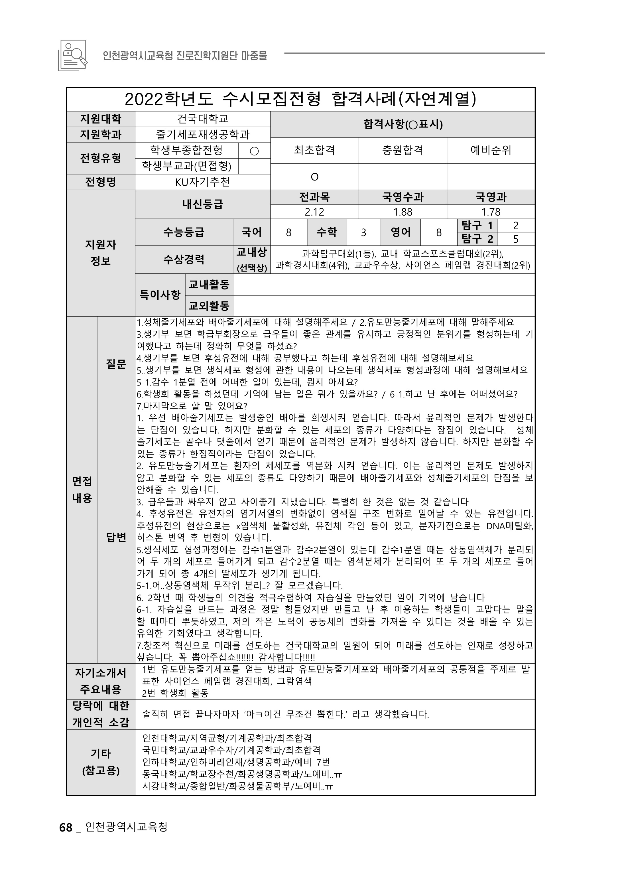 2022학년도 건국대학교 면접 후기39 - 전기전자공학부 2022학년도 건국대학교 면접 후기40 - 줄기세포재생공학과
