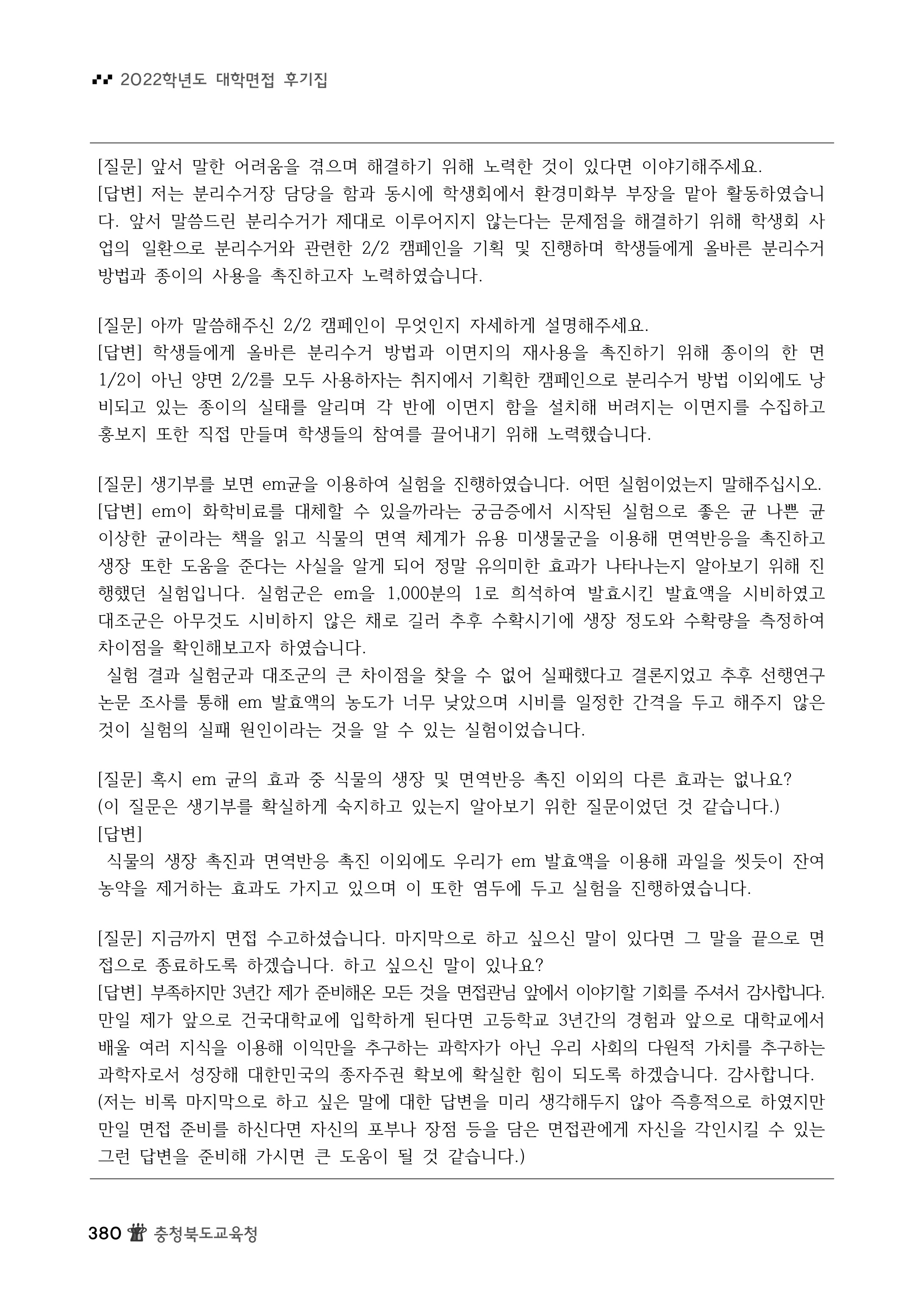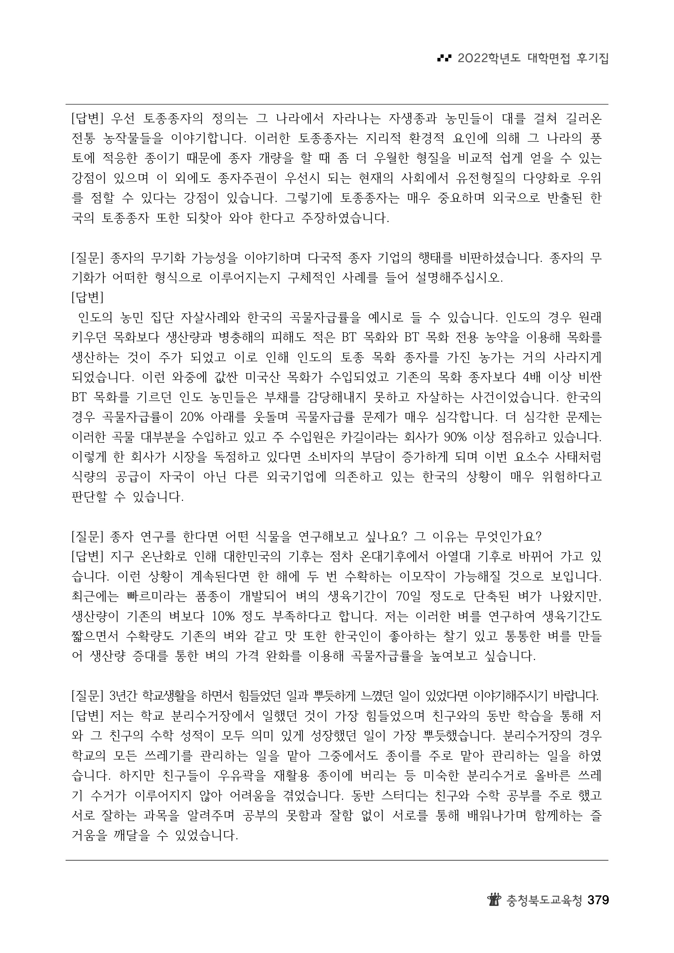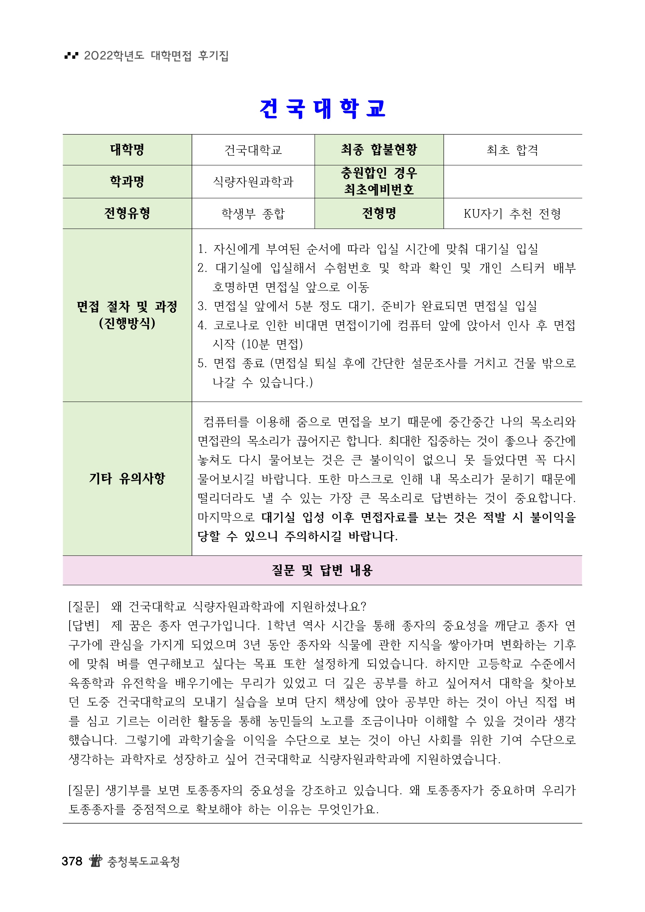 2022학년도 건국대학교 면접 후기31 - 식량자원과학과
