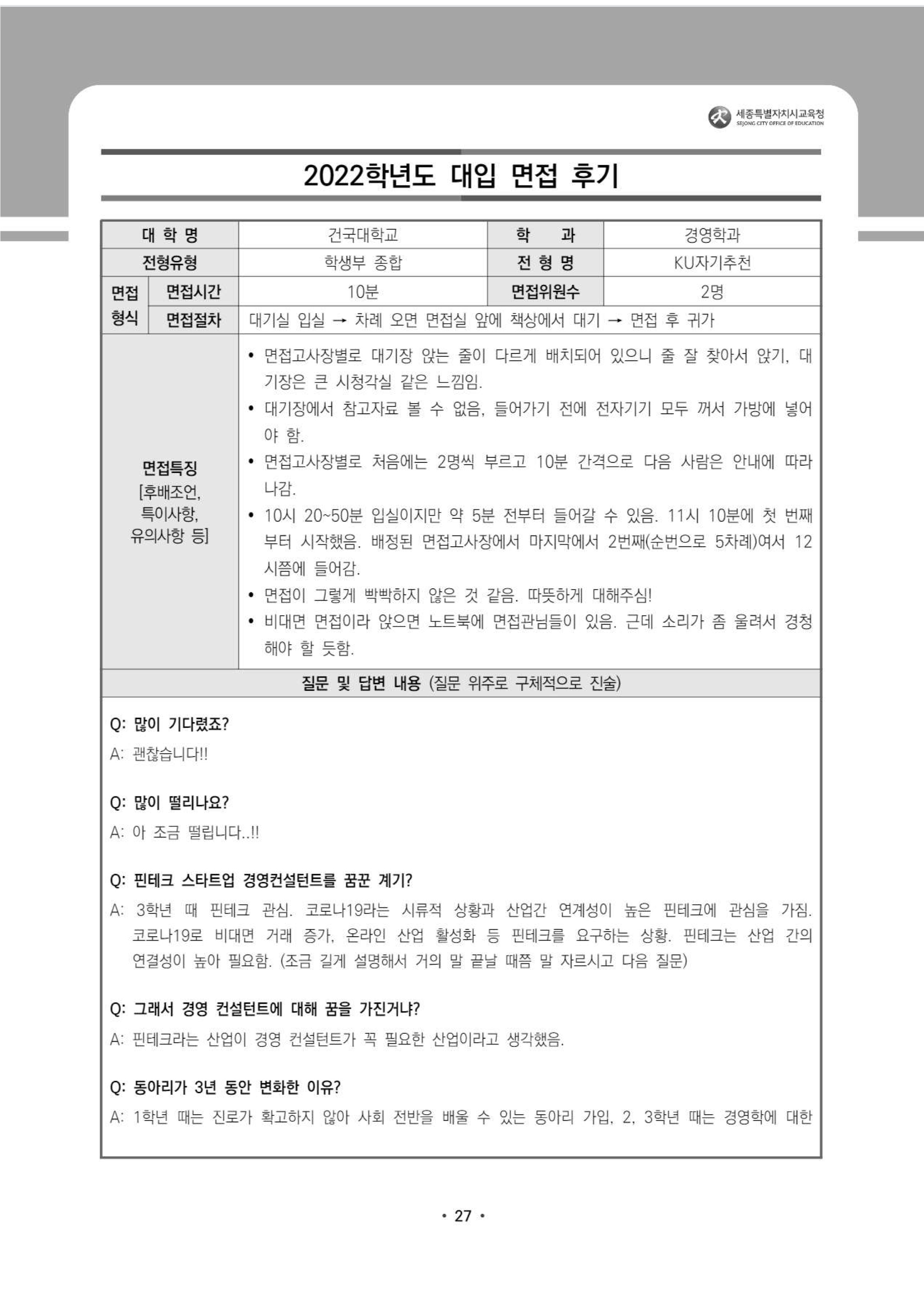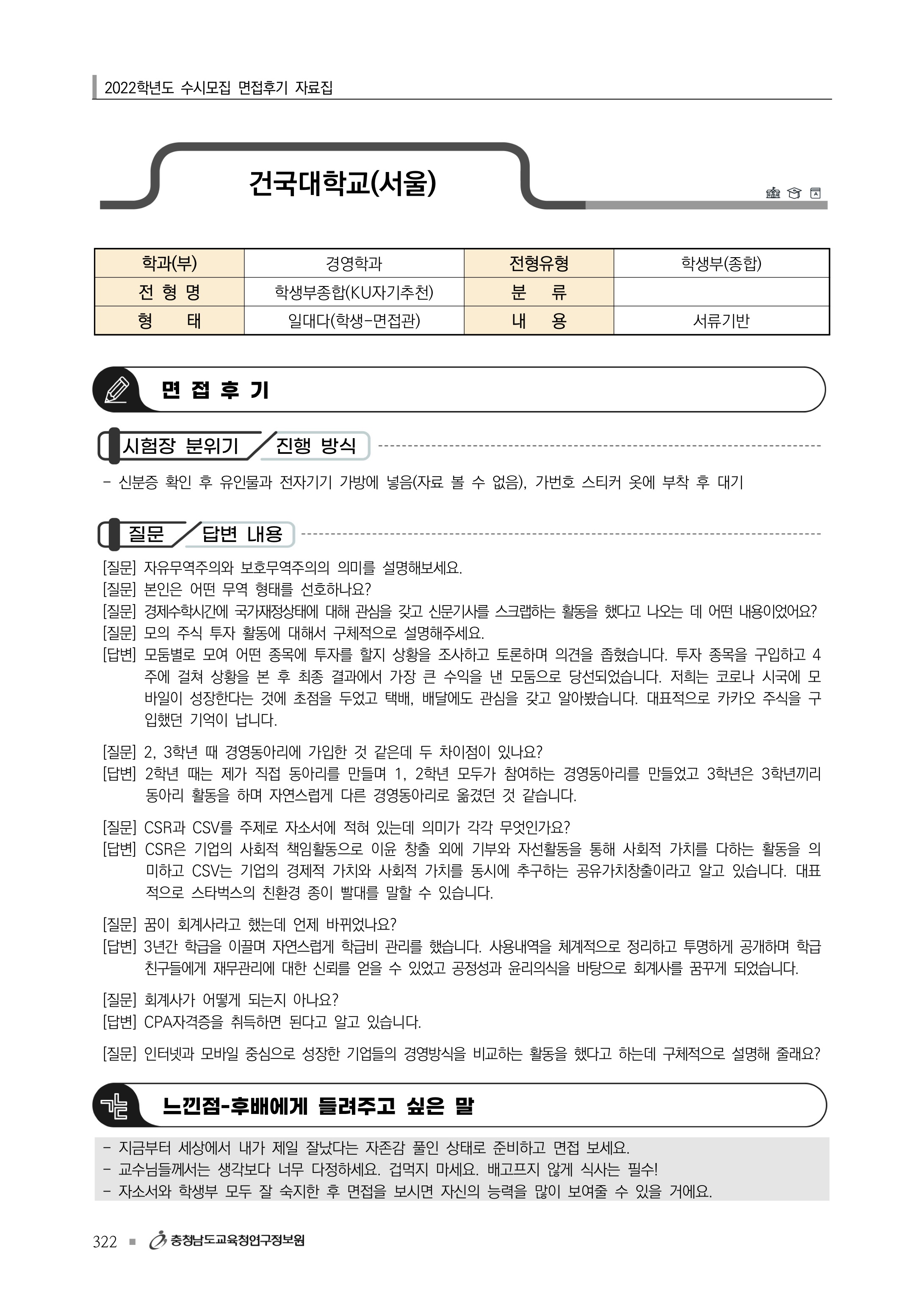 2022학년도 건국대학교 면접 후기8 - 경영학과