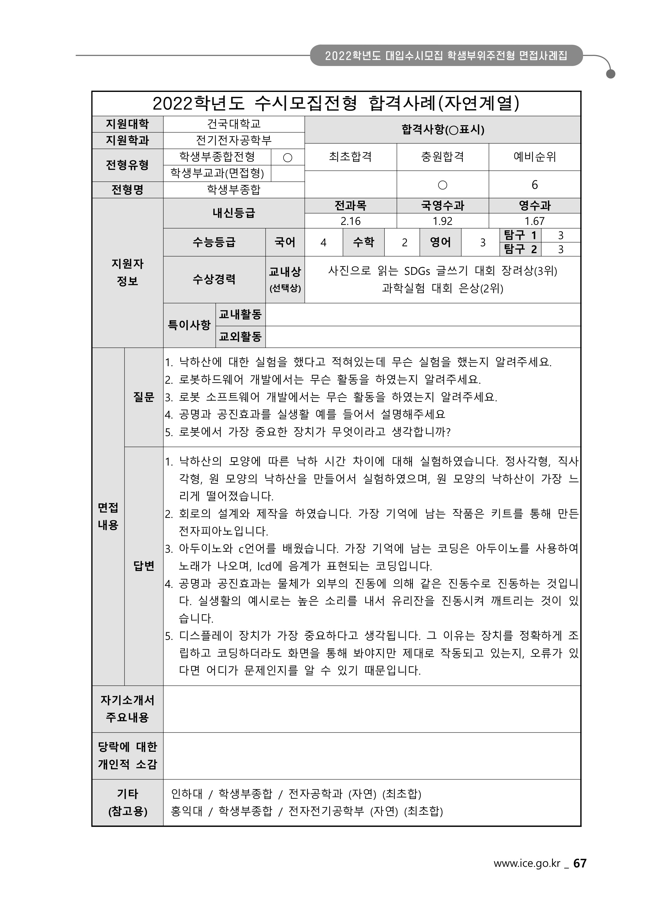 2022학년도 건국대학교 면접 후기37 - 의예과 2022학년도 건국대학교 면접 후기38 - 전기전자공학부