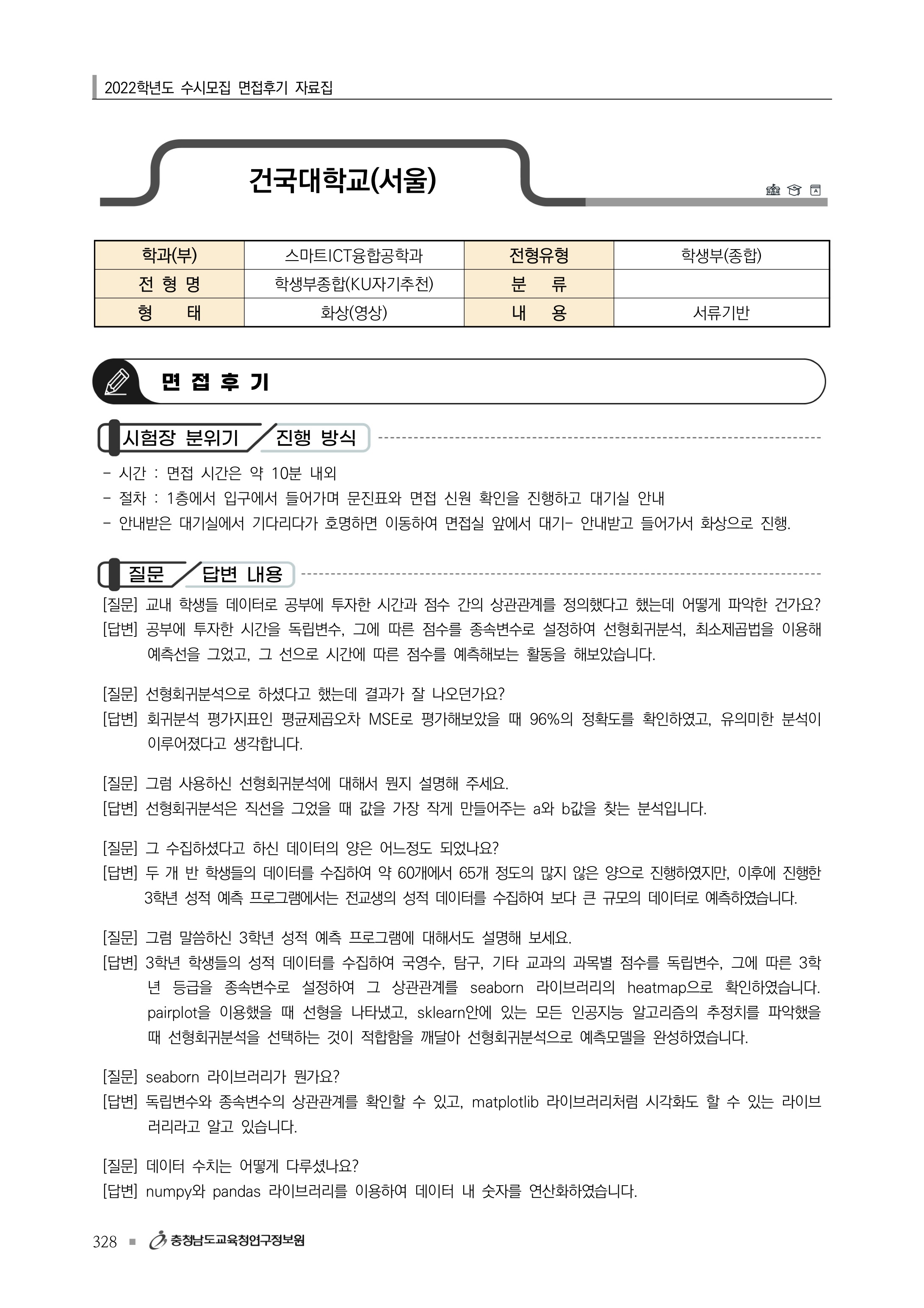 2022학년도 건국대학교 면접 후기28 - 스마트ICT융합공학과