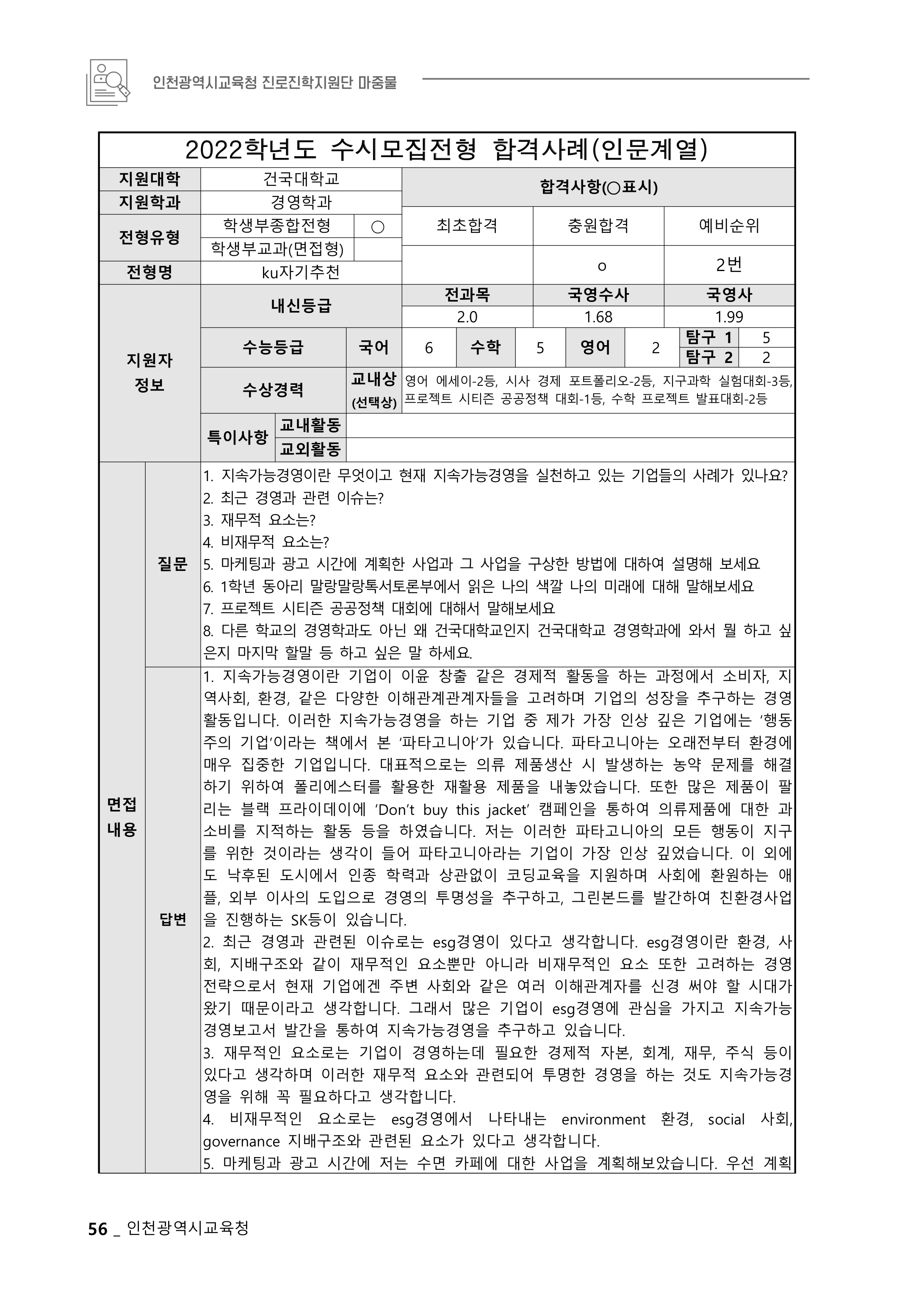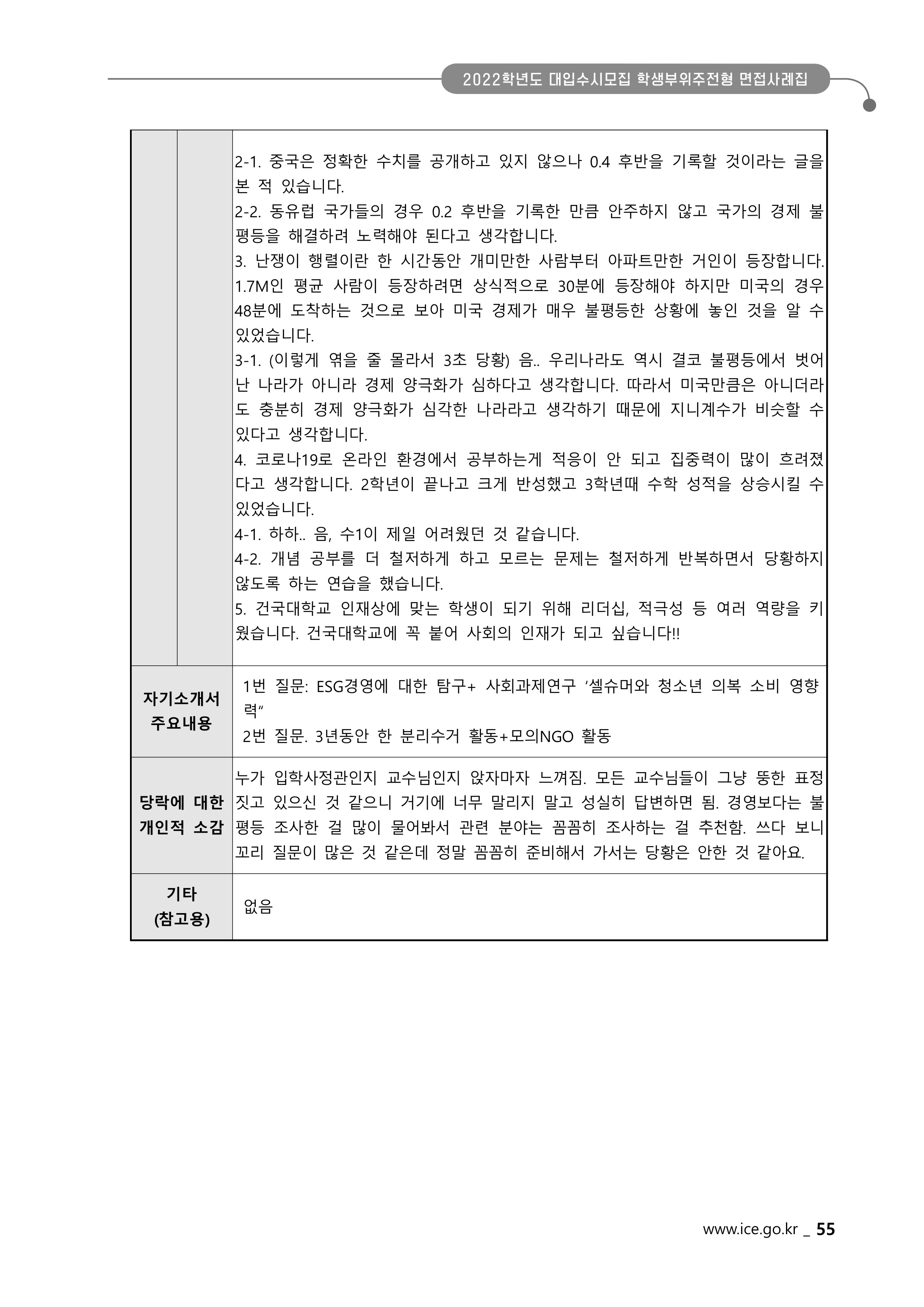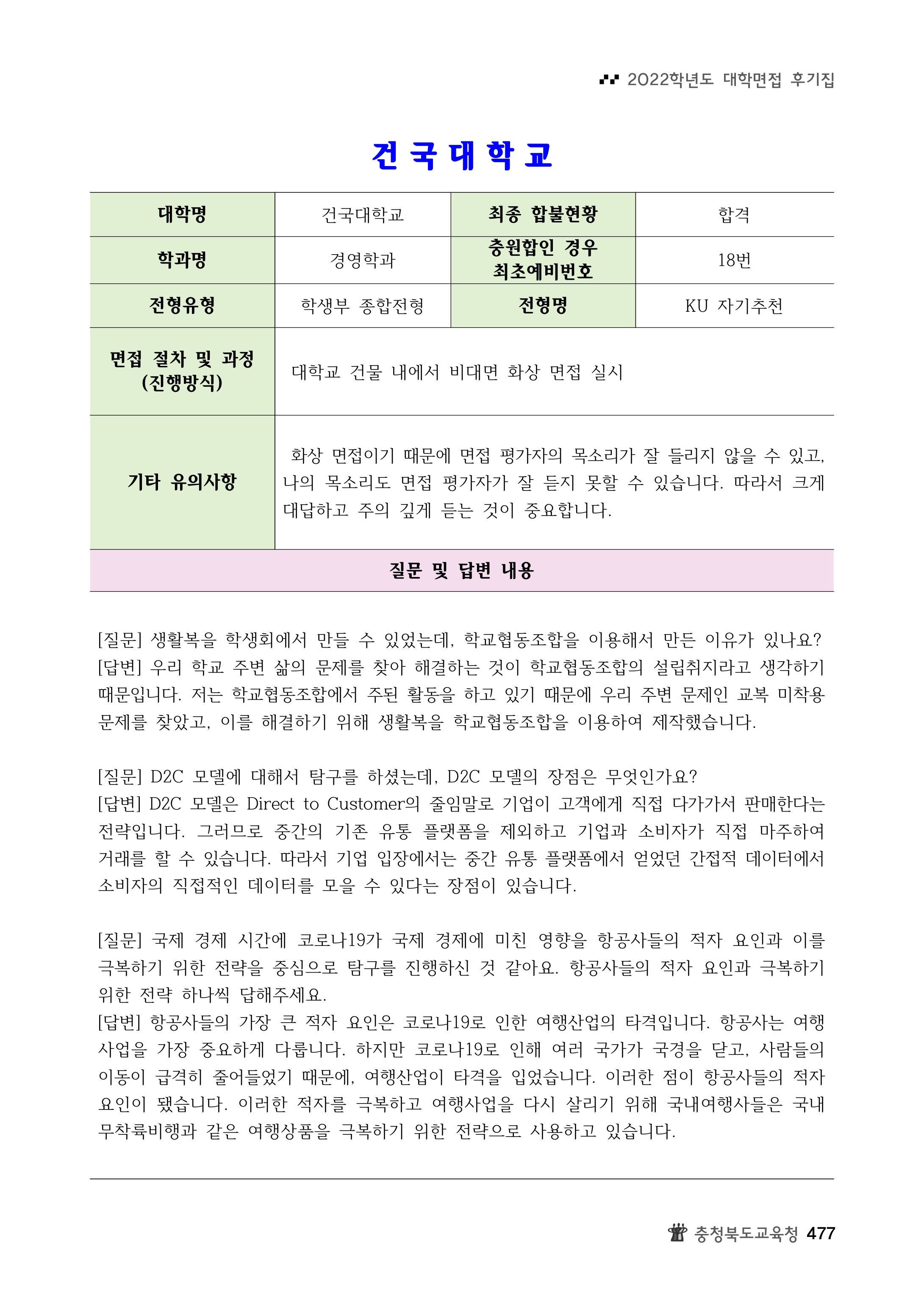 2022학년도 건국대학교 면접 후기7 - 경영학과 2022학년도 건국대학교 면접 후기8 - 경영학과