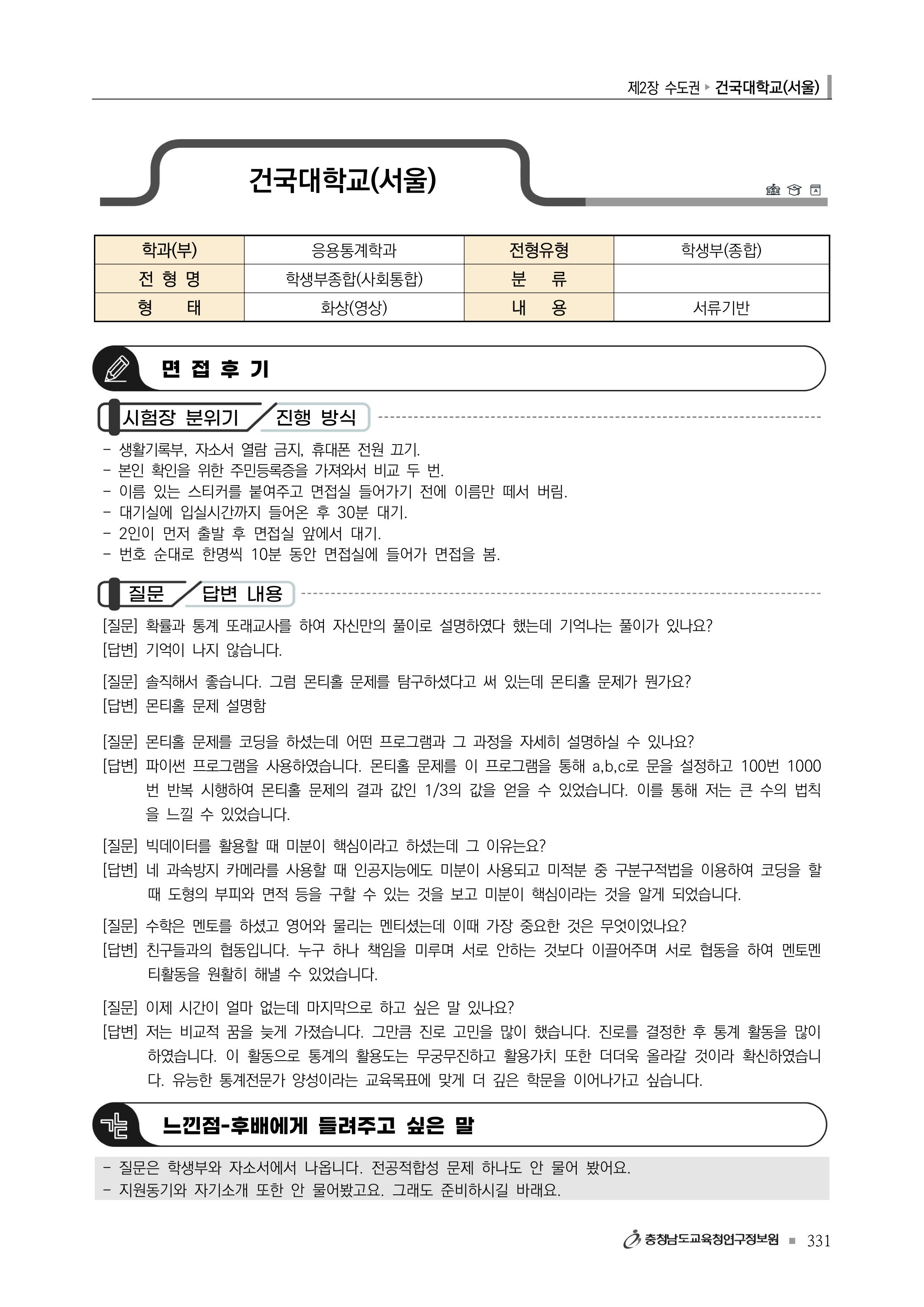 2022학년도 건국대학교 면접 후기35 - 융합인재학과 2022학년도 건국대학교 면접 후기36 - 응용통계학과