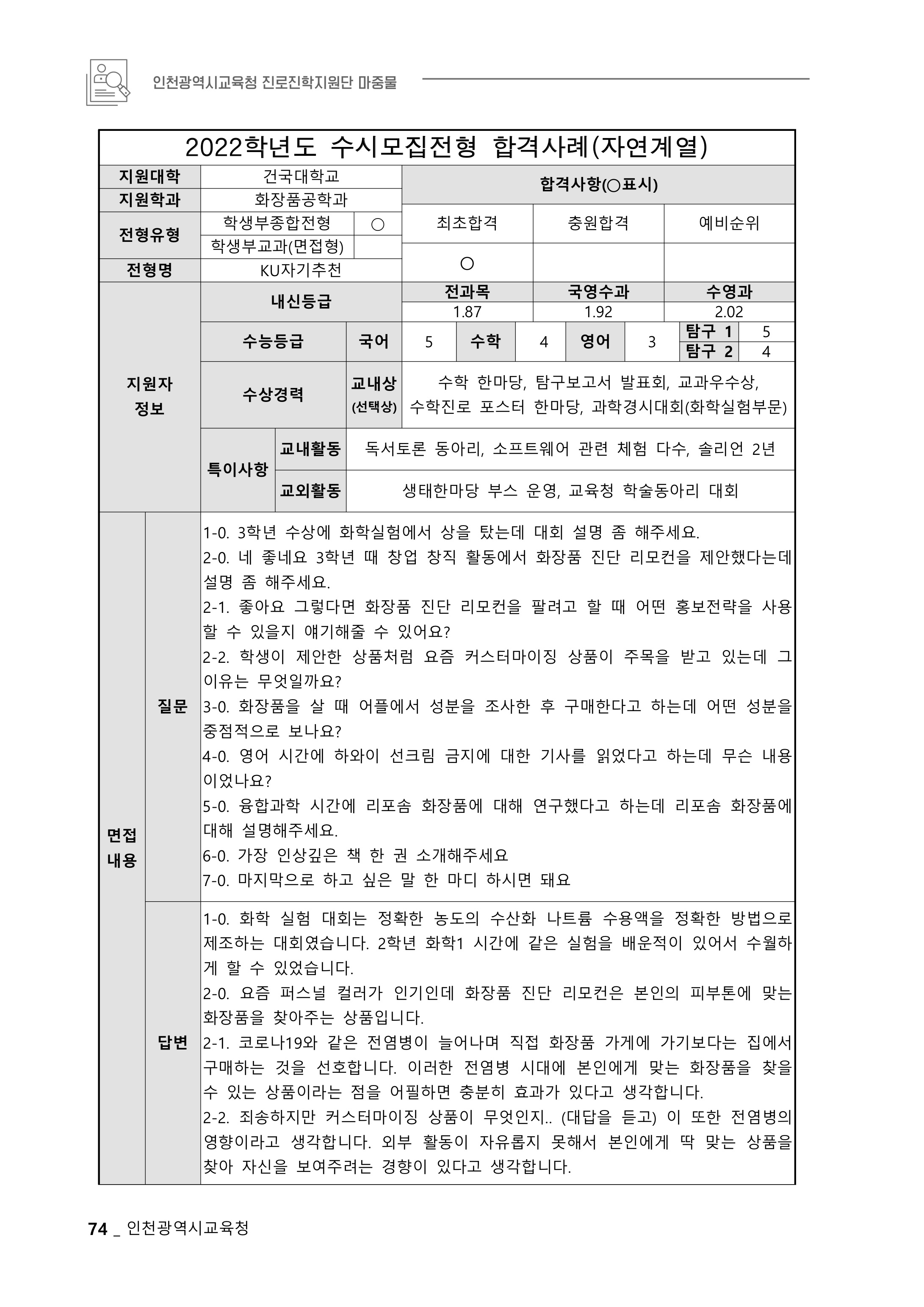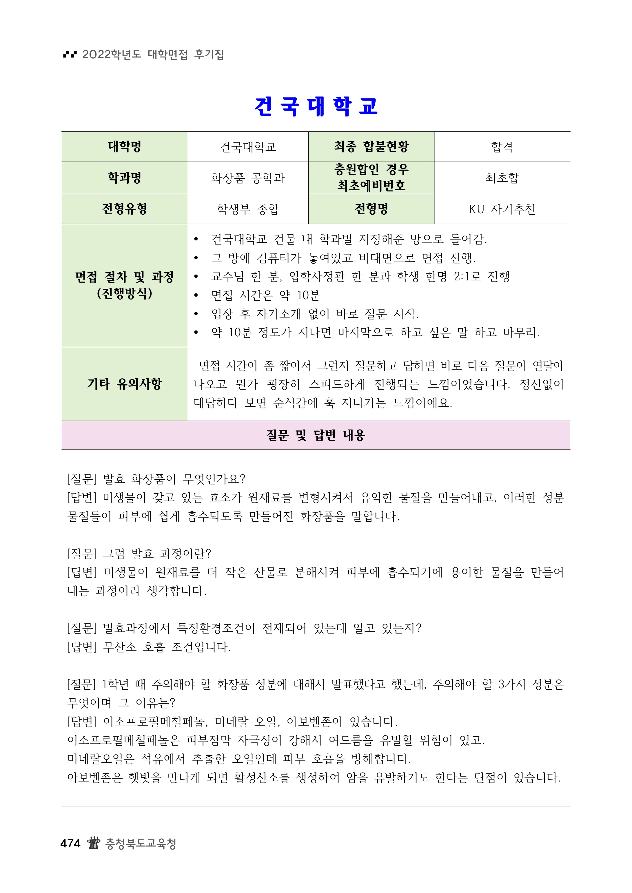 2022학년도 건국대학교 면접 후기55 - 화장품공학과