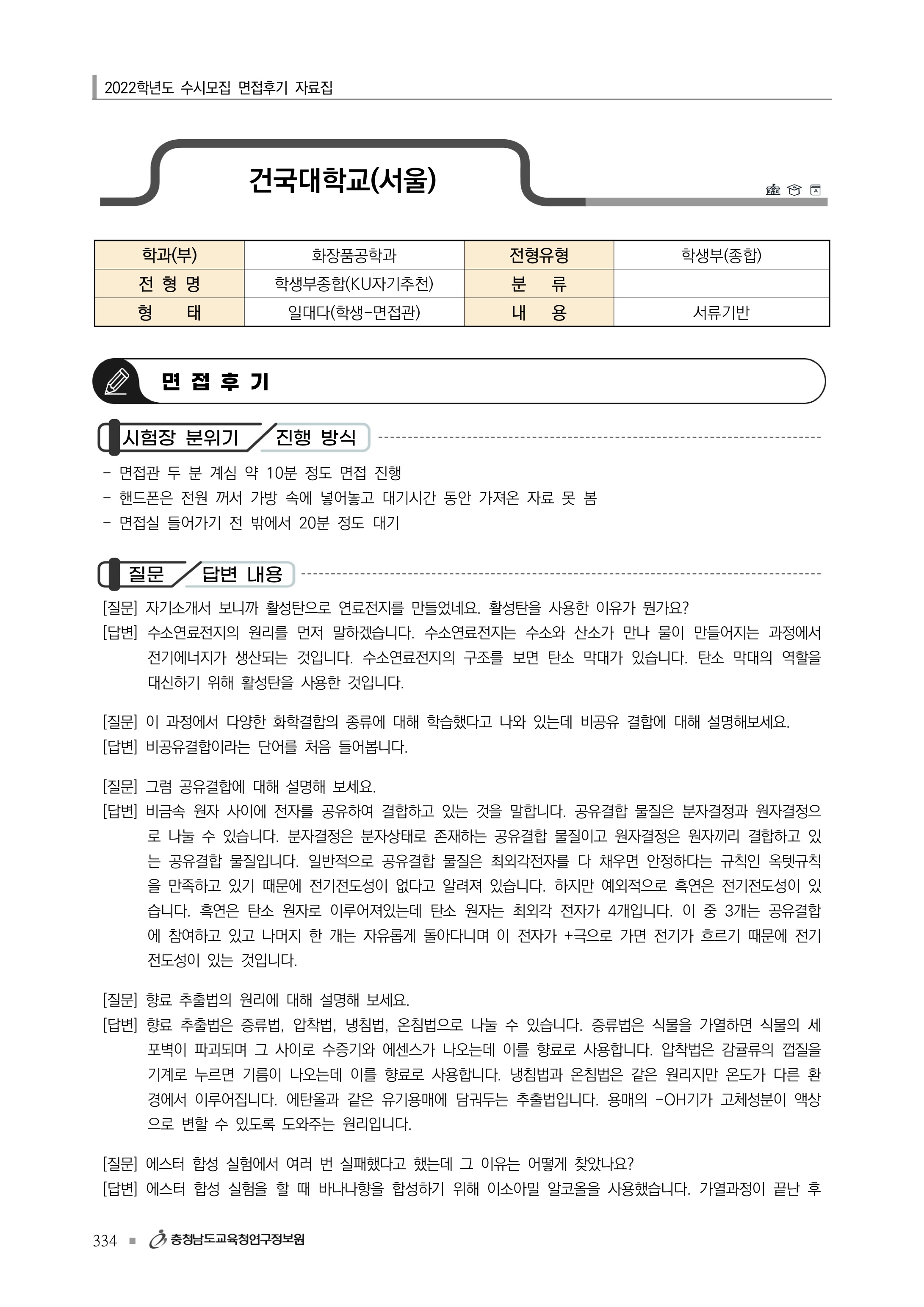 2022학년도 건국대학교 면접 후기55 - 화장품공학과 2022학년도 건국대학교 면접 후기56 - 화학공학부