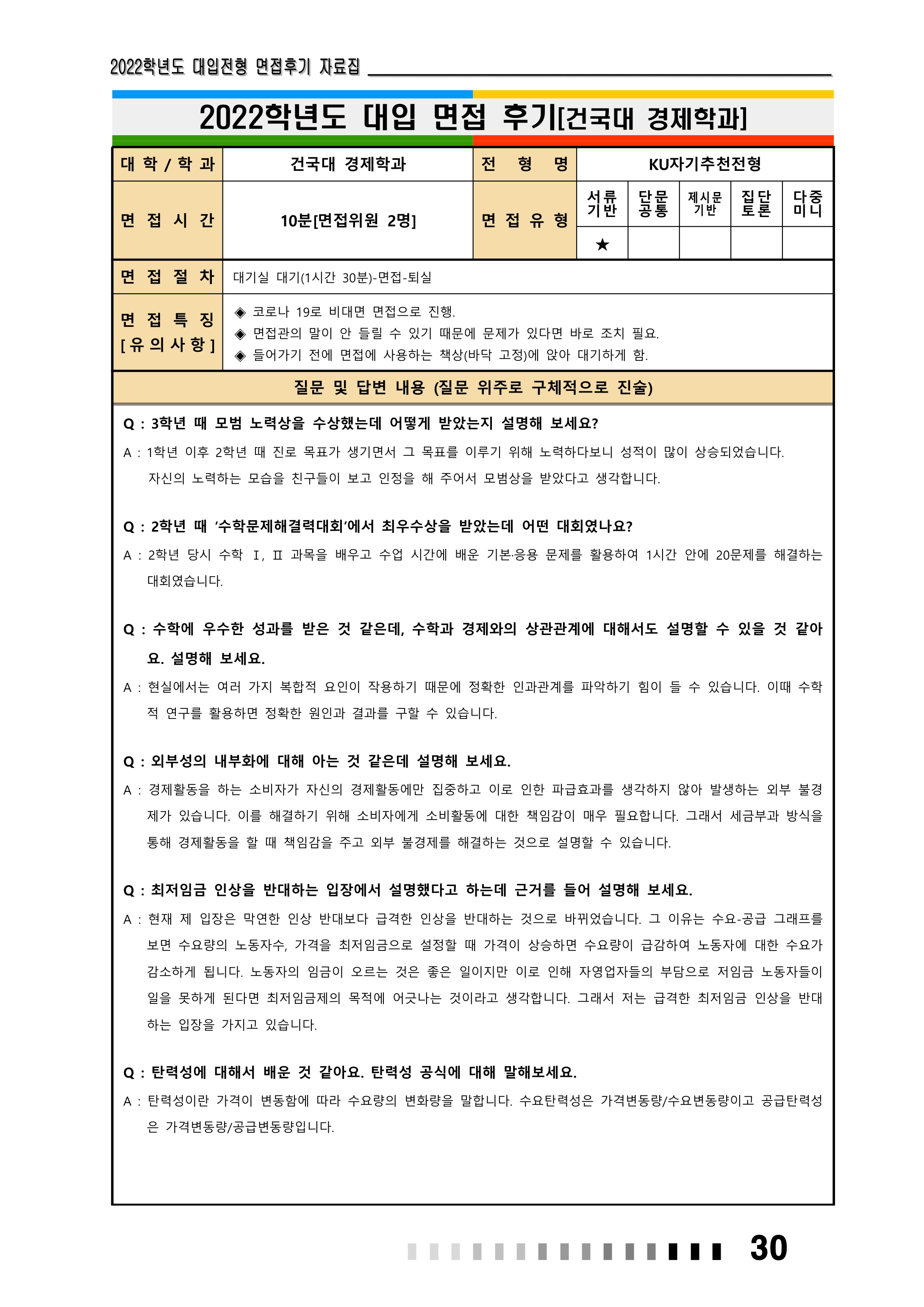 2022학년도 건국대학교 면접 후기11 - 경제학과