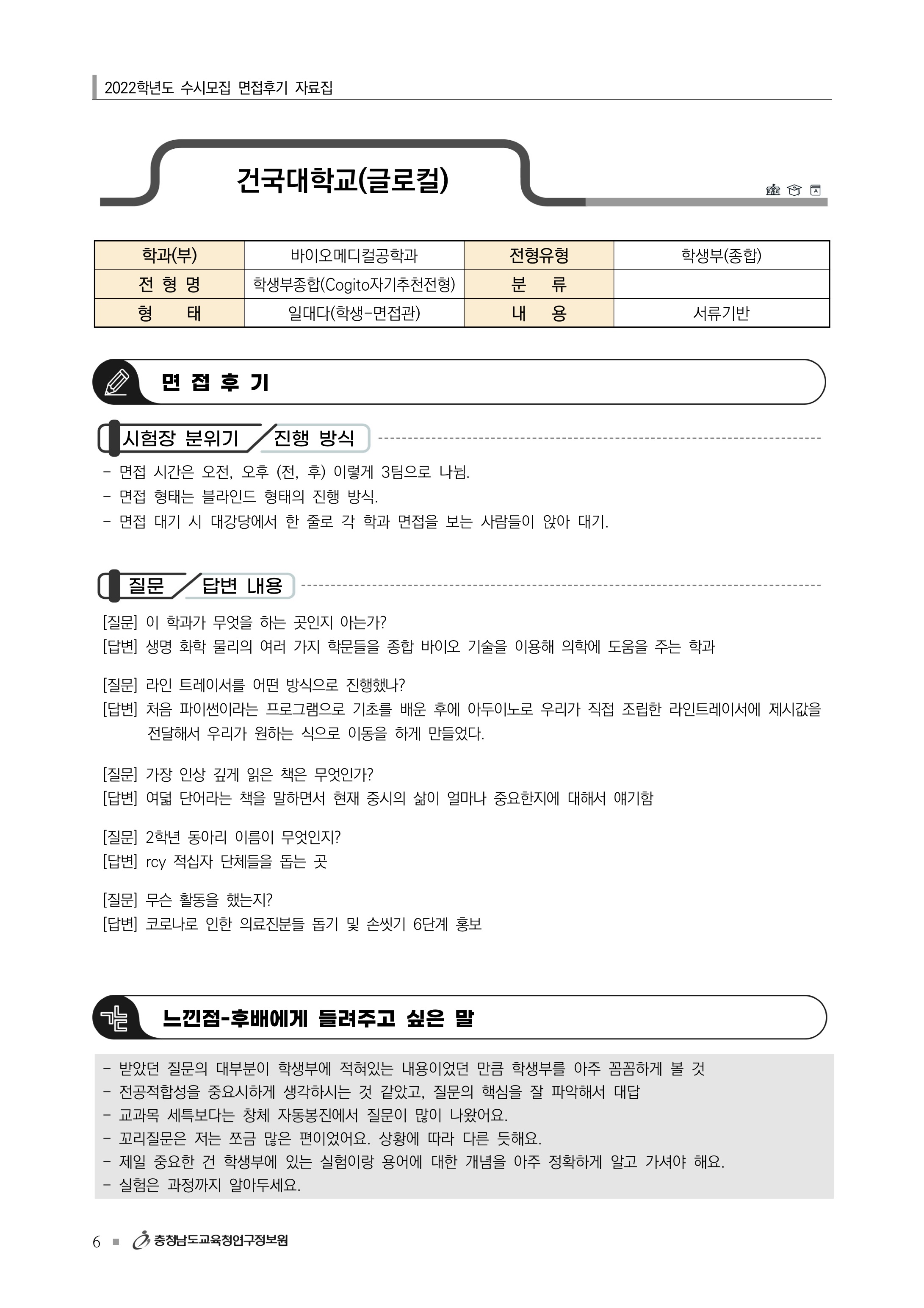 2022학년도 건국대학교 면접 후기16 - 미래에너지공학과 2022학년도 건국대학교 면접 후기17 - 바이오메디컬공학과