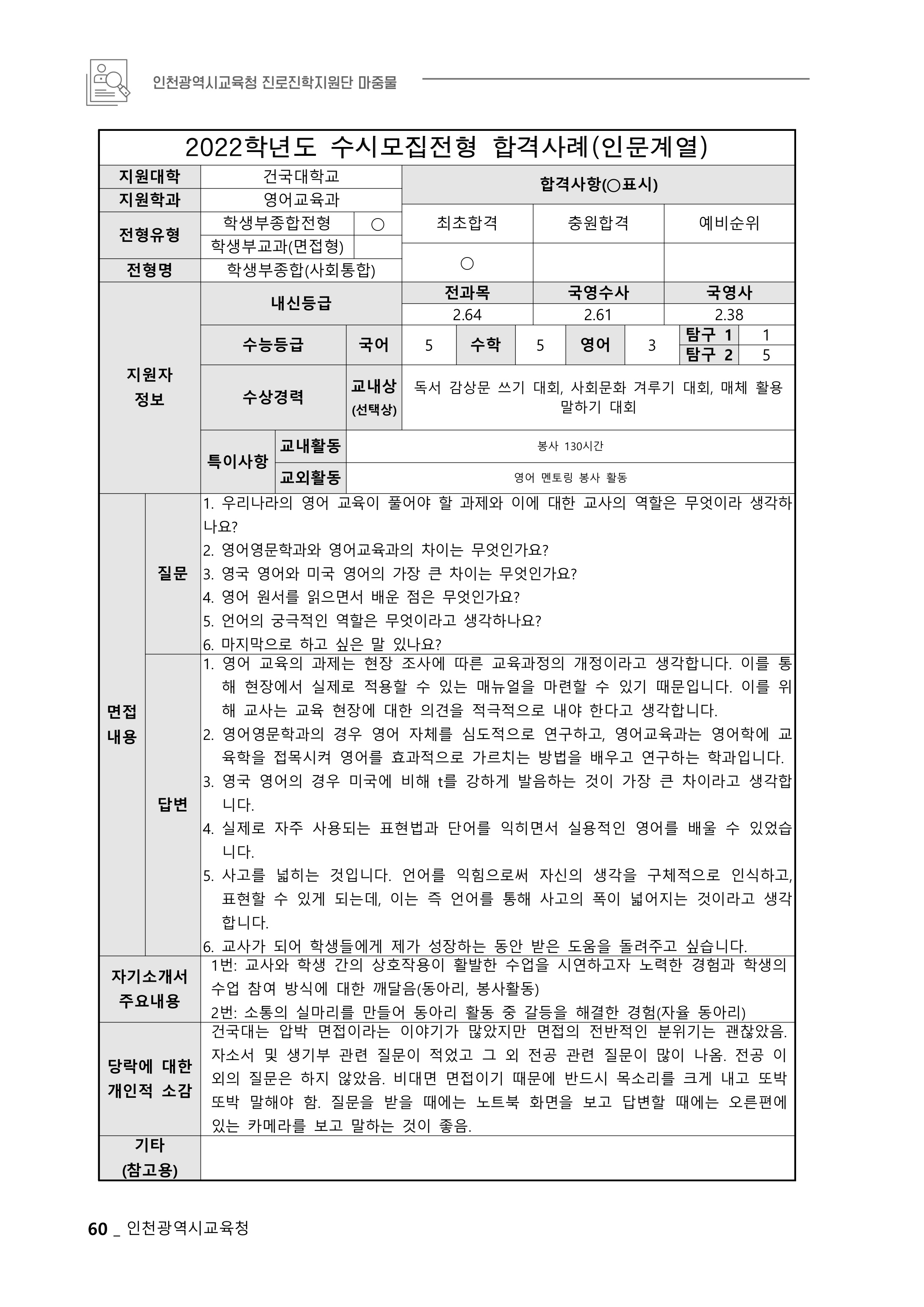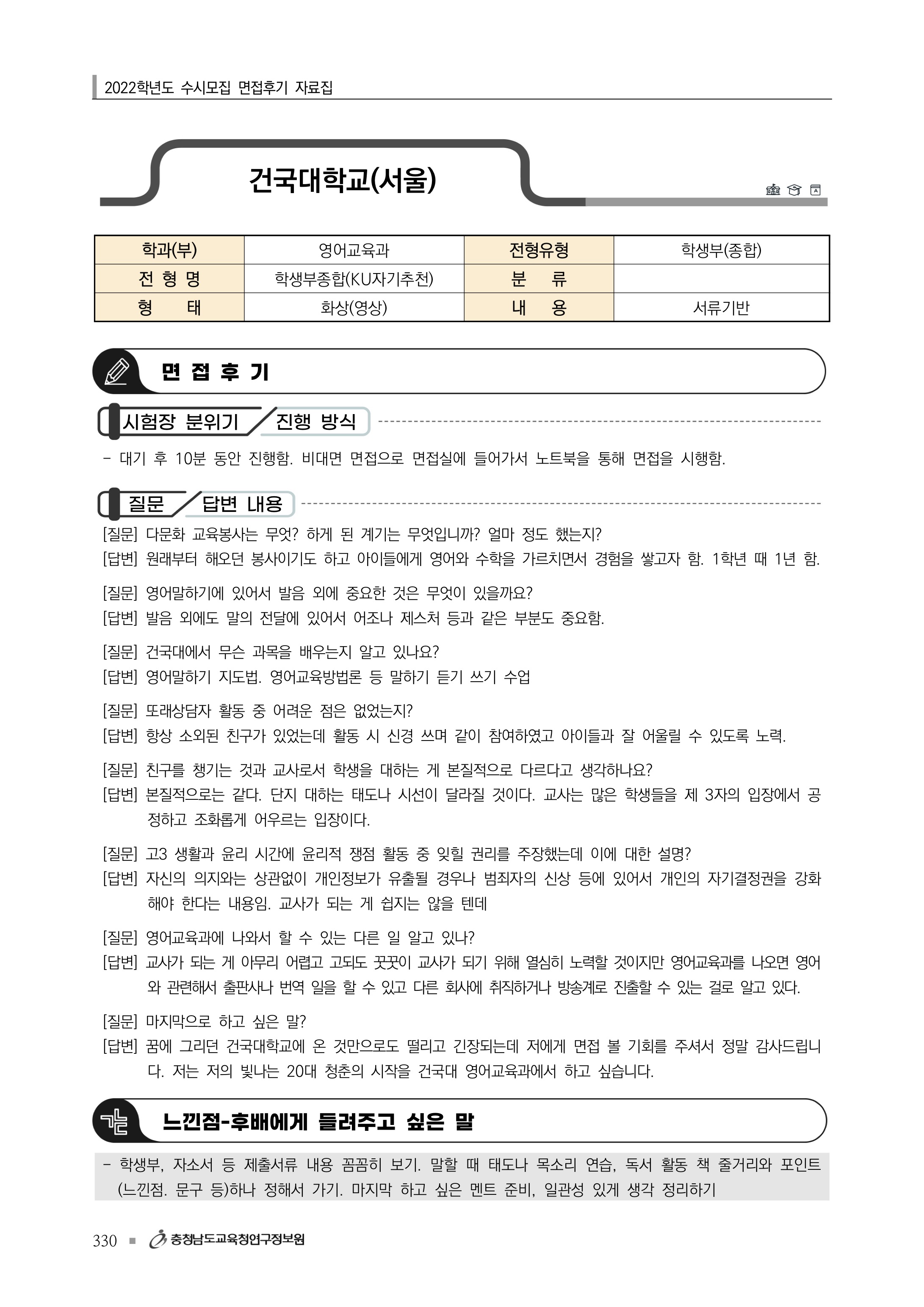2022학년도 건국대학교 면접 후기31 - 식량자원과학과 2022학년도 건국대학교 면접 후기32 - 영어교육과