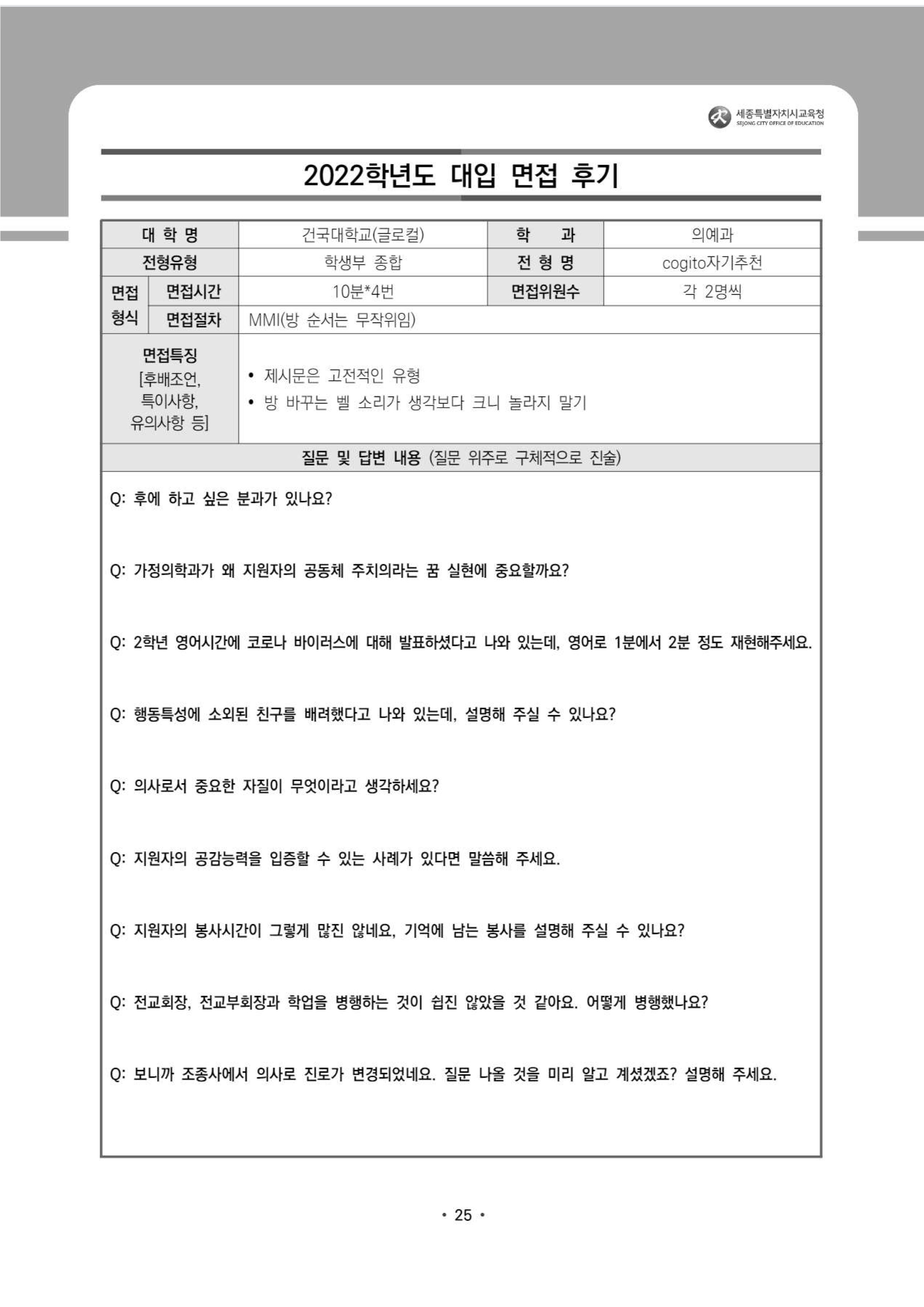 2022학년도 건국대학교 면접 후기37 - 의예과