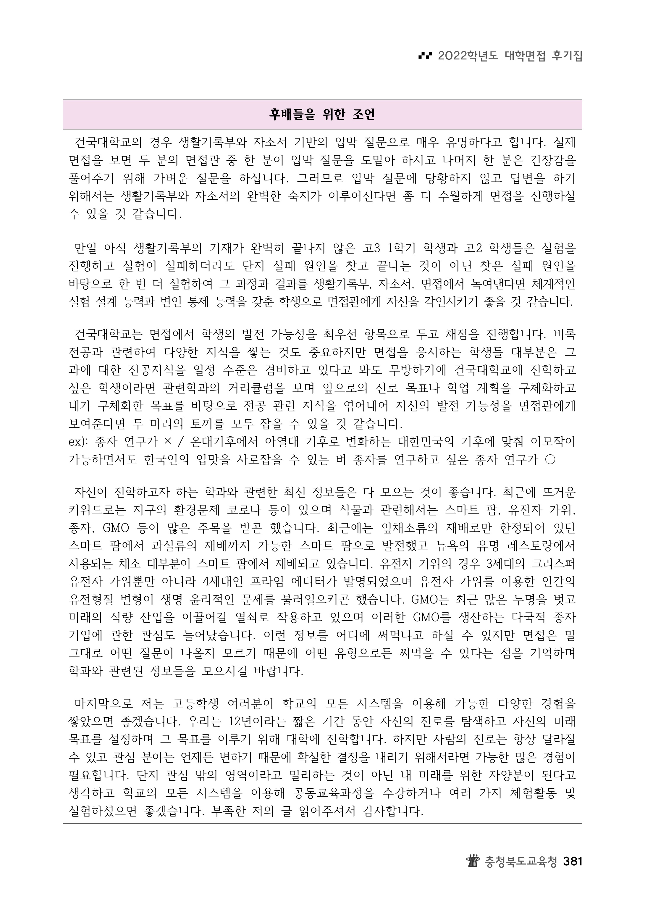 2022학년도 건국대학교 면접 후기29 - 스마트ICT융합공학과 2022학년도 건국대학교 면접 후기30 - 식량자원과학과