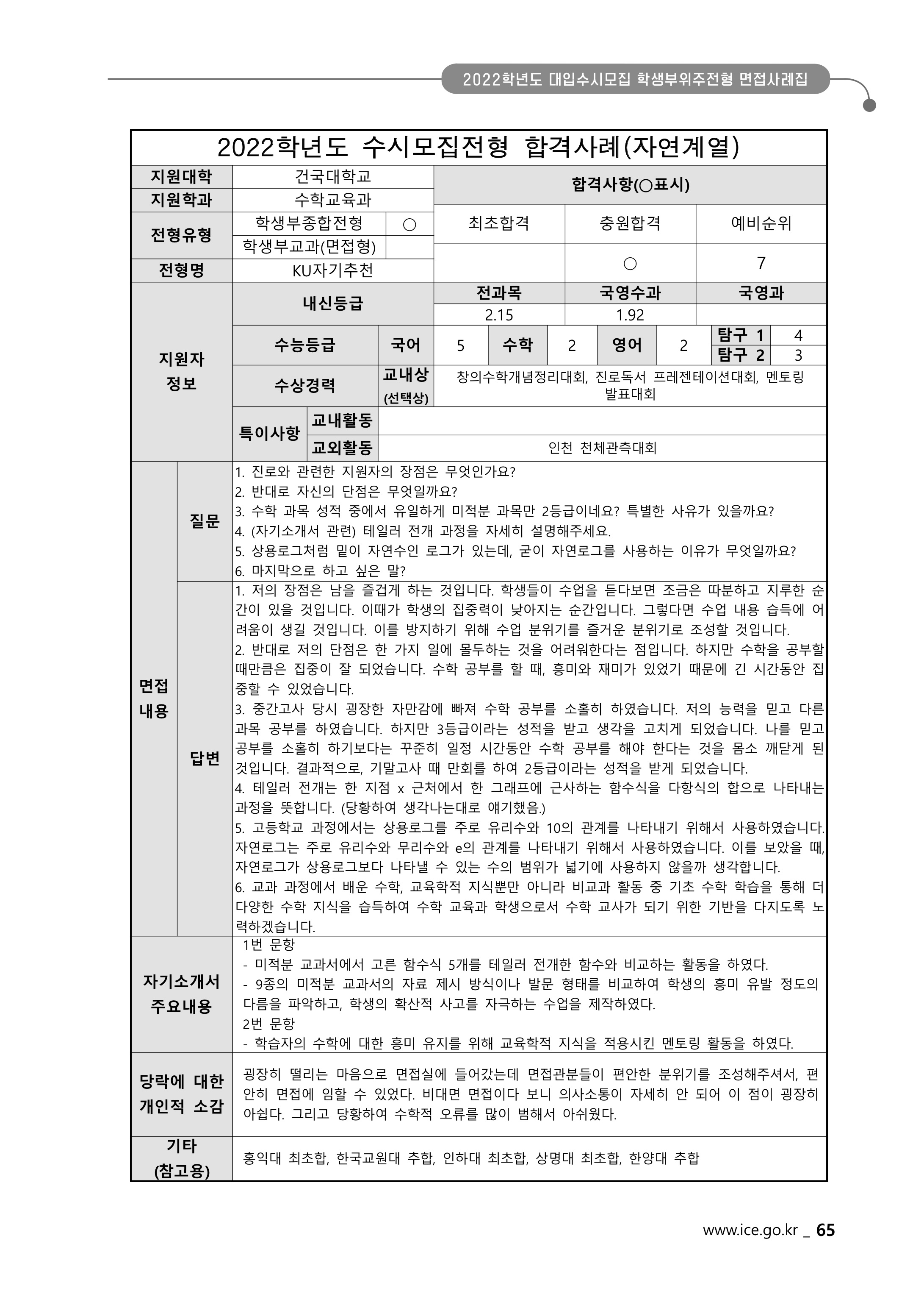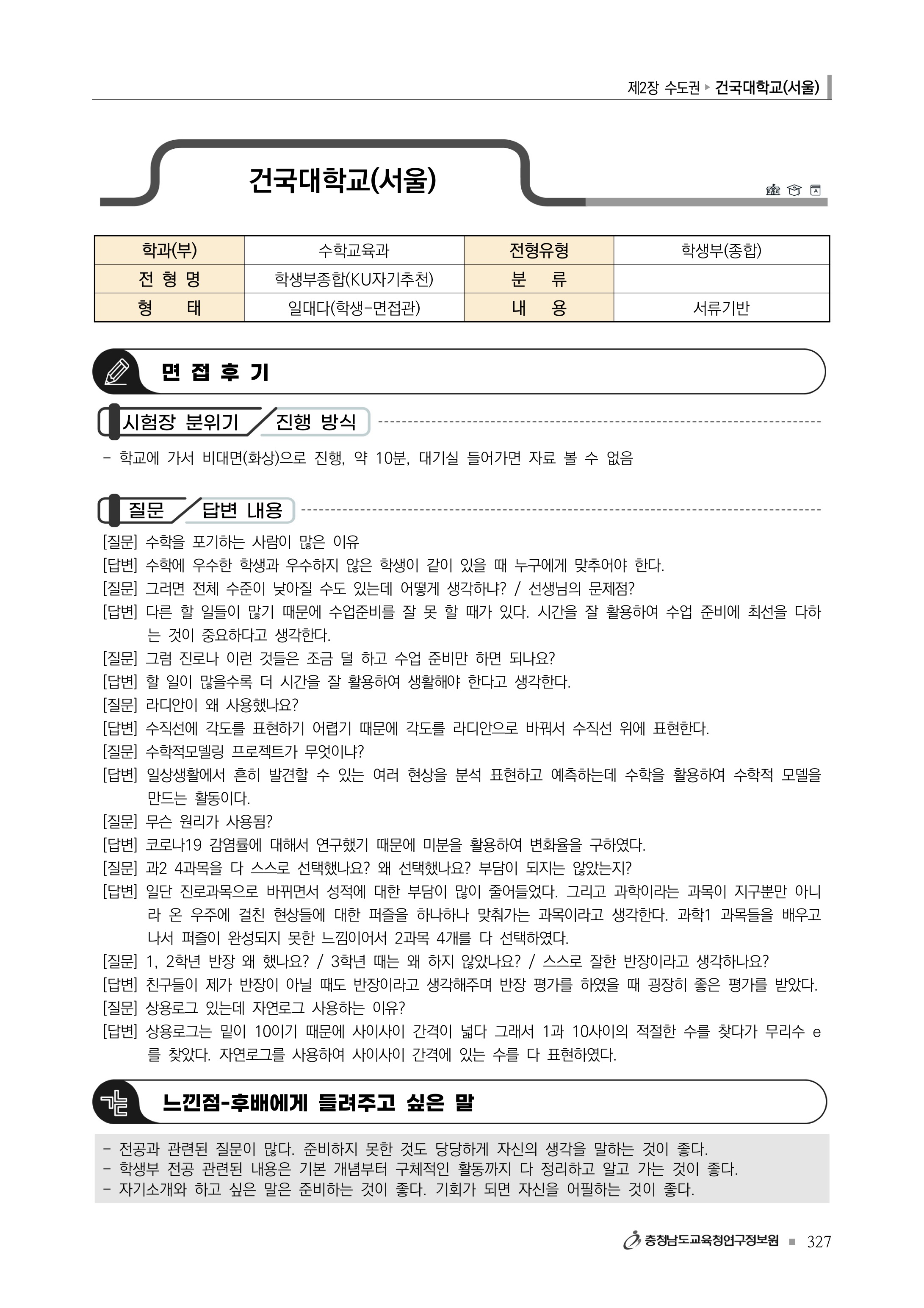 2022학년도 건국대학교 면접 후기26 - 수학교육과 2022학년도 건국대학교 면접 후기27 - 스마트ICT융합공학과