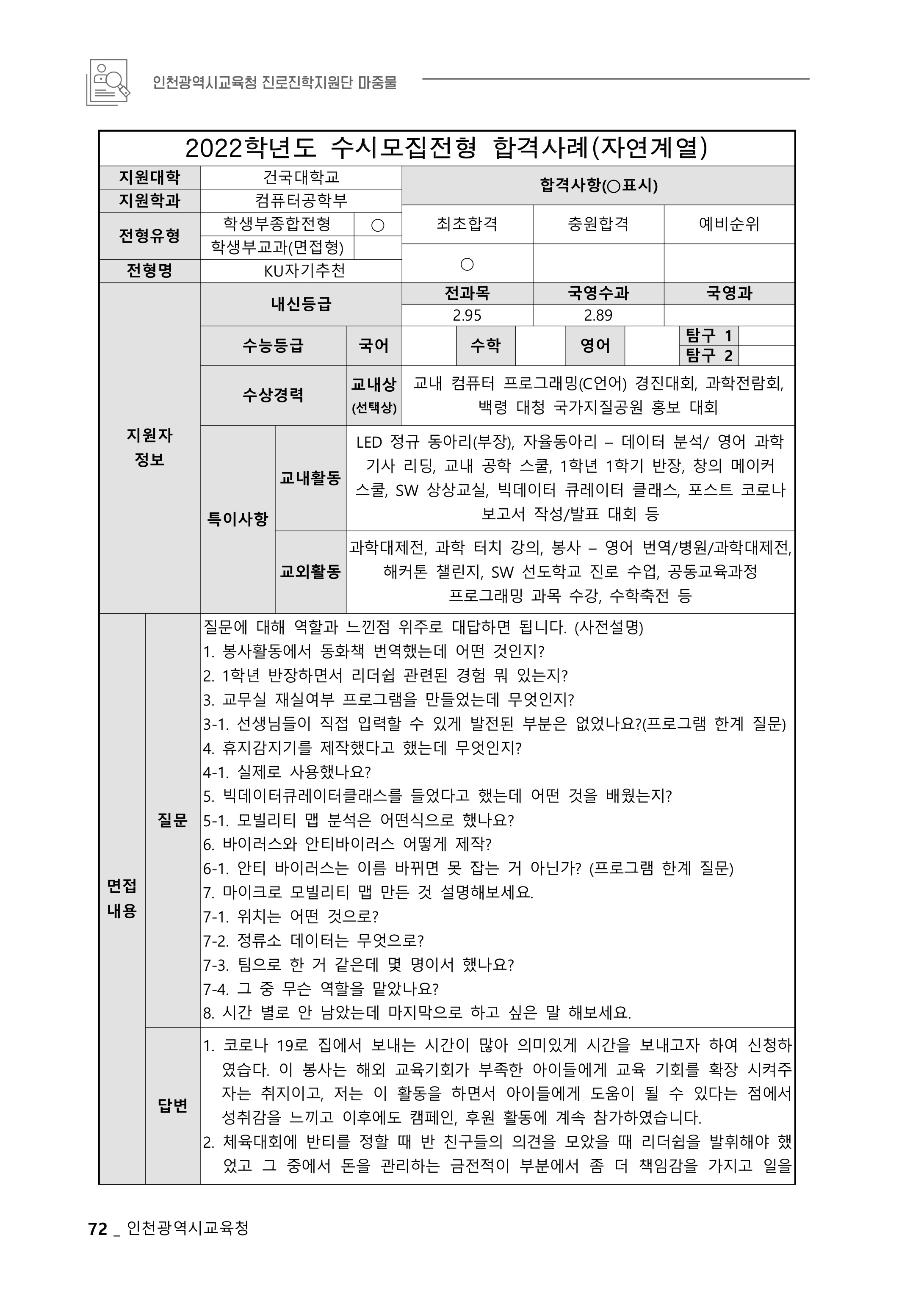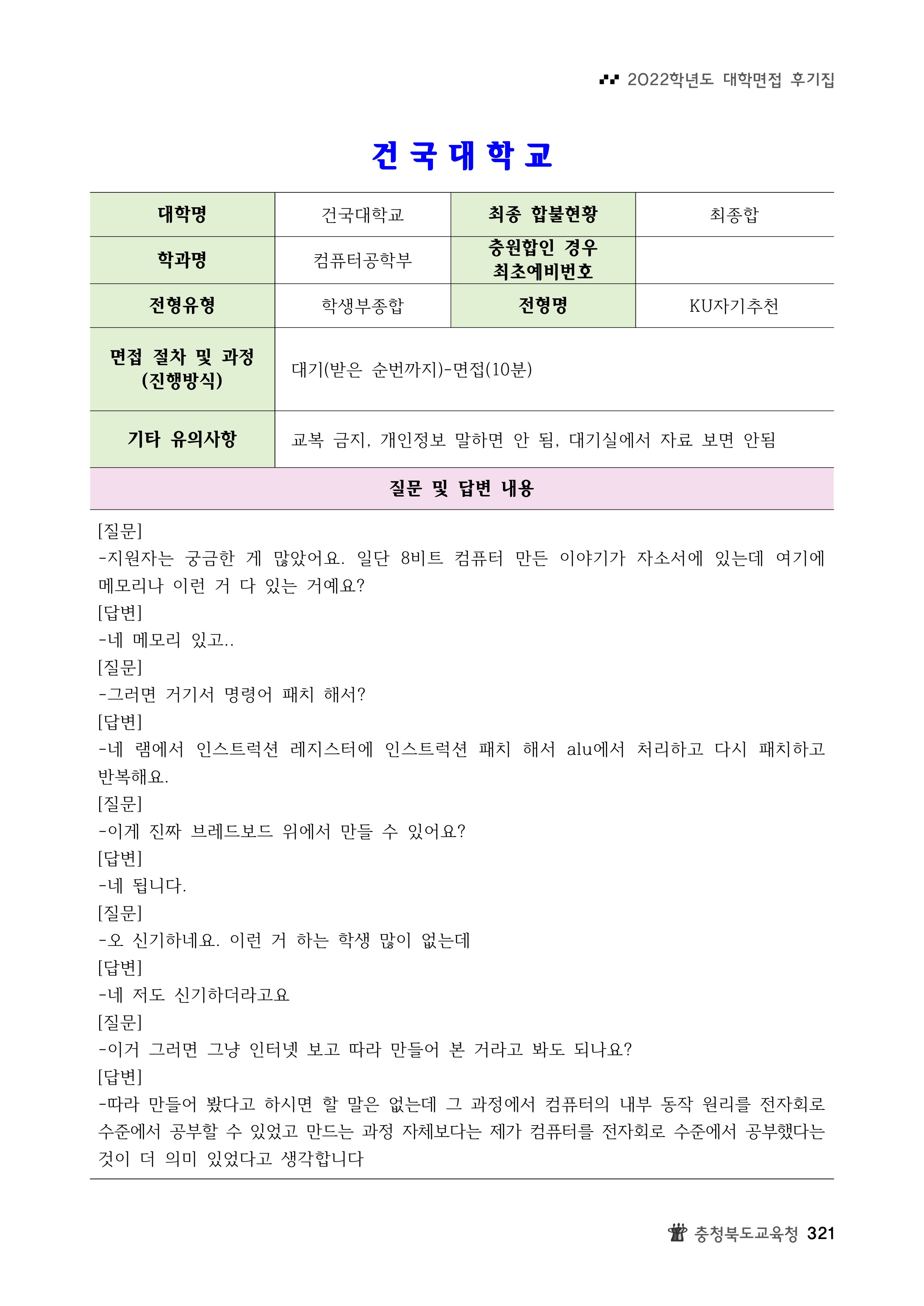 2022학년도 건국대학교 면접 후기48 - 축산식품생명공학과 2022학년도 건국대학교 면접 후기49 - 컴퓨터공학부