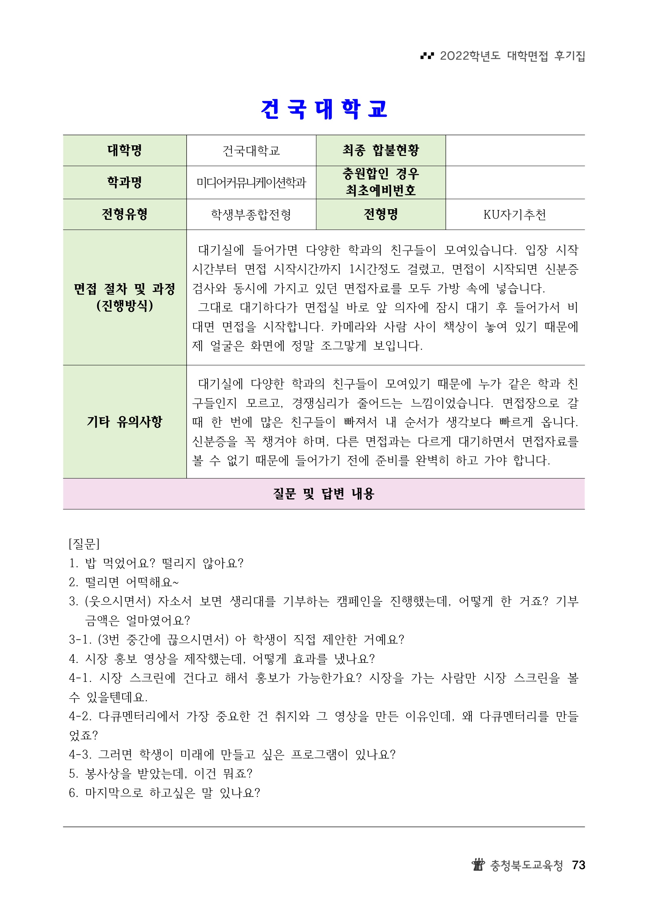 2022학년도 건국대학교 면접 후기15 - 미디어커뮤니케이션학과 2022학년도 건국대학교 면접 후기16 - 미래에너지공학과