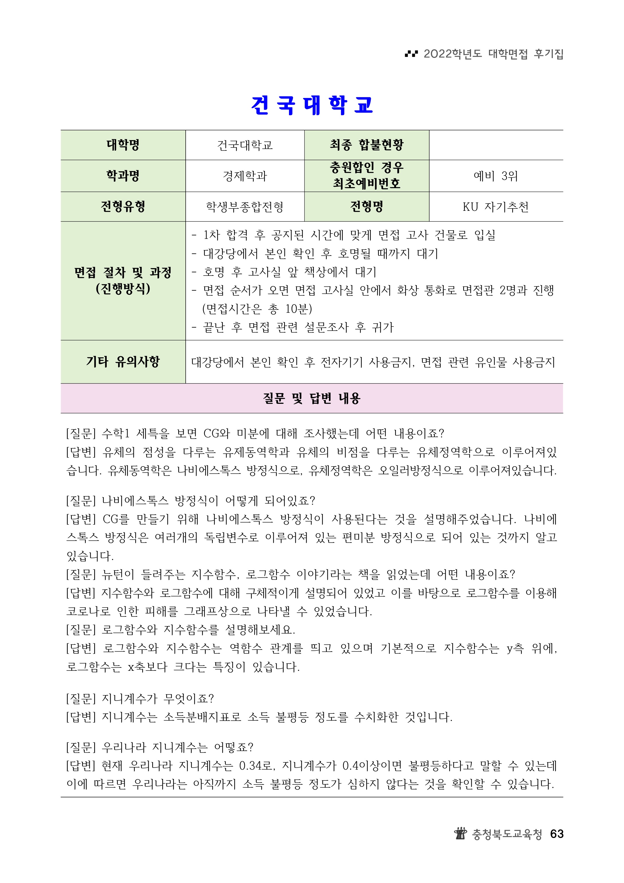 2022학년도 건국대학교 면접 후기9 - 경제학과
