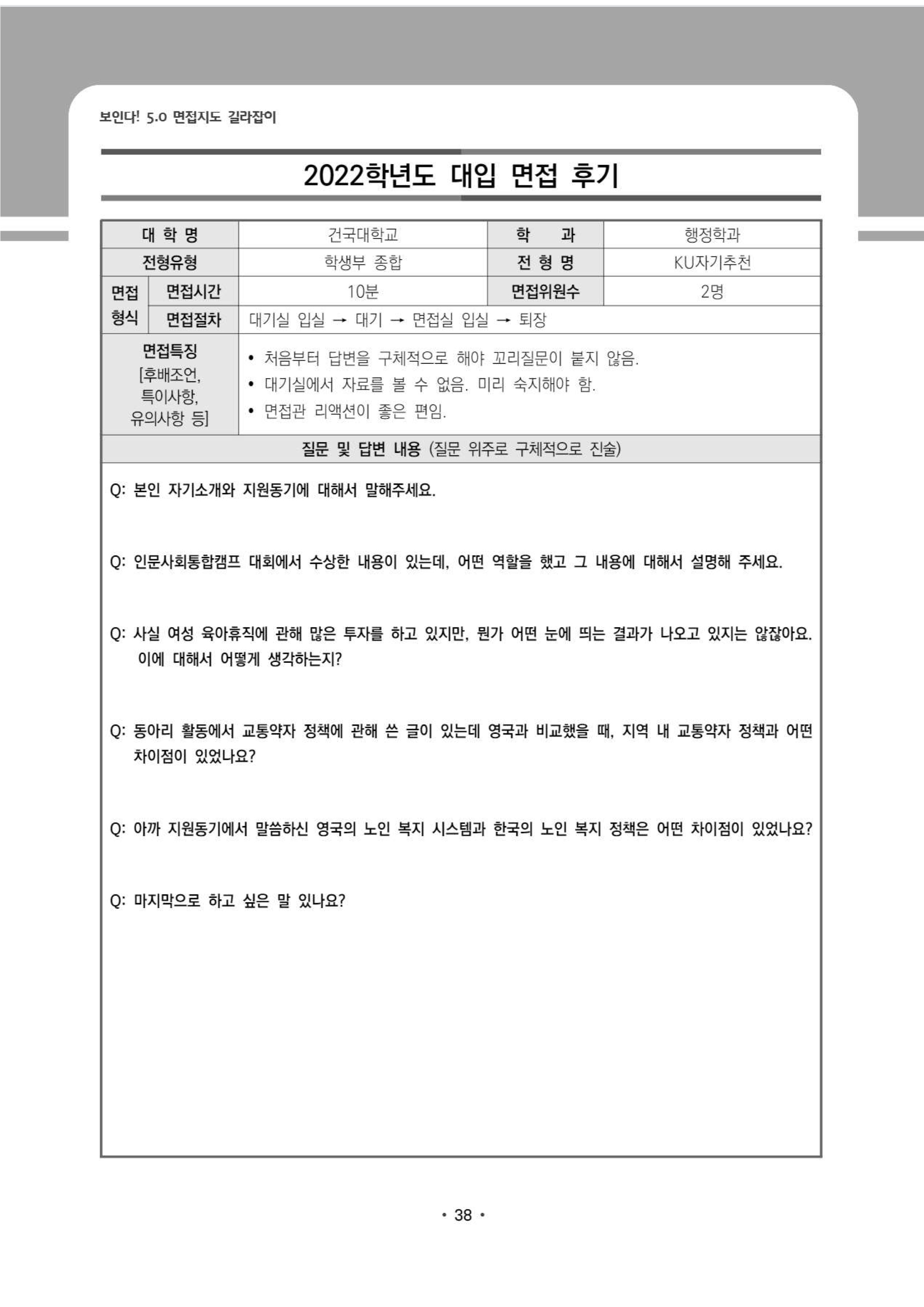 2022학년도 건국대학교 면접 후기51 - 컴퓨터공학부 2022학년도 건국대학교 면접 후기52 - 행정학과