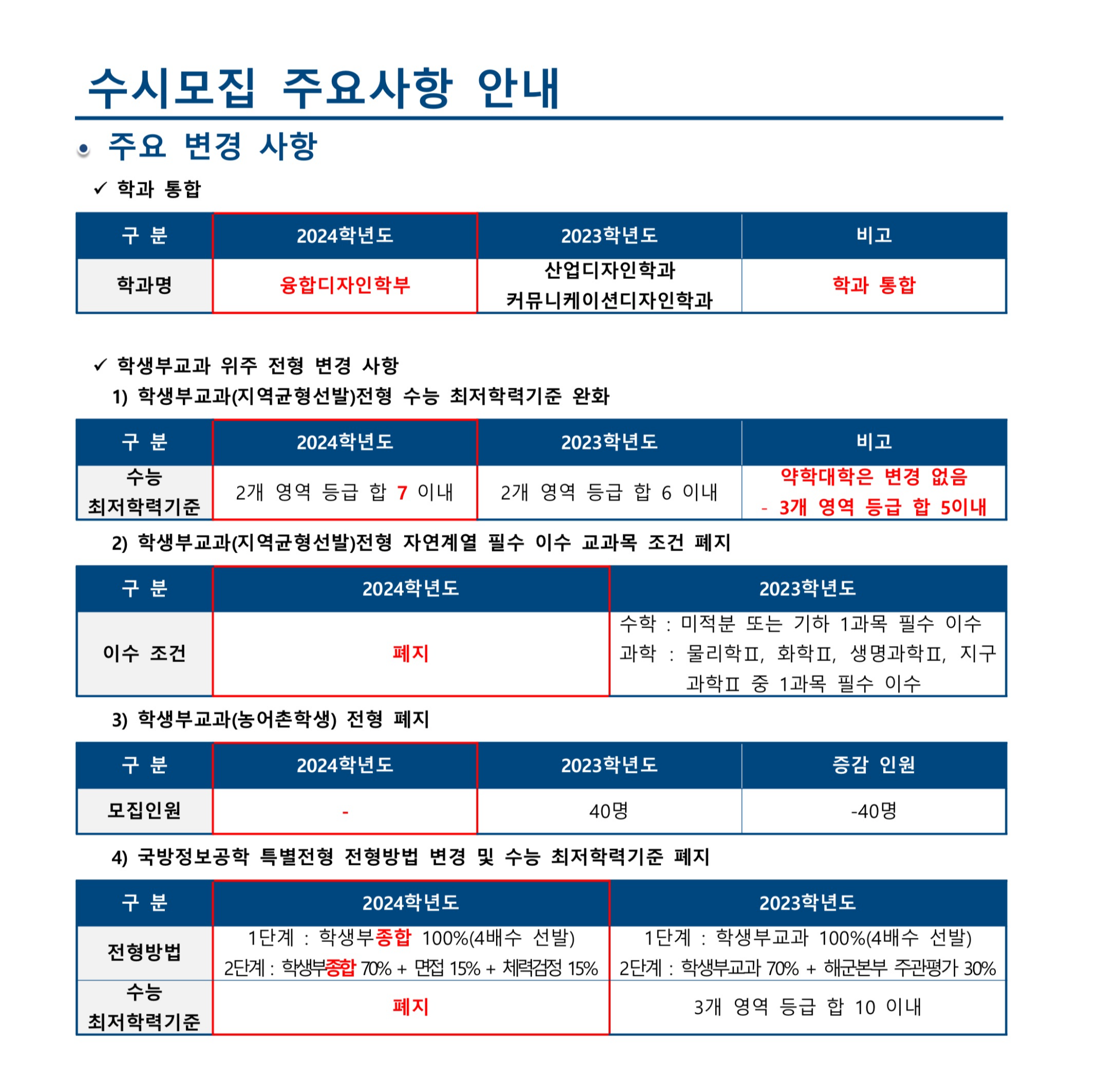 2024학년도 한양대학교 에리카 수시모집 주요 변경 사항