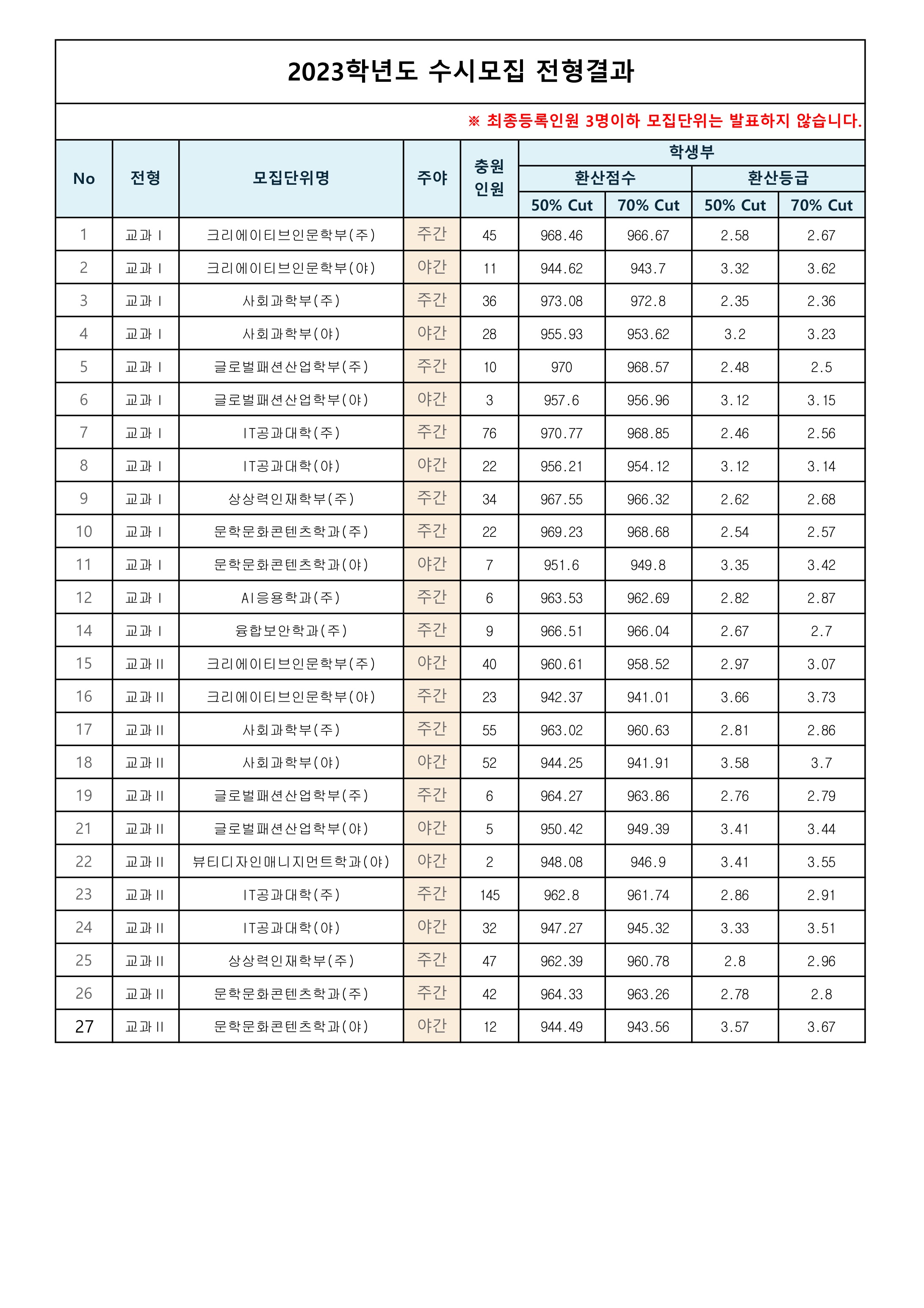 2023학년도 한성대학교 수시등급입시 정보/수시등급 입시 결과 2023. 4. 19. 16:19