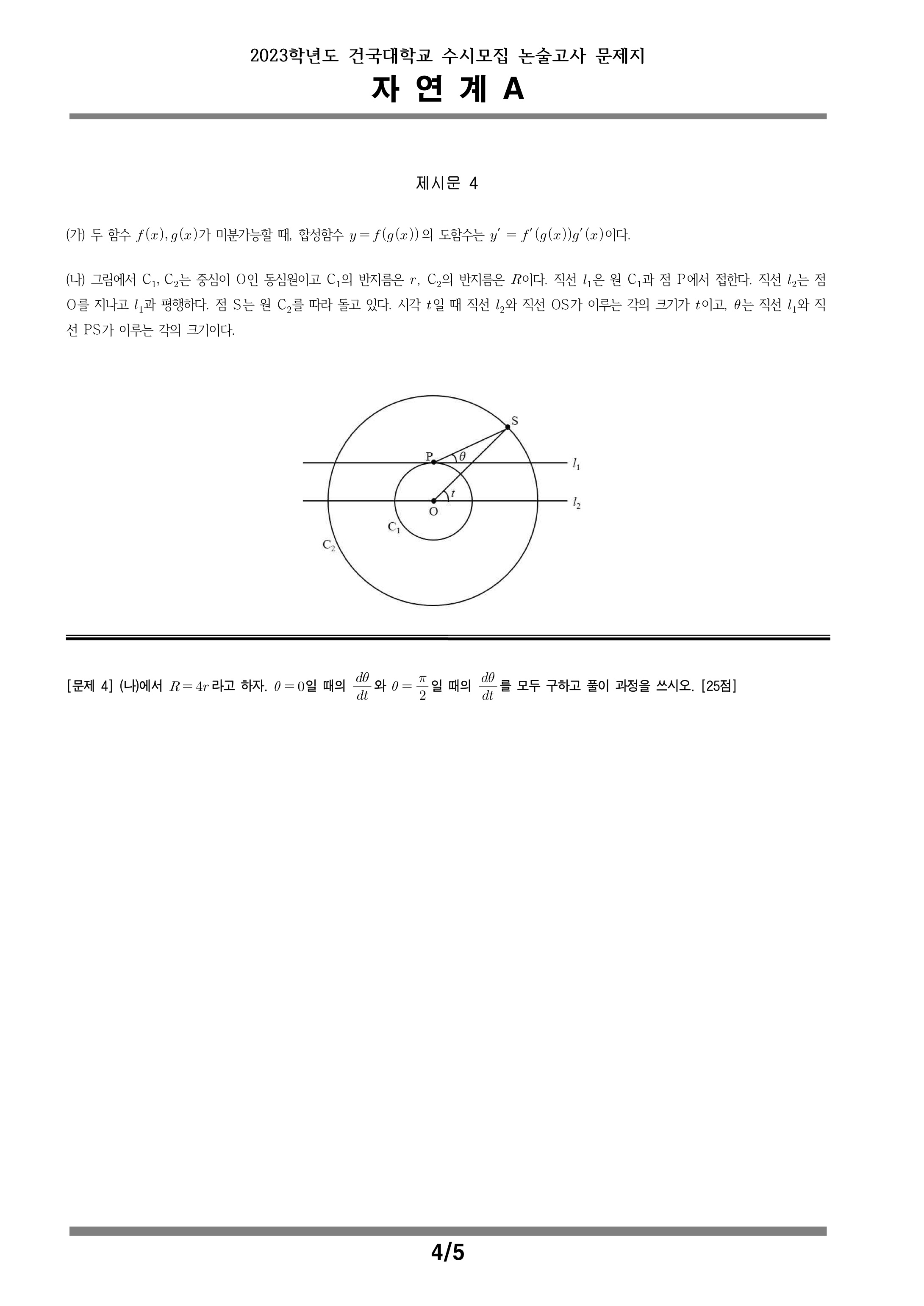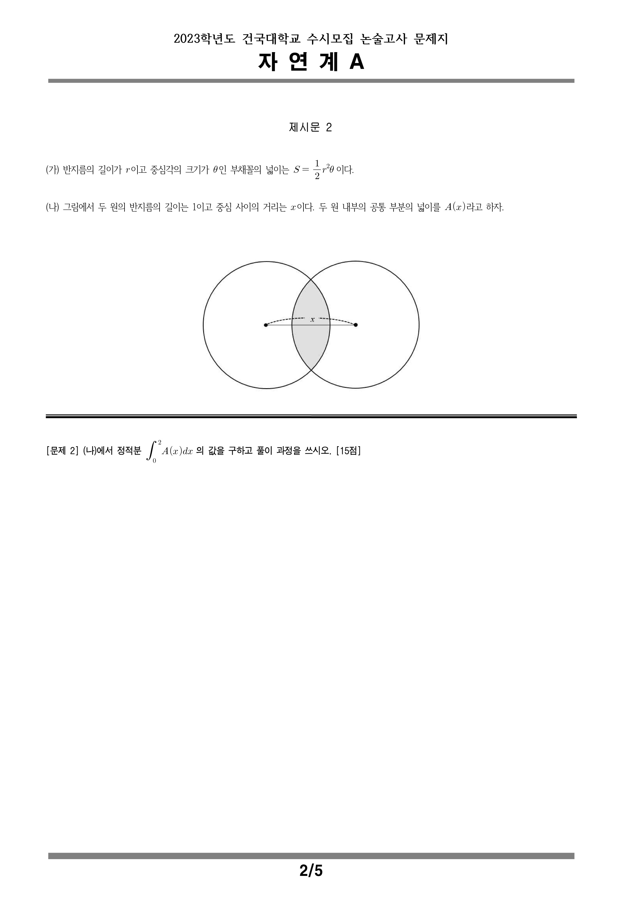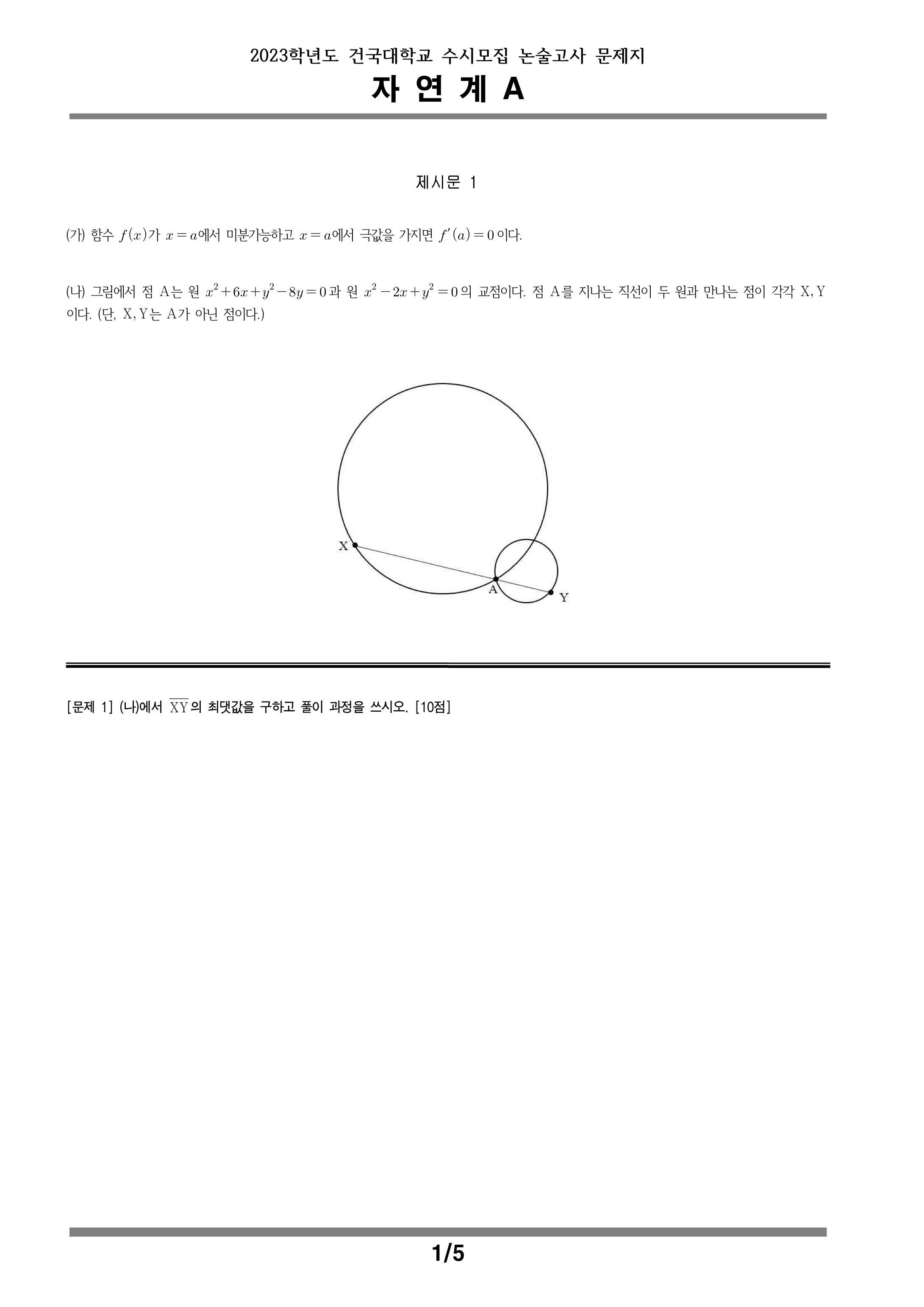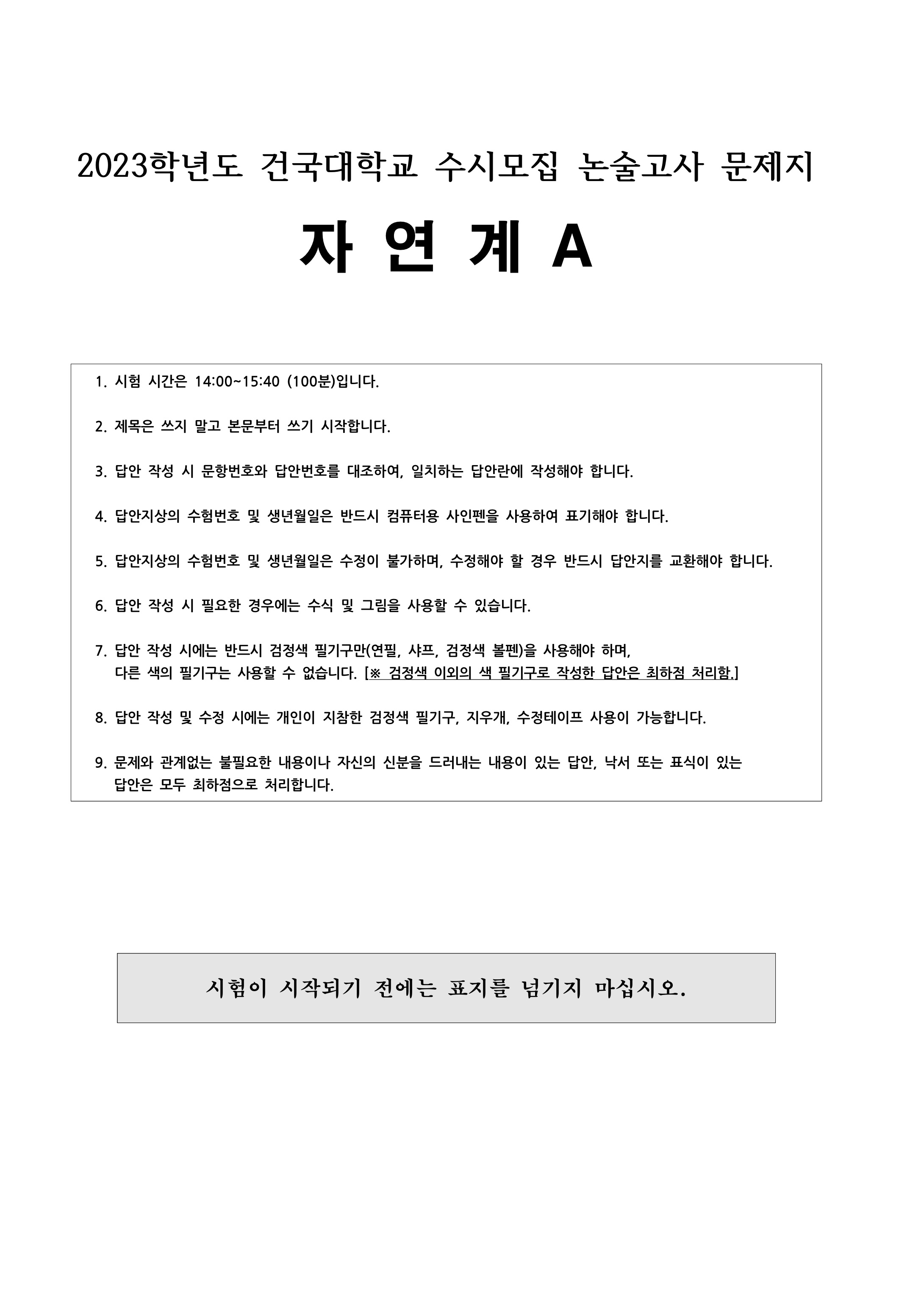 2023학년도 건국대학교 수시모집 논술고사 자연계A 문제지
