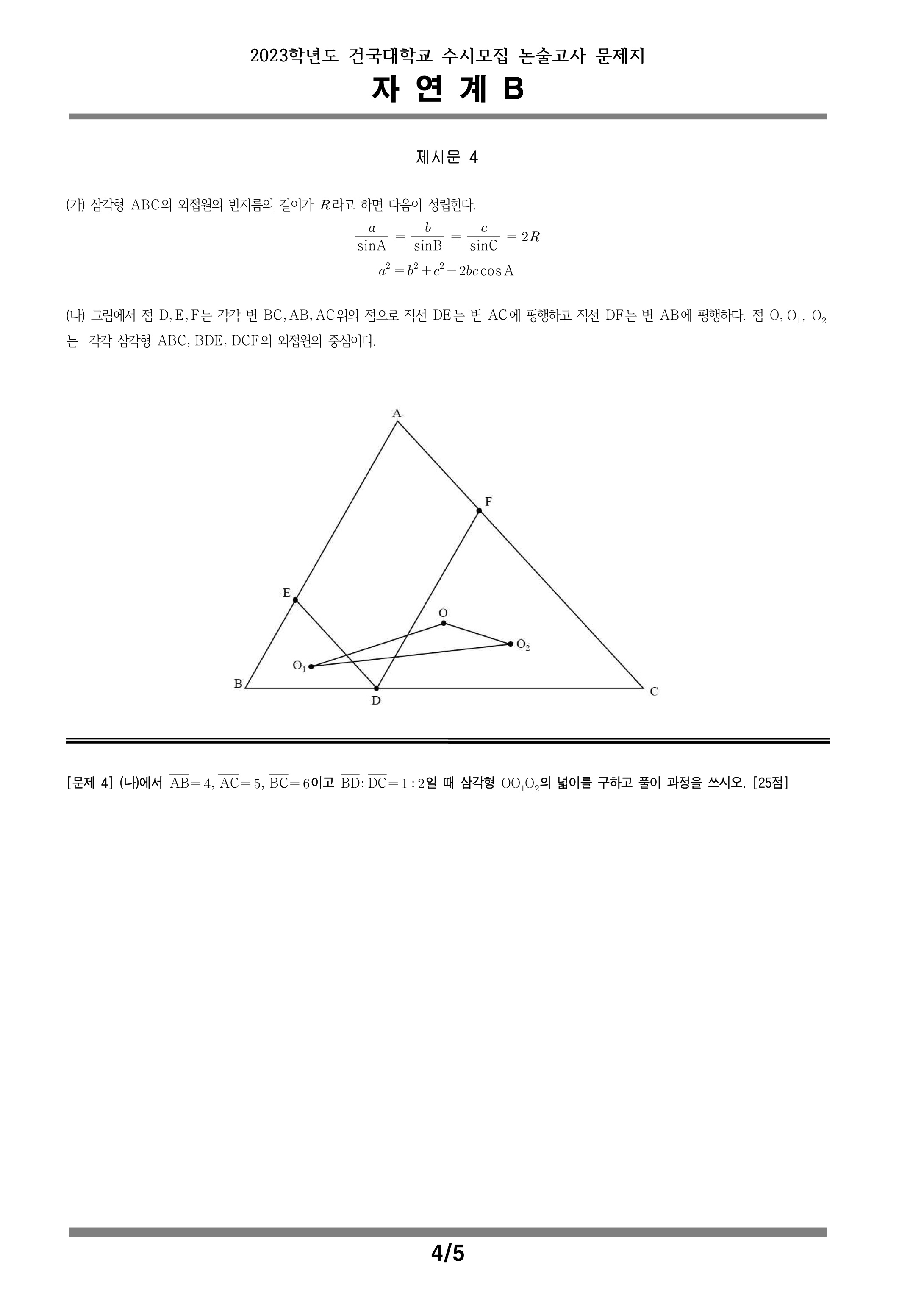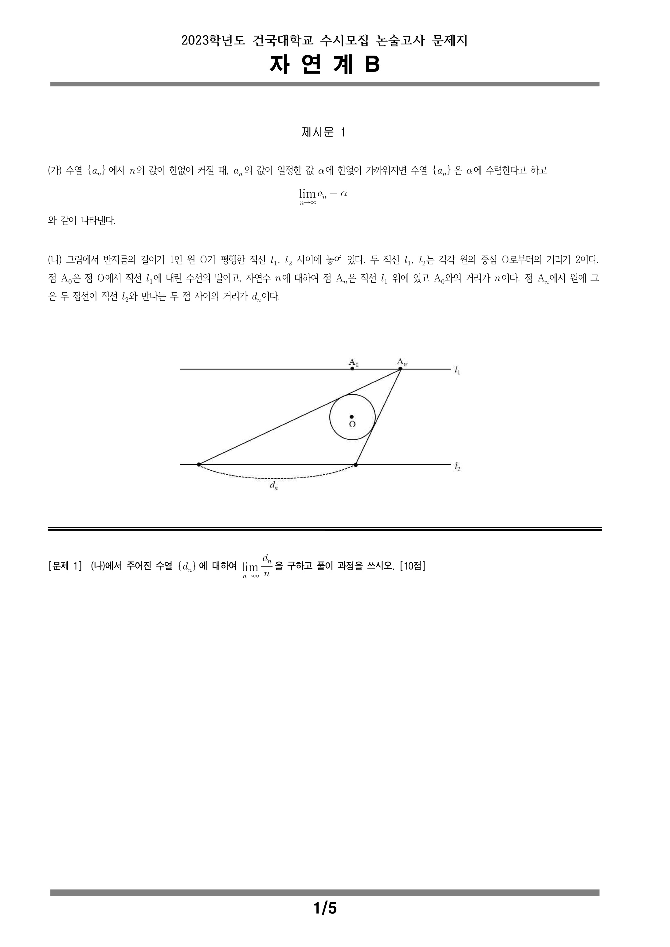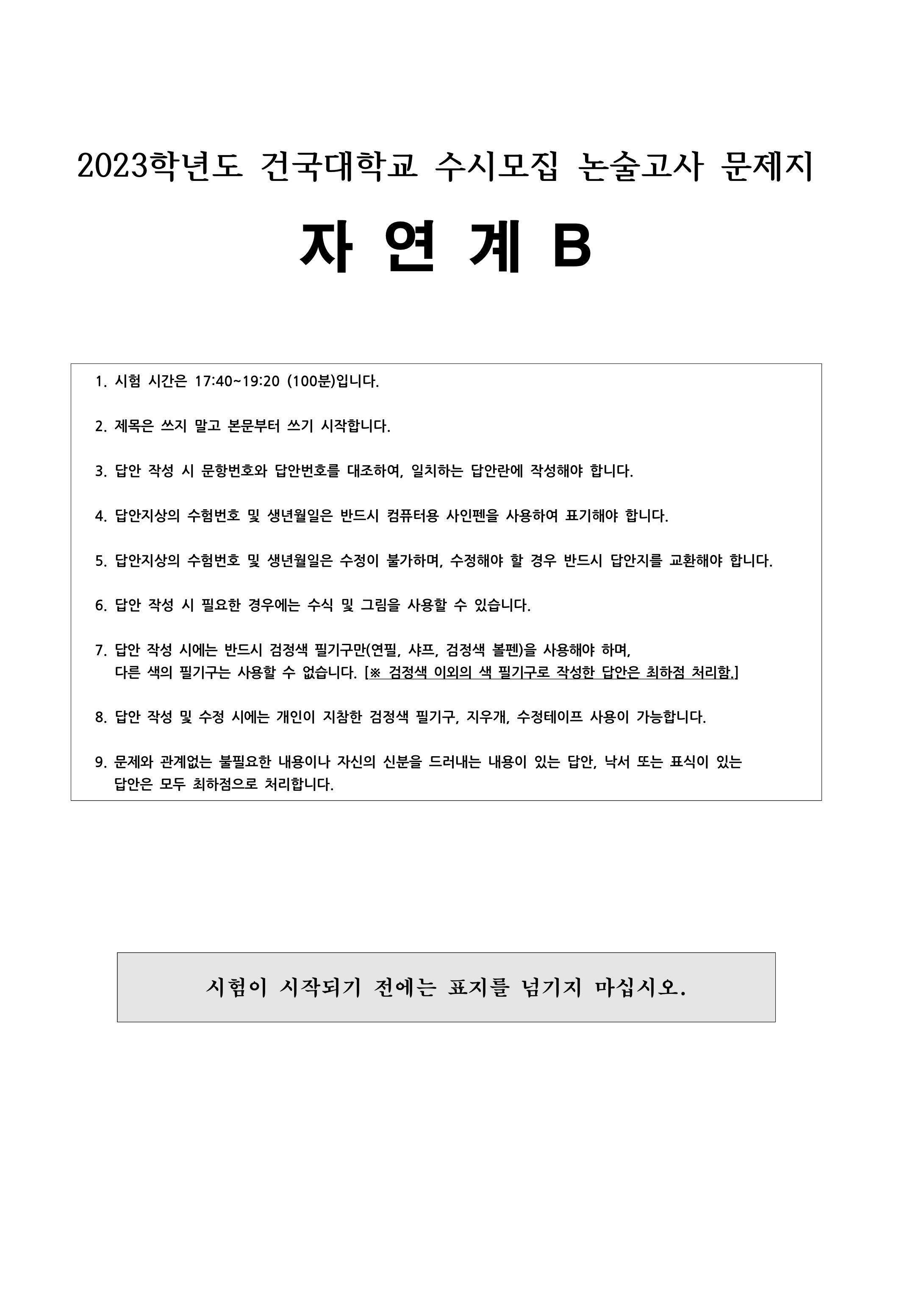 2023학년도 건국대학교 수시모집 논술고사 자연계B 문제지