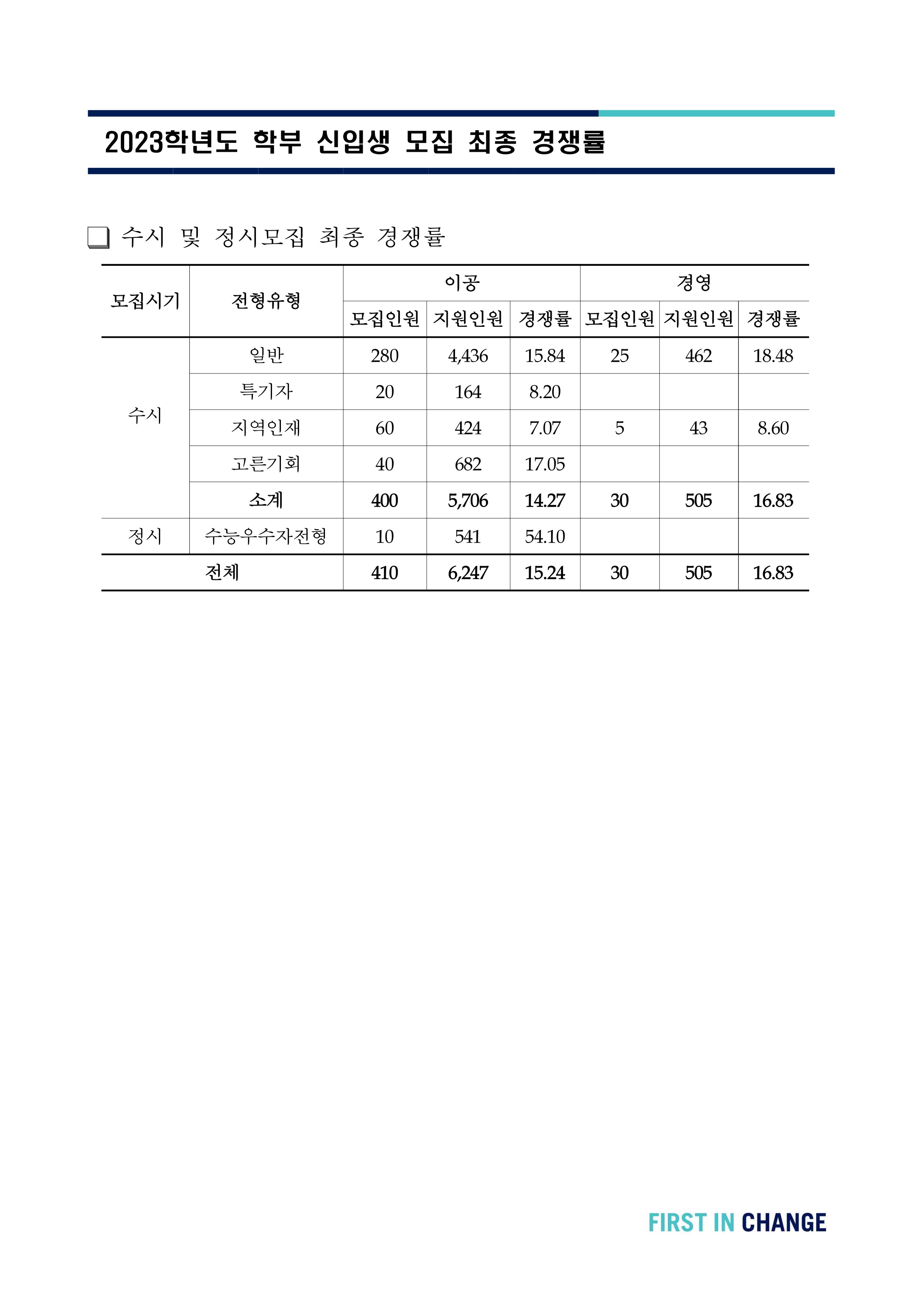 2023학년도 UNIST 학부 신입생 모집 최종 경쟁률 2023학년도 UNIST 학부 신입생 모집 결과