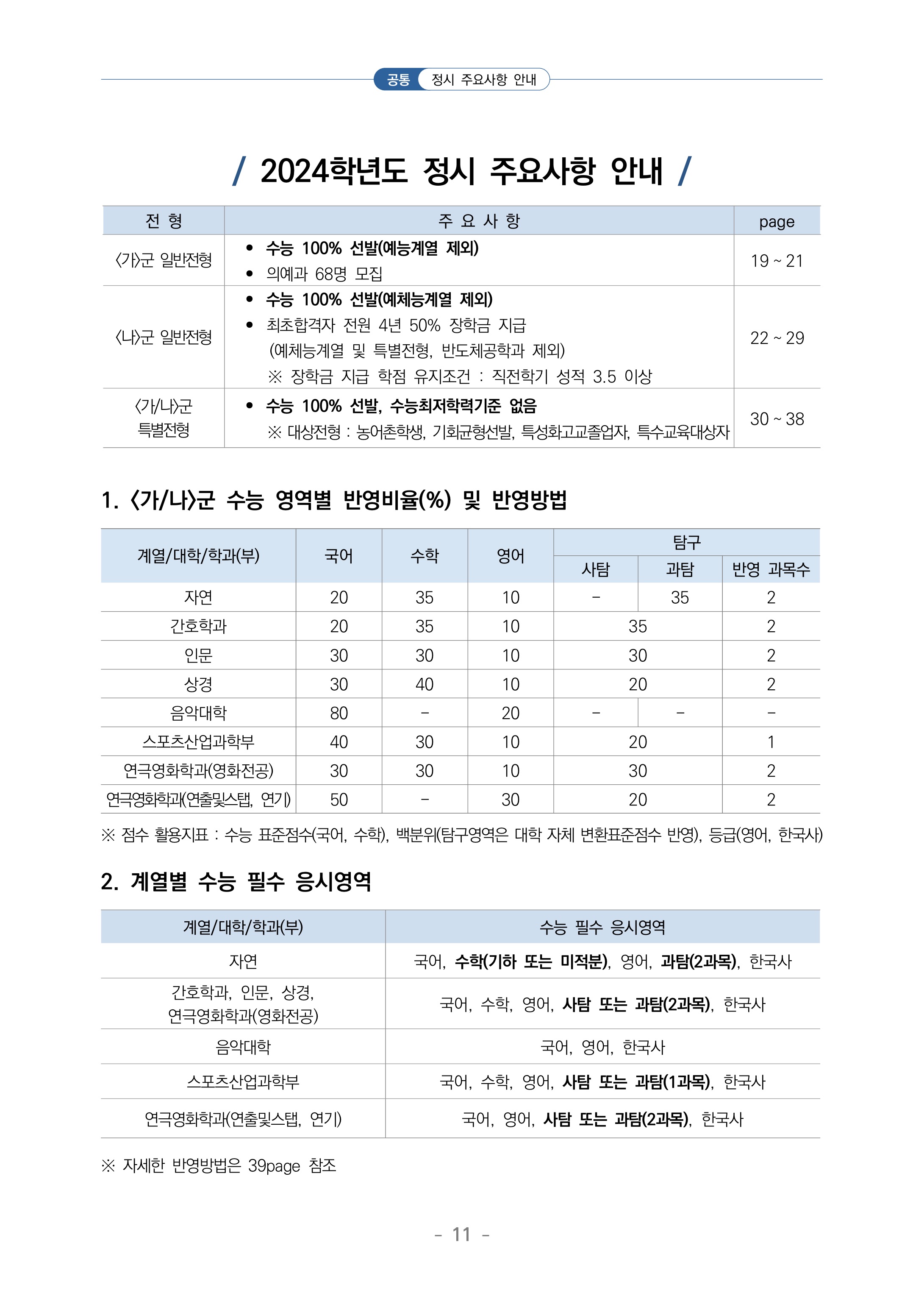 2024학년도 한양대학교 정시모집 요강.pdf1.15MB2024학년도 한양대학교 정시모집 전년 대비 변경사항