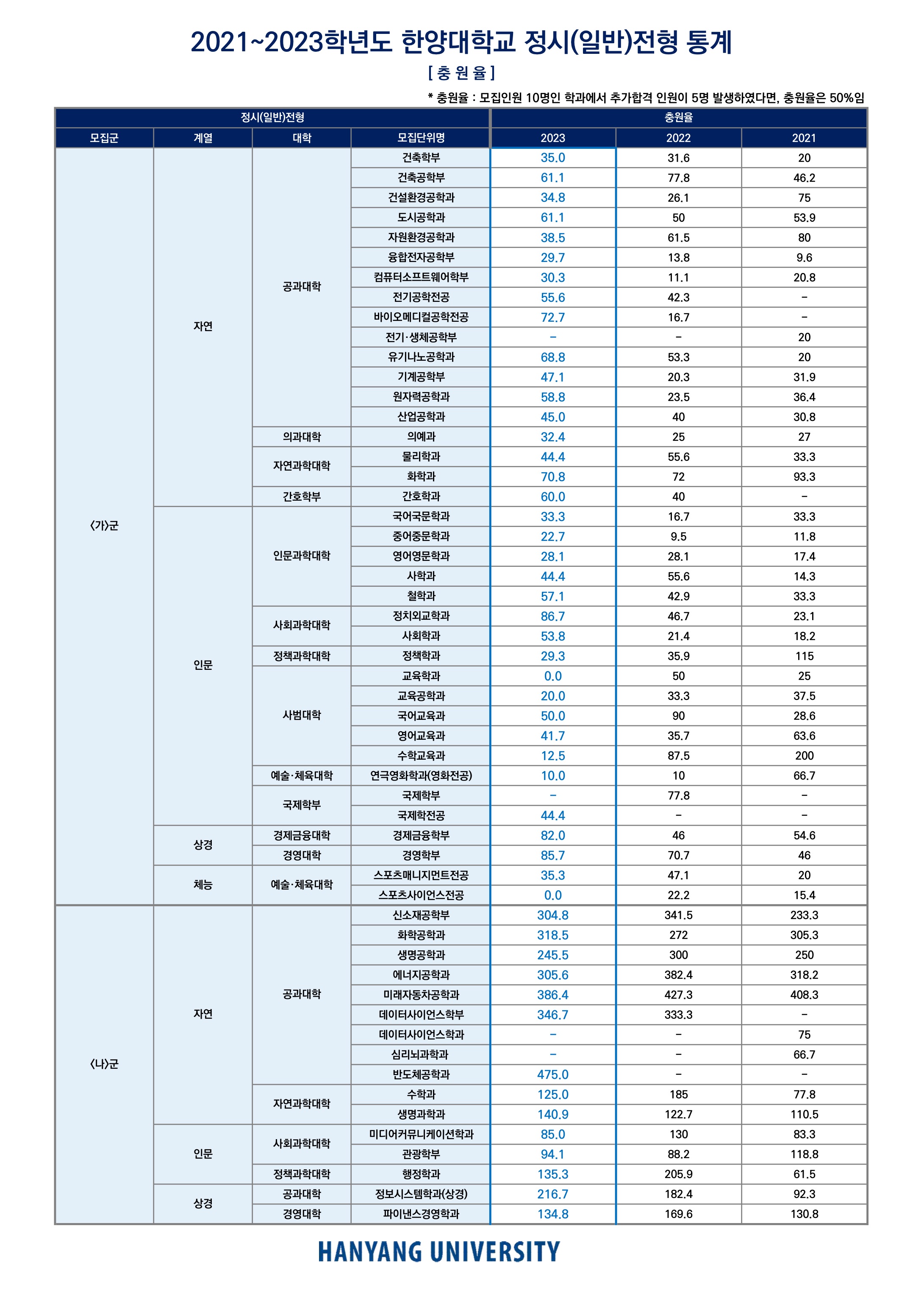 2023학년도 한양대학교 정시등급입시 정보/정시등급 입시 결과 2023. 5. 13. 16:26
