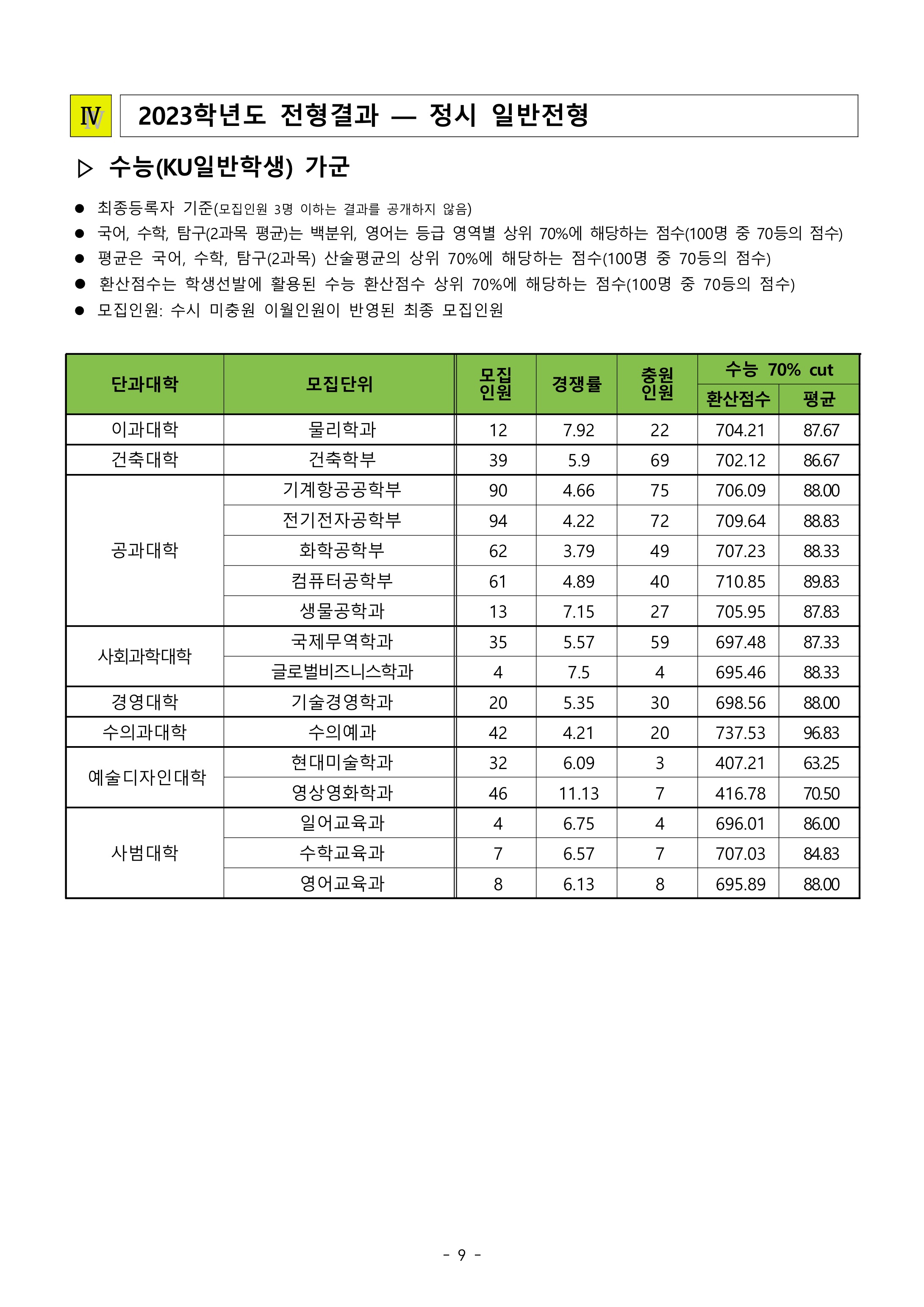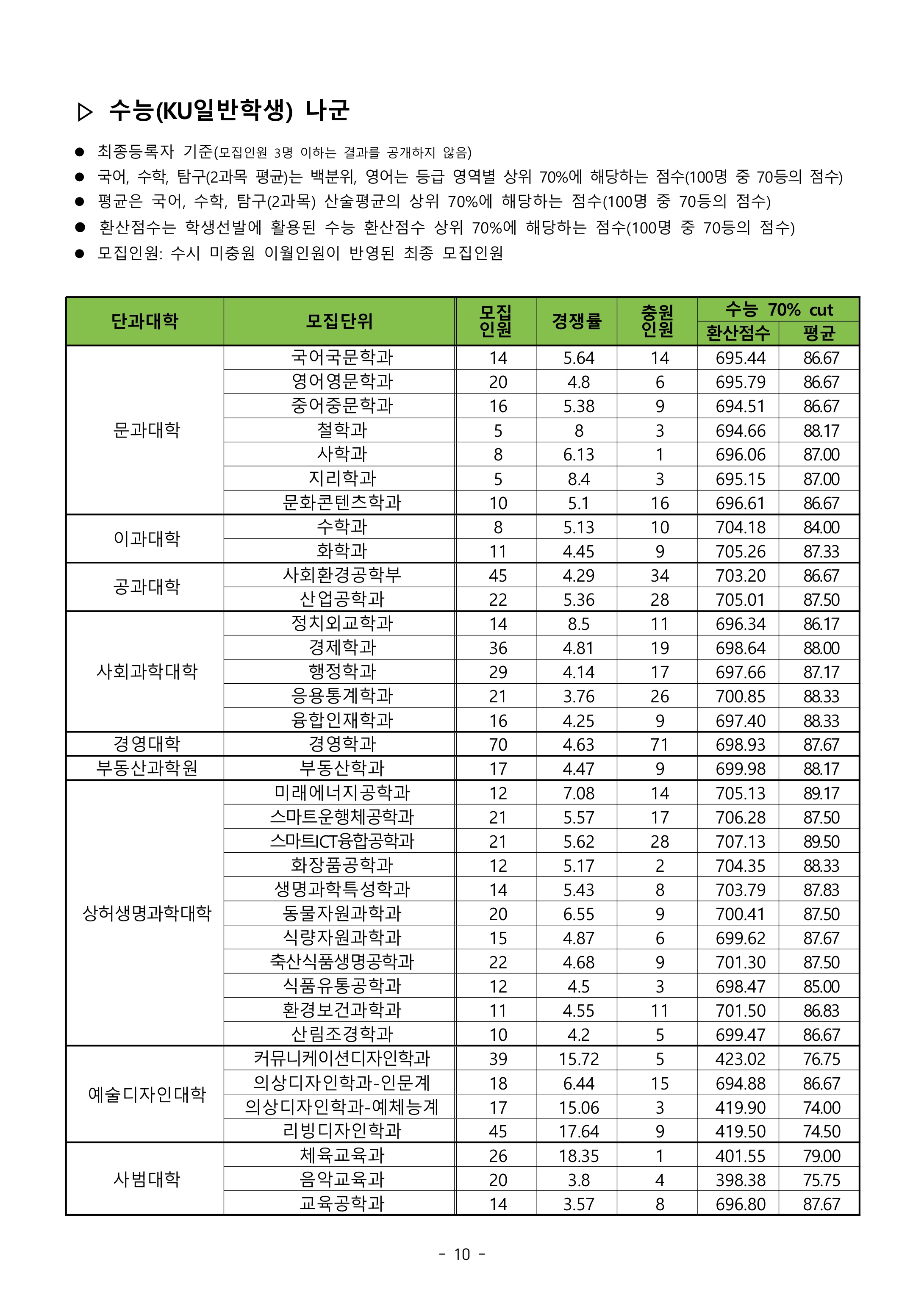 2023학년도 건국대학교 수능(KU일반학생) 나군 정시등급 2023학년도 건국대학교 수능(KU일반학생) 다군 정시등급