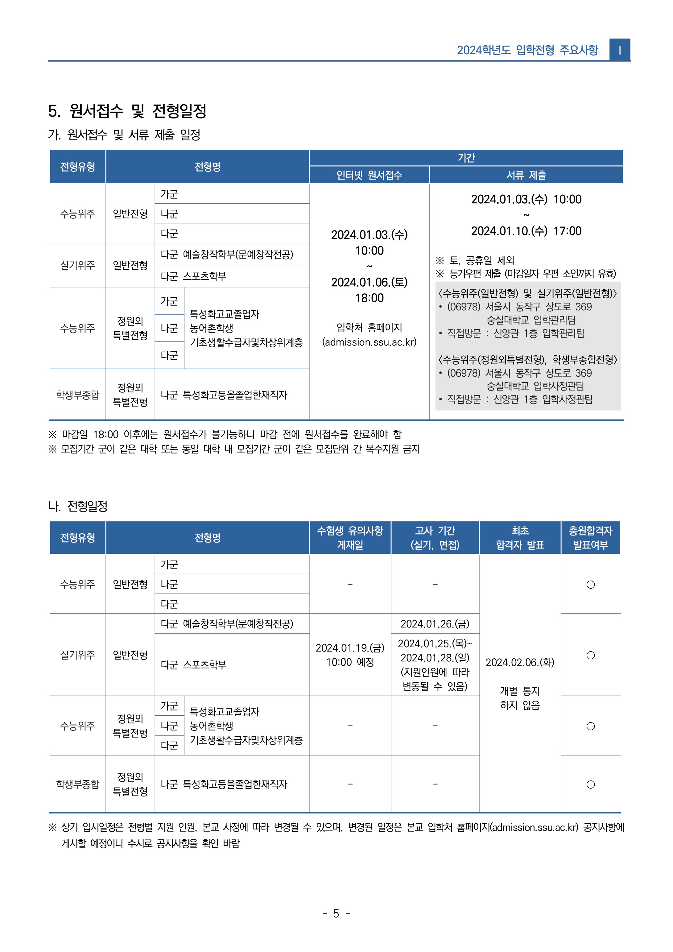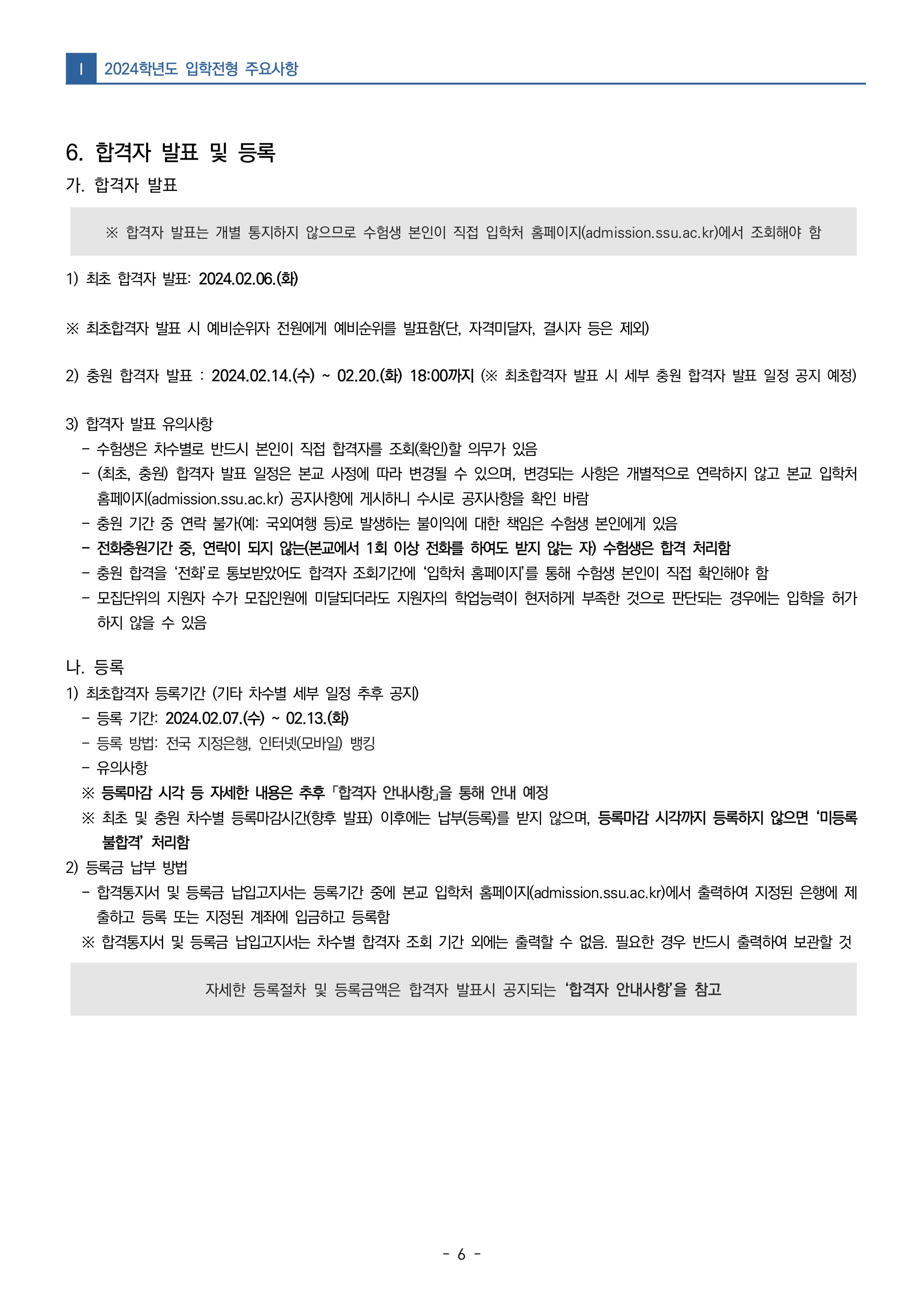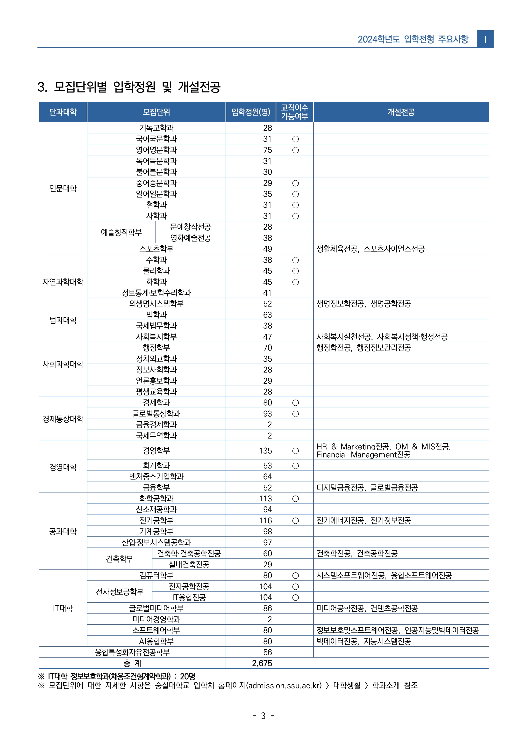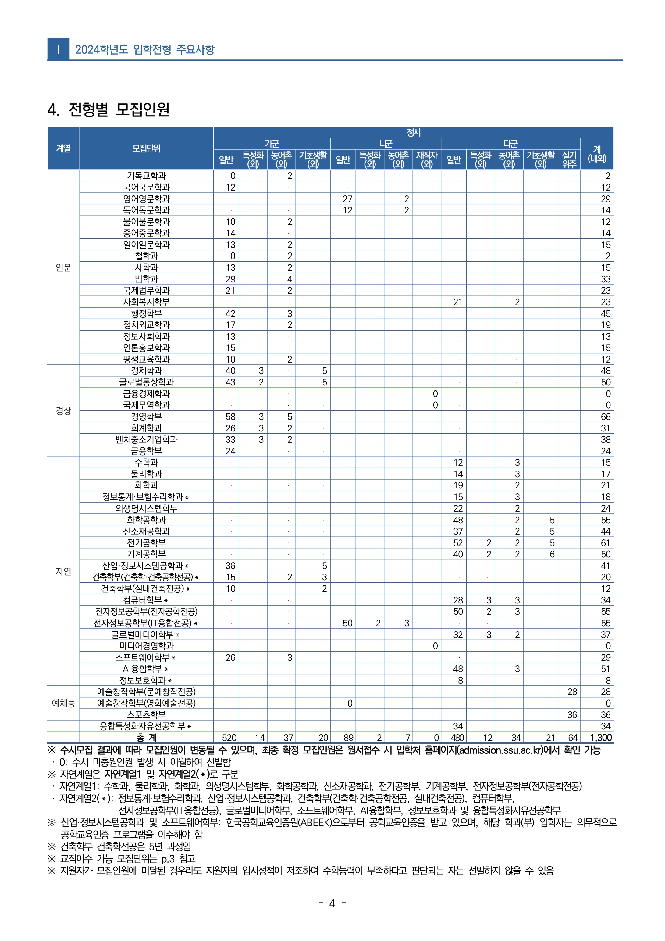 2024학년도 숭실대학교 정시모집 요강.pdf1.75MB2024학년도 숭실대학교 정시모집 모집인원 및 선발방법