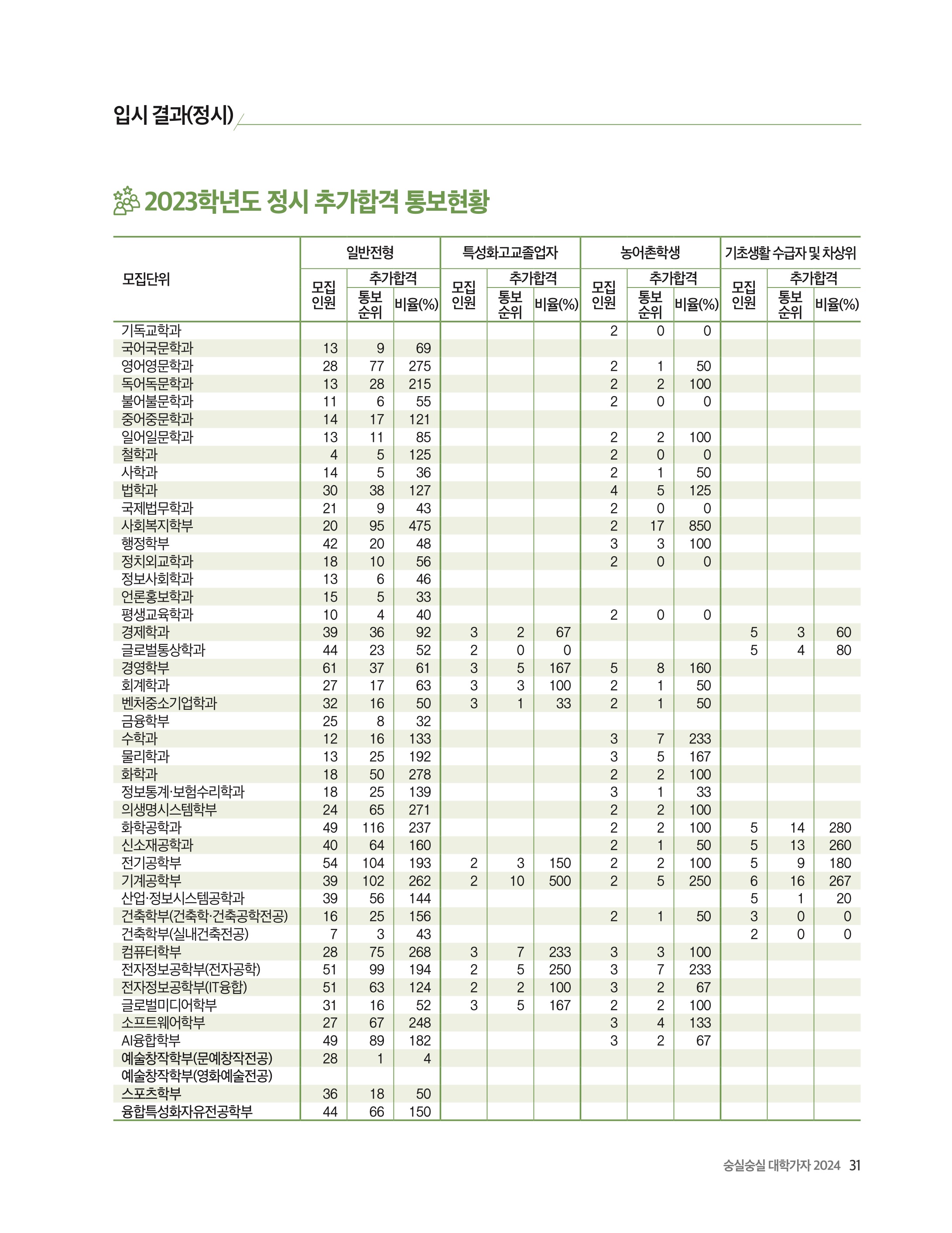 2023학년도 숭실대학교 정시등급 2023학년도 숭실대학교 정시 추가합격 통보현황