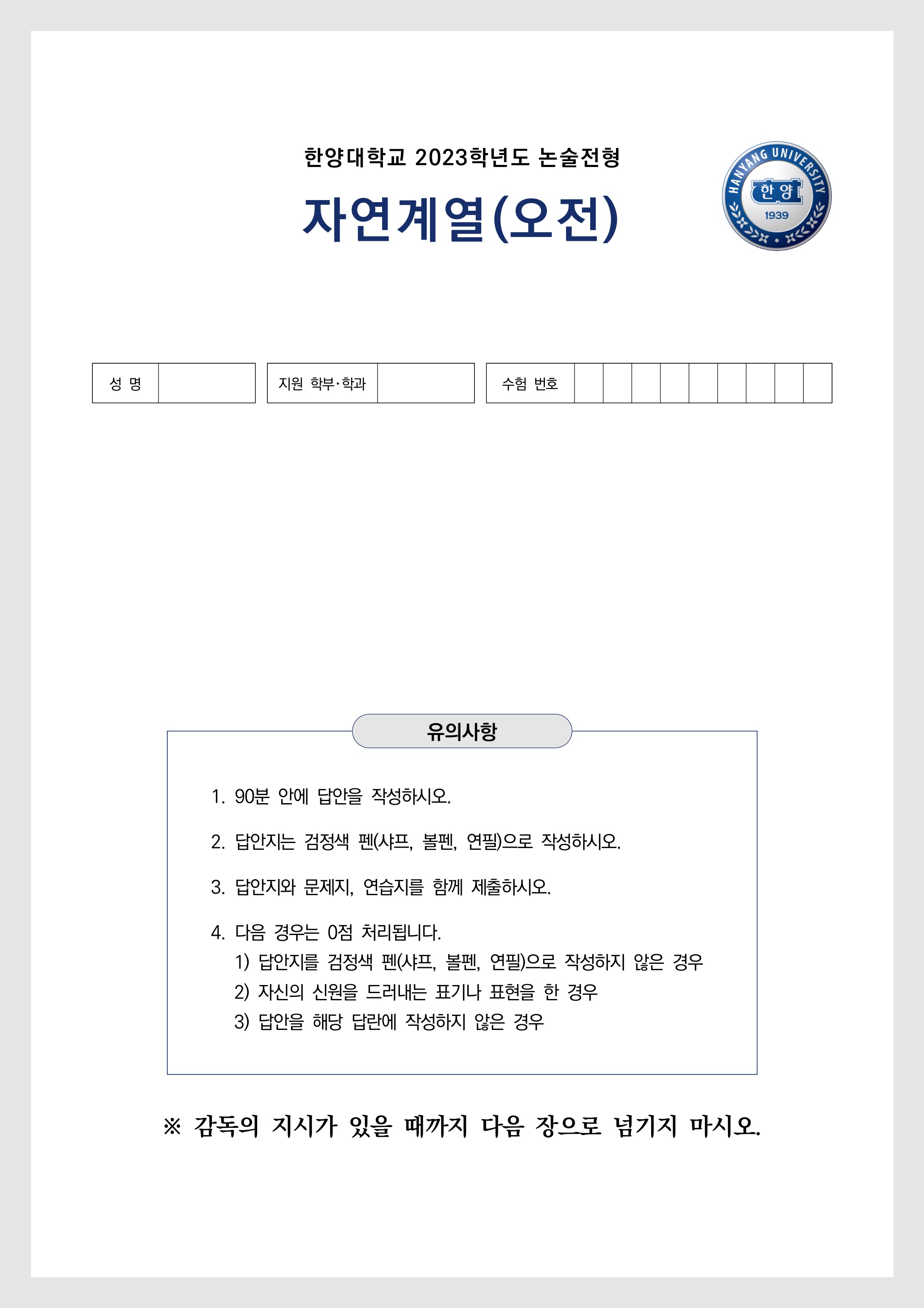 2023학년도 한양대학교 논술전형 자연계열(오후1) 문제