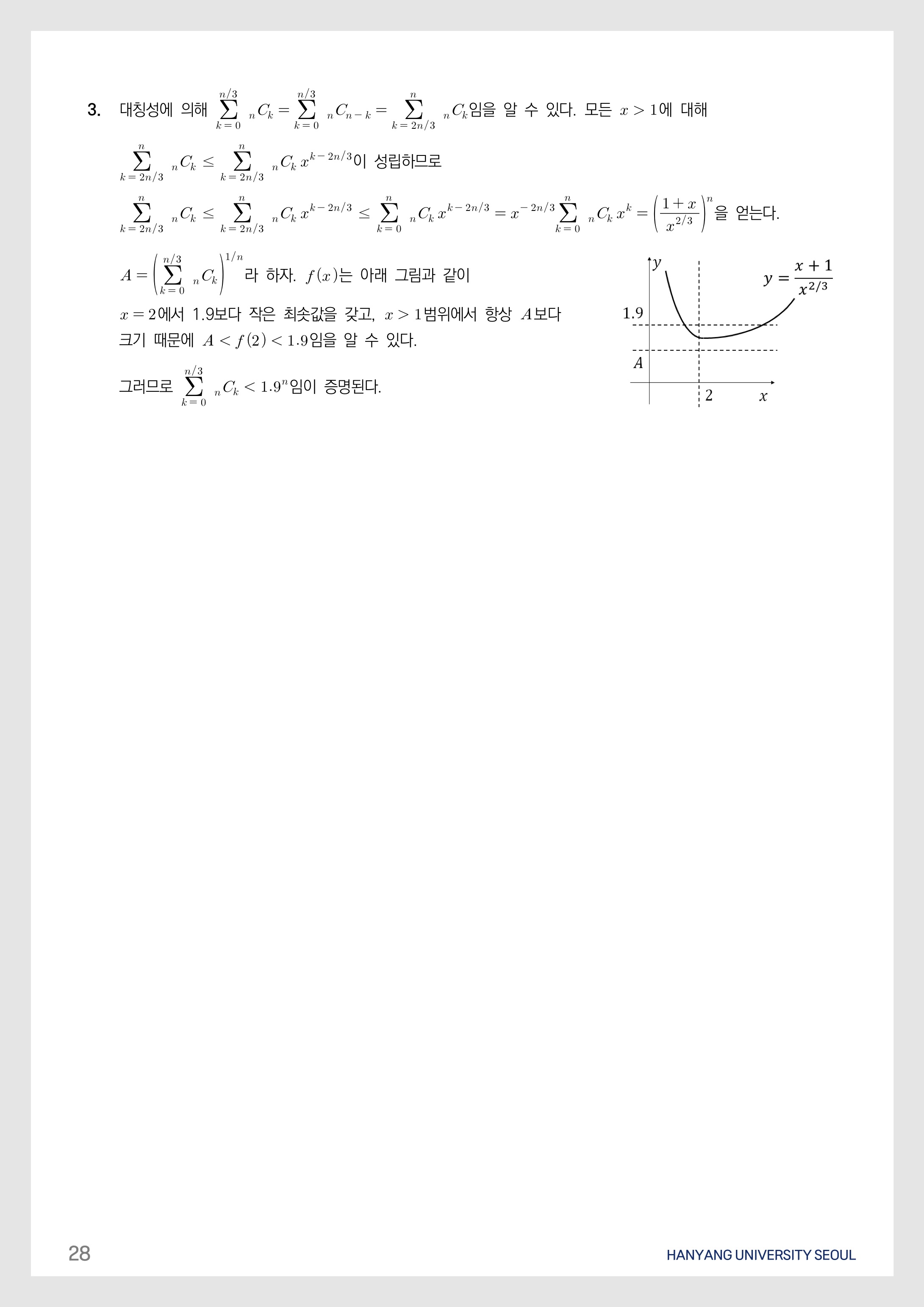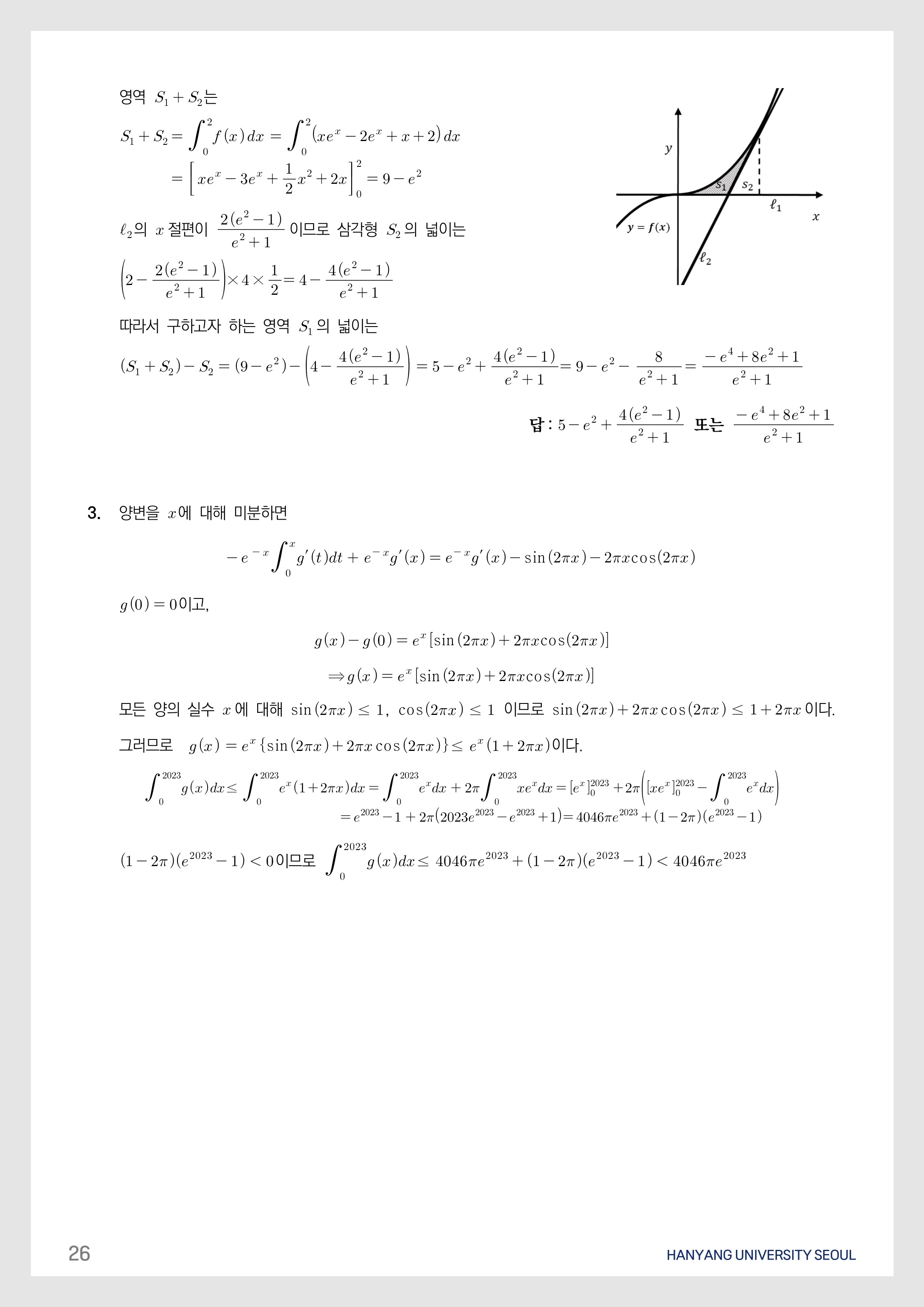 2023학년도 한양대학교 논술전형 자연계열(오후2) 예시답안