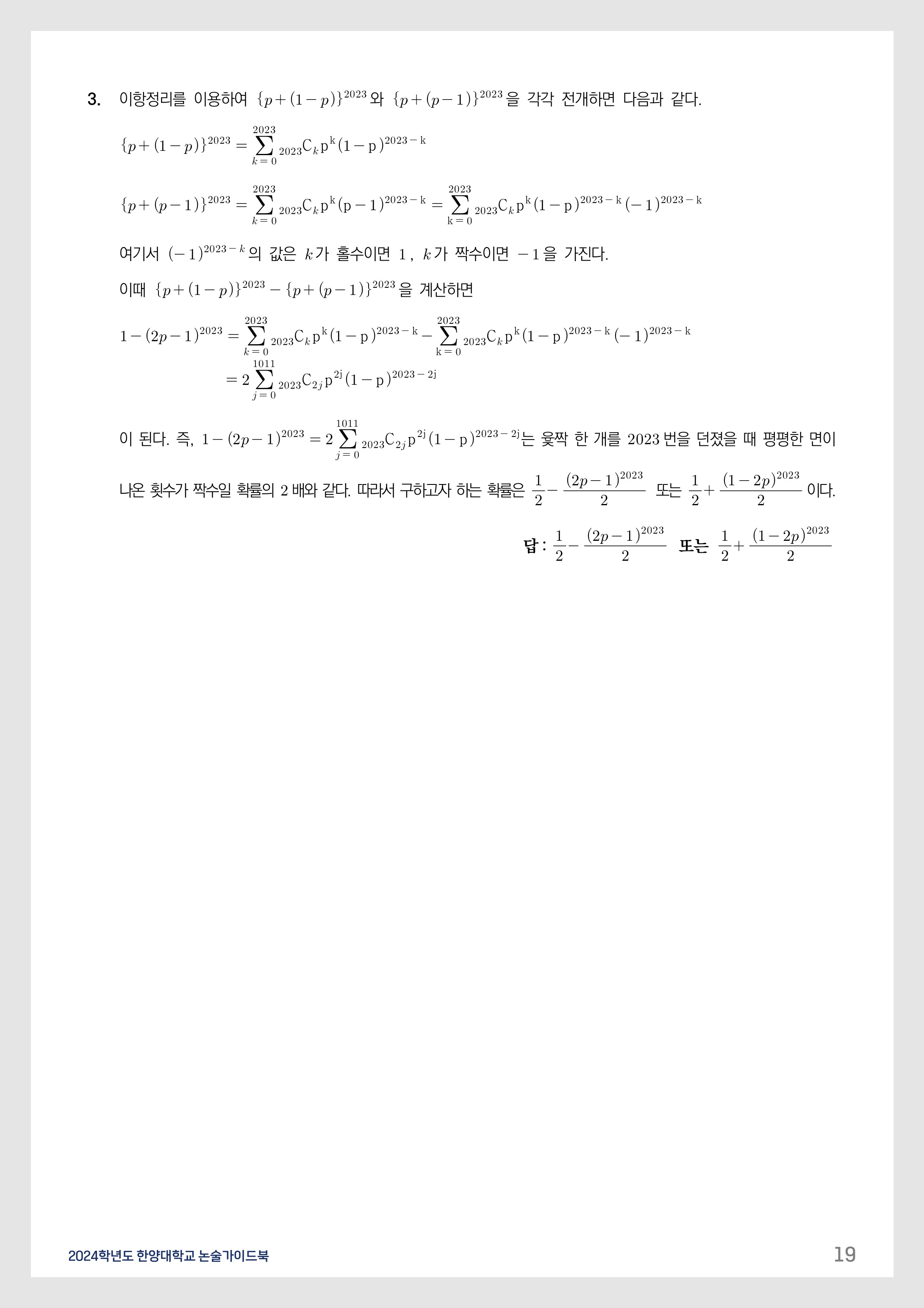 2023학년도 한양대학교 논술전형 자연계열(오전) 예시답안