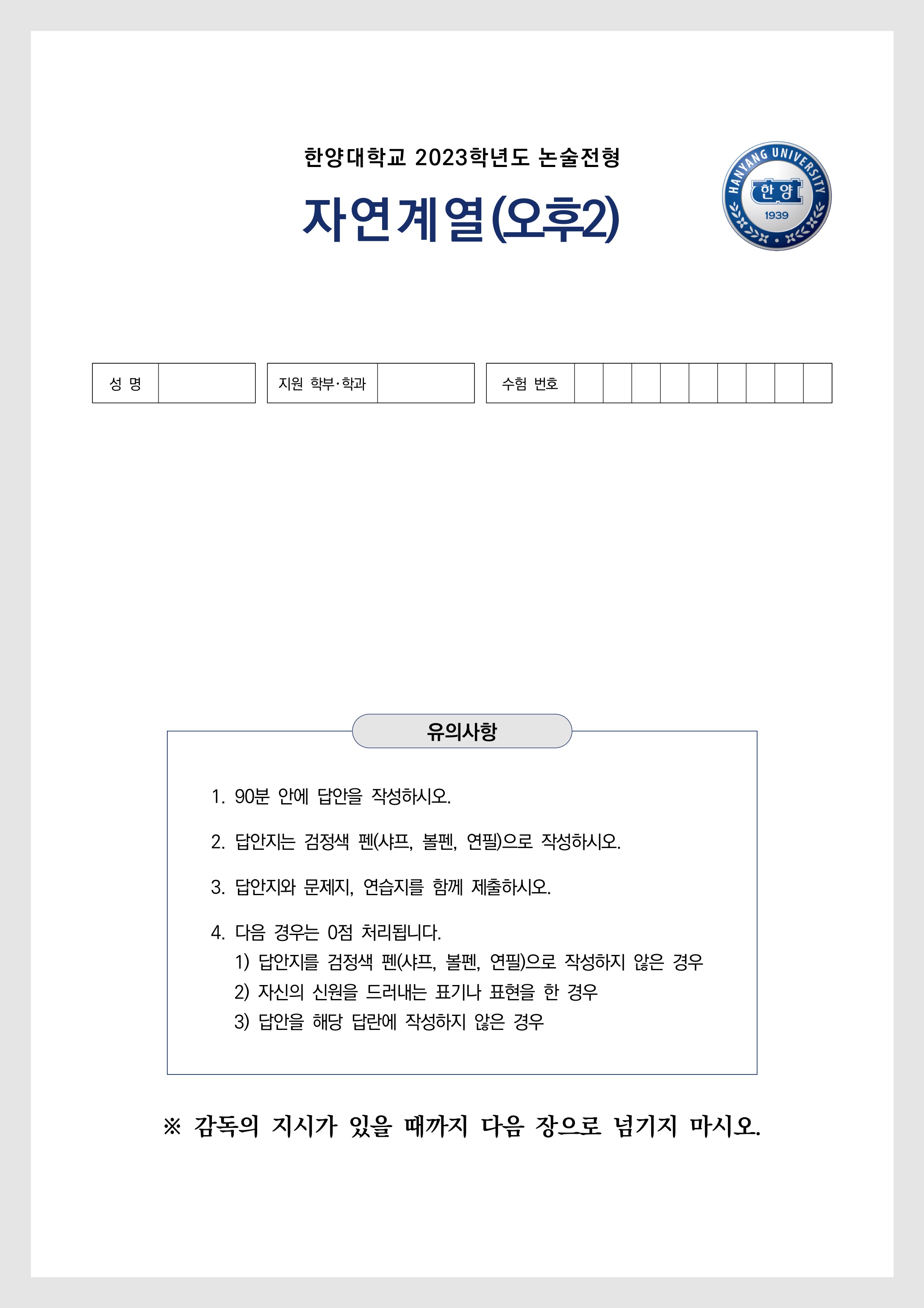 2023학년도 한양대학교 논술전형 자연계열(오후2) 문제