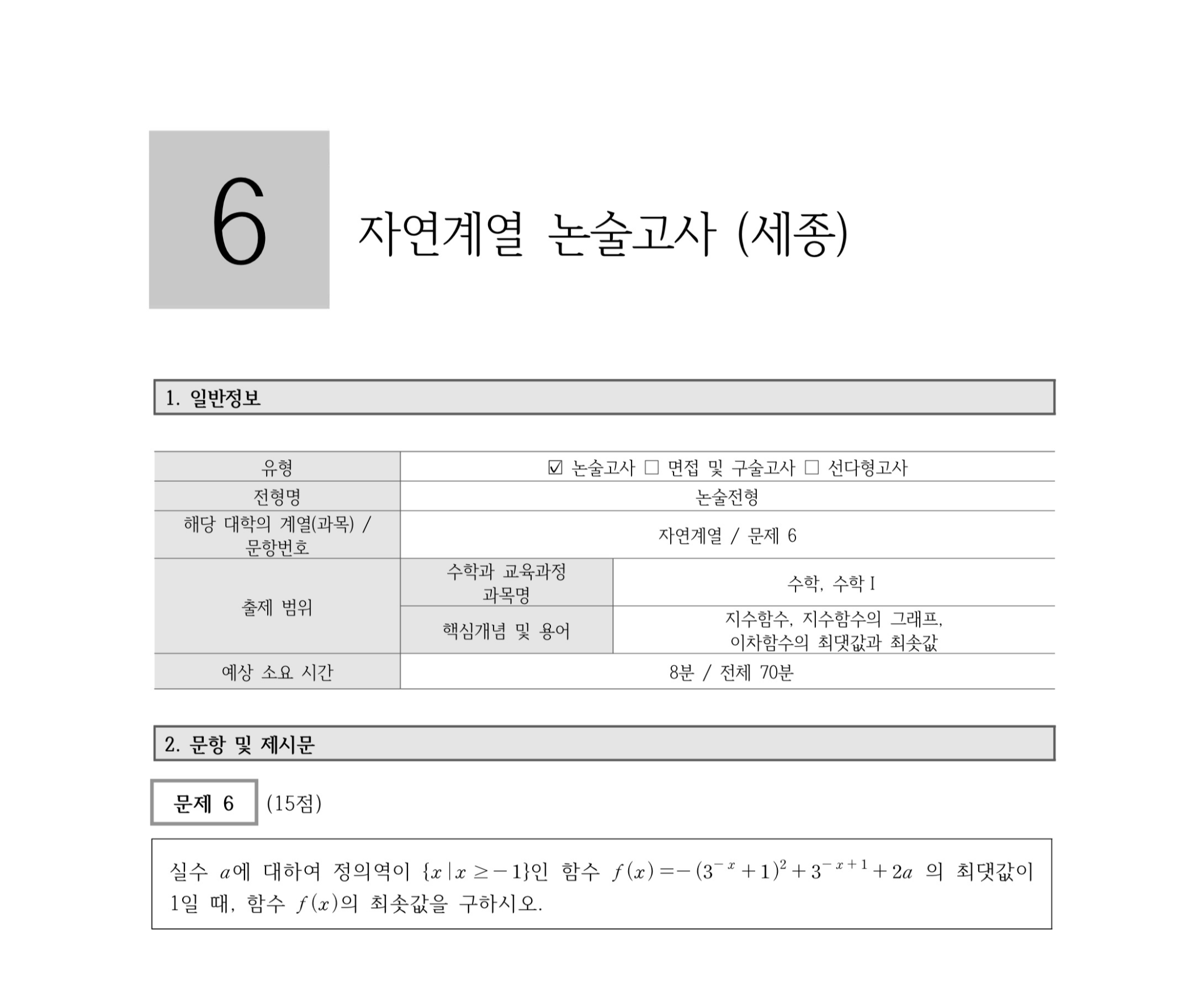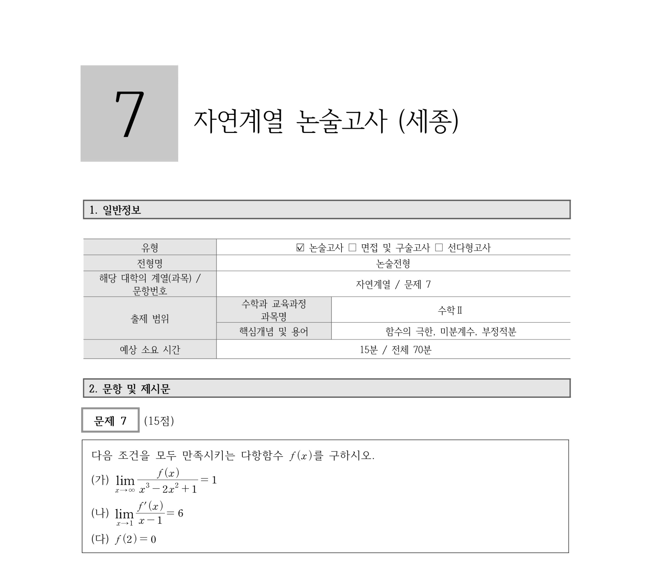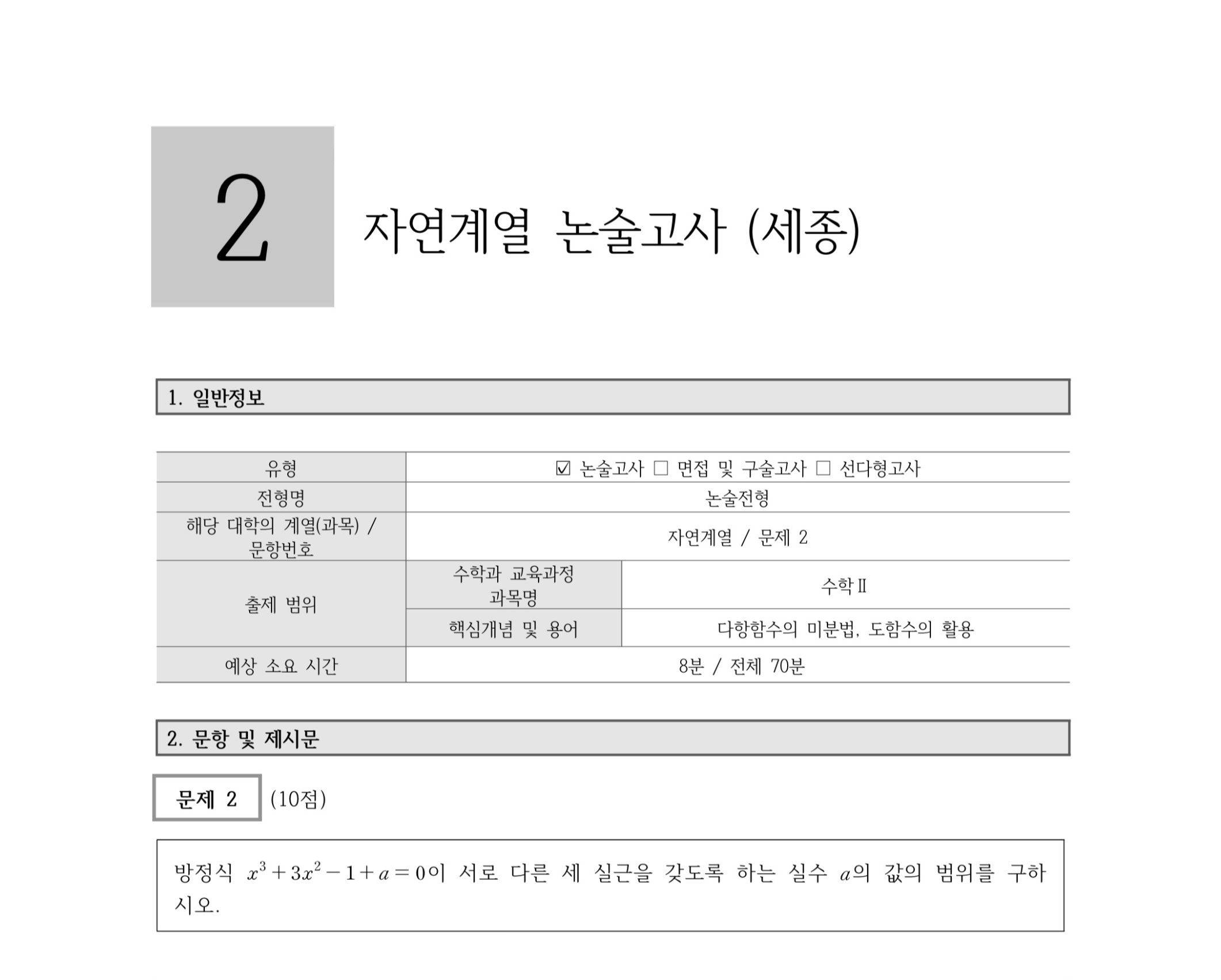2023학년도 홍익대학교 세종캠퍼스 논술 전형 기출문제 2023학년도 홍익대학교 세종캠퍼스 논술 전형 문제 및 해설