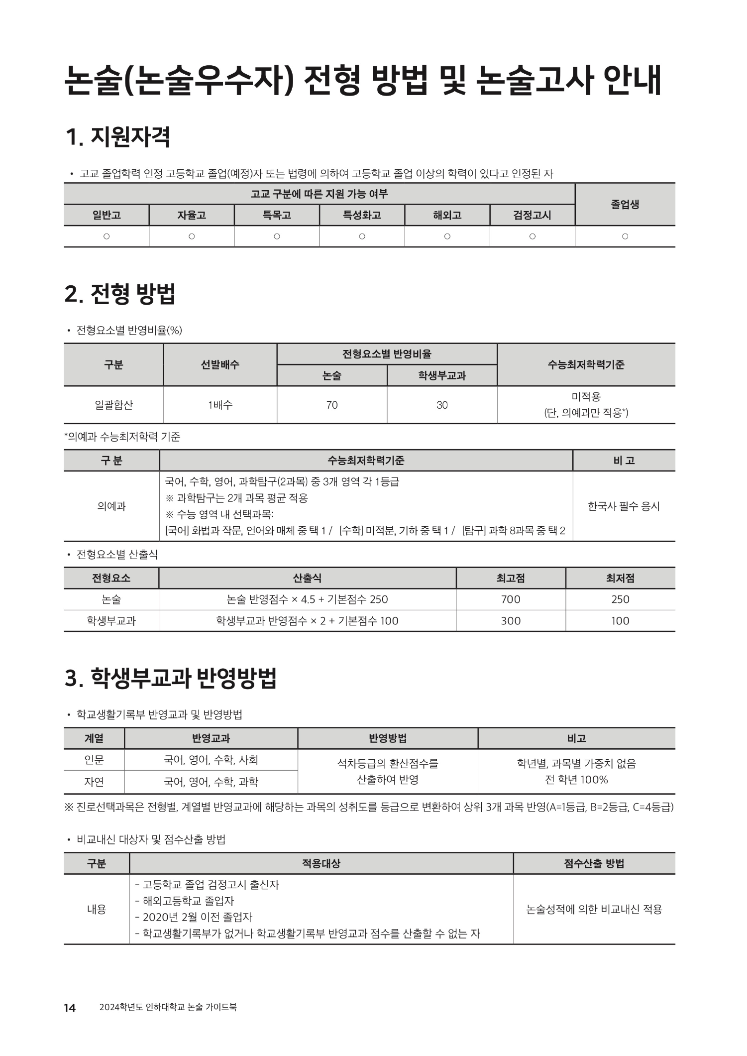 2024학년도 인하대학교 논술 전형입시 정보/논술 2023. 8. 14. 14:14