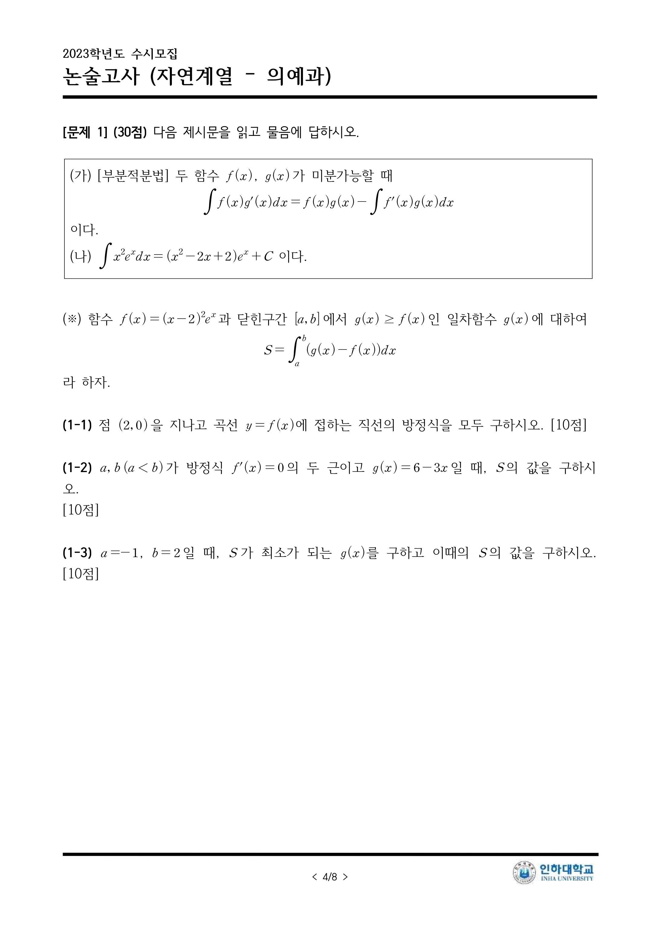2023학년도 인하대학교 논술고사 문제지 (자연계열 의예과) (자연-오전) 2023학년도 인하대학교 논술고사 문제지.pdf0.41MB2023학년도 인하대학교 논술고사 해설 (자연계열 - 오전)